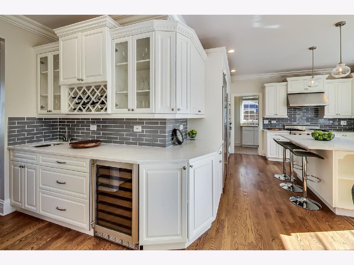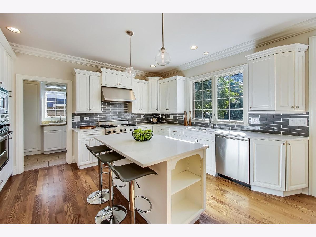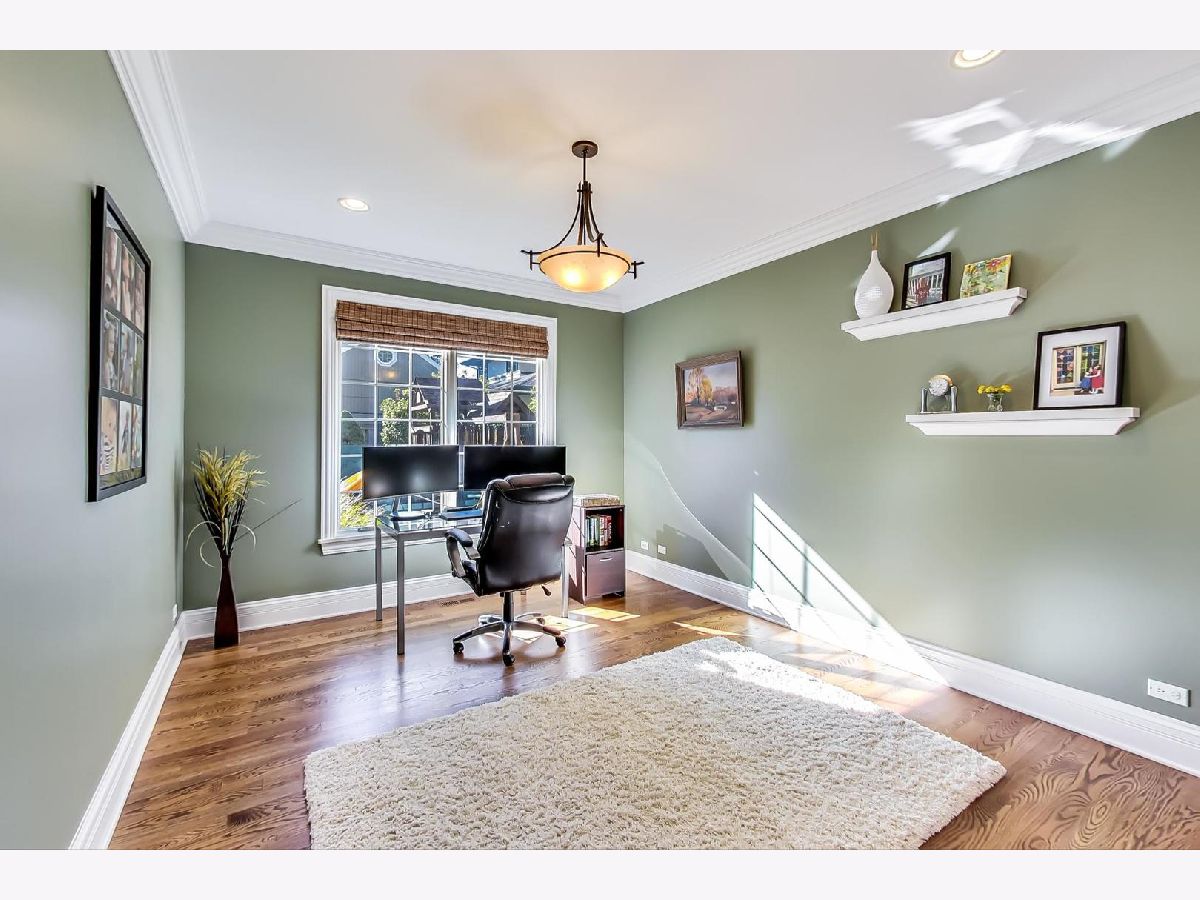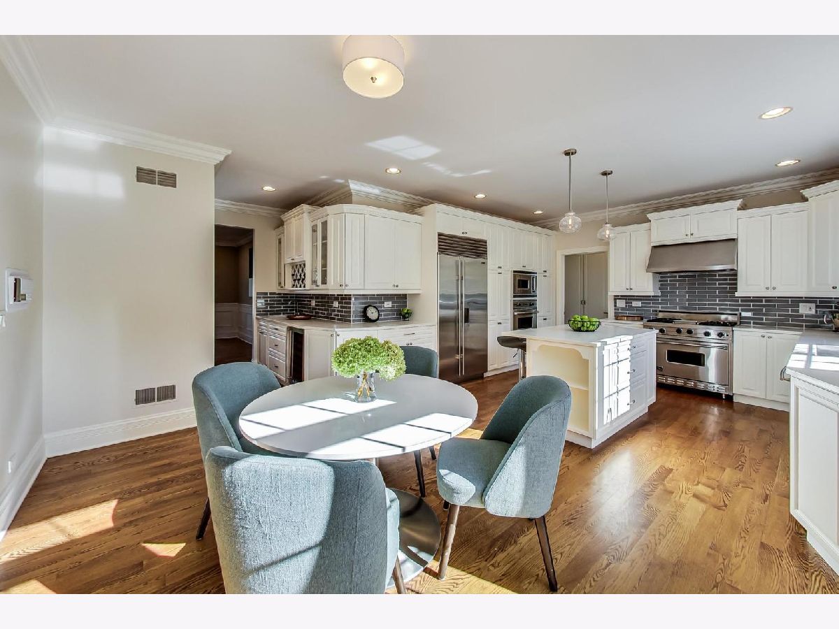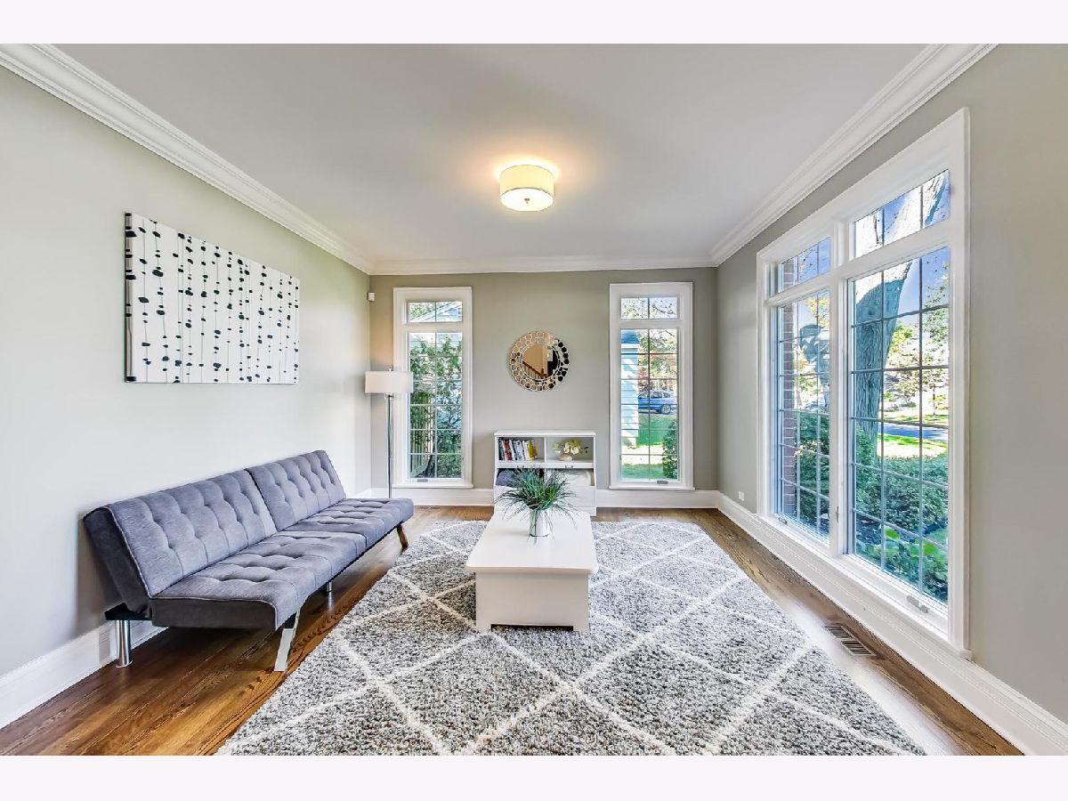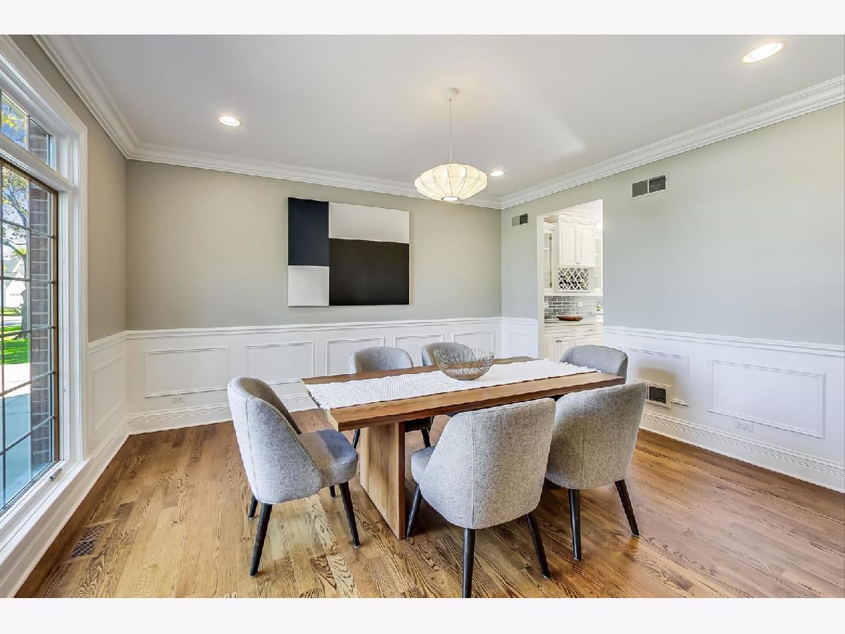 Gorgeous 5,800+ sq ft 6 bedroom, 5 bathroom Glenview residence! Can you say "perfect home for entertaining"!?!? Open floor plan with oversized rooms throughout and floor-to-ceiling windows on first floor make this bright and airy home absolutely stunning. Chef's kitchen includes while shaker custom cabinetry, quartz counters, oversized island with breakfast bar, high-end Subzero and Wolf stainless steel appliances, butlers pantry with wine storage and wine cooler. Grand foyer flows freely into formal living room, dining room or first floor family room. Elegant dining room with crown molding, large enough for 12 person table. First floor bedroom is currently being used as an office, but spacious for a guest suite. 2nd floor boasts spacious primary suite, three additional bedrooms and a bonus "great room" space for theater room/office/laundry room/etc. Primary suite entices with french doors, cathedral ceilings, professionally organized walk-in closet, spa-like bathroom with dual vanity, jet tub and frameless glass shower. Hardwood floors throughout 1st and 2nd floors. Renovated (2020) lower level boasts wood burning fireplace in rec room, large play room with great storage, huge storage/utility/HVAC room, 6th bedroom & full bathroom w/steam shower. Other fantastic features include:skylights, mudroom off the garage with built-in cubbies, spacious 2 car garage with car pad for 3rd car, fenced yard, massive brick patio w/outdoor fireplace, professional landscaped garden & more! 1 block to park, 2 blocks to Johns Park, 5 blocks to downtown Glenview, library and restaurants, 12 min walk to GV or Golf Metra stop, and more.