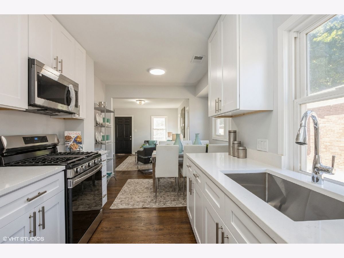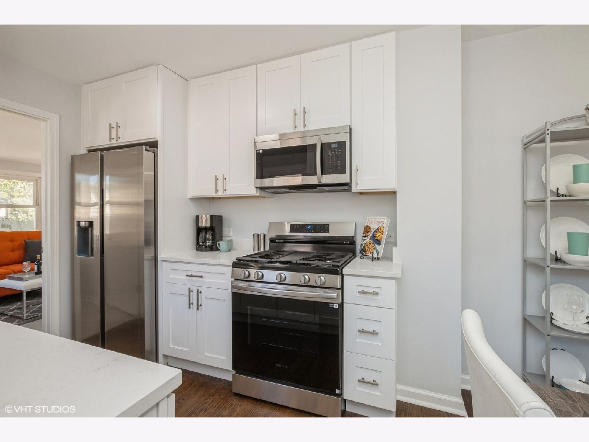 Welcome to this beautifully updated 3 bed/2 bath home in Evanston! This charming residence offers modern upgrades and stylish finishes throughout, making it the perfect blend of comfort and sophistication. The remodeled kitchen is a standout feature, showcasing stunning quartz countertops, white shaker style cabinets, sleek stainless-steel appliances, and plenty of cabinet space. Refinished hardwood floors run throughout the first floor, adding warmth and elegance to the living spaces. The remodeled bathroom on the main level is designed with classic subway tiles and luxurious Carrera tile finishes. The entire second floor is dedicated to the primary bedroom, offering privacy and comfort with a spacious en-suite bathroom that is elegantly updated. The finished basement is equipped with new carpet and offers a generous amount of space, perfect for a family room, home office, or recreational area. The new washer and dryer are conveniently located in the basement. Additional upgrades include a new HVAC system & new water heater, ensuring energy efficiency and peace of mind for years to come. Situated in a prime Evanston location, this home is close to local parks, shopping, dining, and excellent schools.