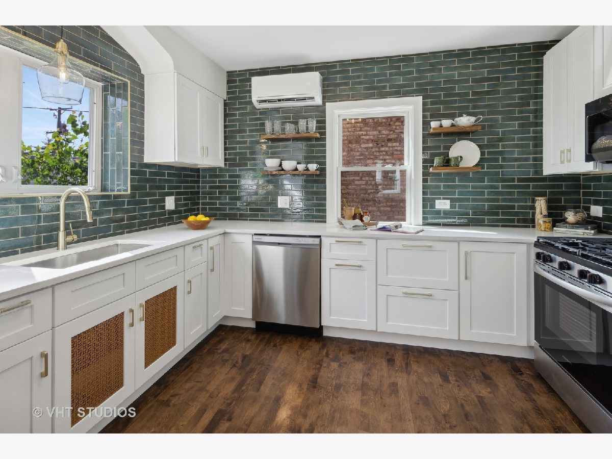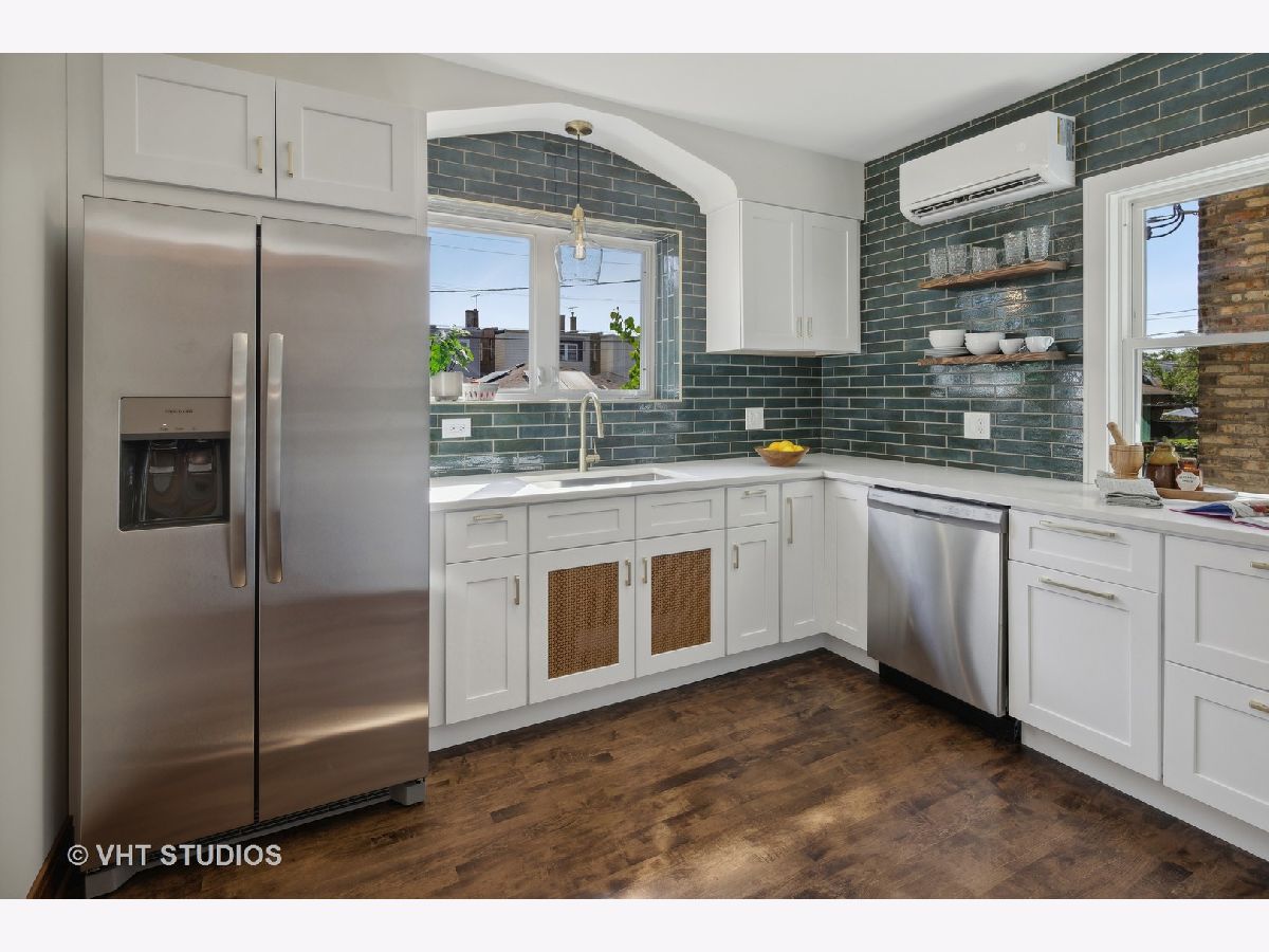 This absolutely stunning Tudor rehab is full of gorgeous vintage details including arched doorways, hardwood floors in every room, a beautiful original wood burning fireplace, tall ceilings and a stunning staircase with beautiful woodwork. What's best, the 2024 rehab makes this exquisite move-in-ready home complete with three levels of living space including a finished basement. The brand new kitchen with shaker cabinets, custom backsplash, Quartz counters, and gorgeous brushed gold accents includes a brand new Frigidaire stainless appliance suite. Rehabbed bathrooms with gorgeous vanities, tile and finishes along with refinished hardwood floors to dazzle. A new top-of-the-line mini split zoned AC system provides zoned cooling through the summer and radiant heaters and a newly serviced boiler give you that cozy radiant heat in the winter. Many new windows throughout the home. Roof replaced in 2017. Hot water tank 2018. Brand new electrical panel, outlets, switches and light fixtures throughout. The basement features a large and super bright living area with wet bar and full bath. The space could also easily be divided to include a 4th bedroom as there is an egress window and a closet already in the appropriate location in that space. Light floods into this lower level with large egress windows and new bright wood laminate floors. There is an additional supersized laundry and utility room with brand new washer and dryer and sink and an additional cold cellar storage area. The exterior is equally as dazzling with a huge professionally landscaped yard with a full in-ground programmable irrigation system, a brick paver walkway and rear patio and an beautiful pergola that leads to the brick 2 car garage. This home is in desirable North Berwyn and on the same block as a park, near schools, transportation, Cermak Plaza, Costco and I-290.