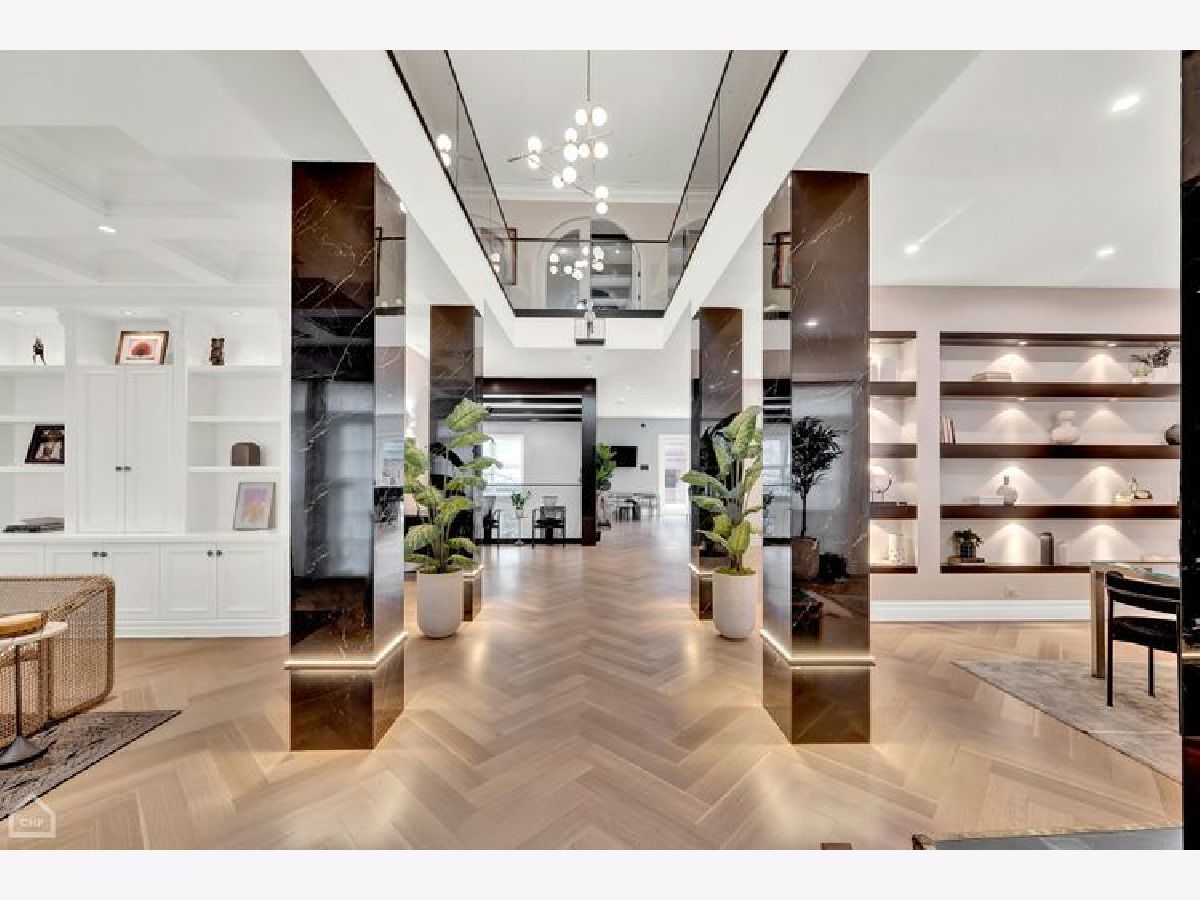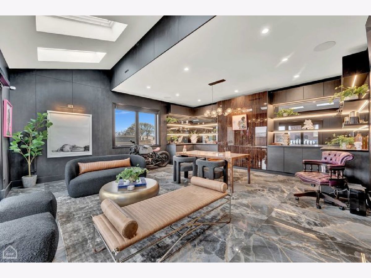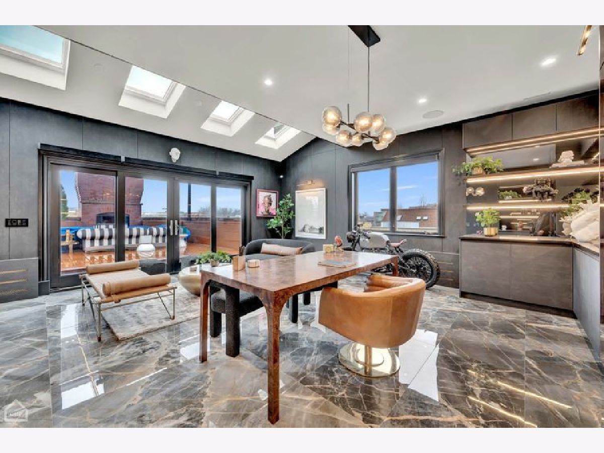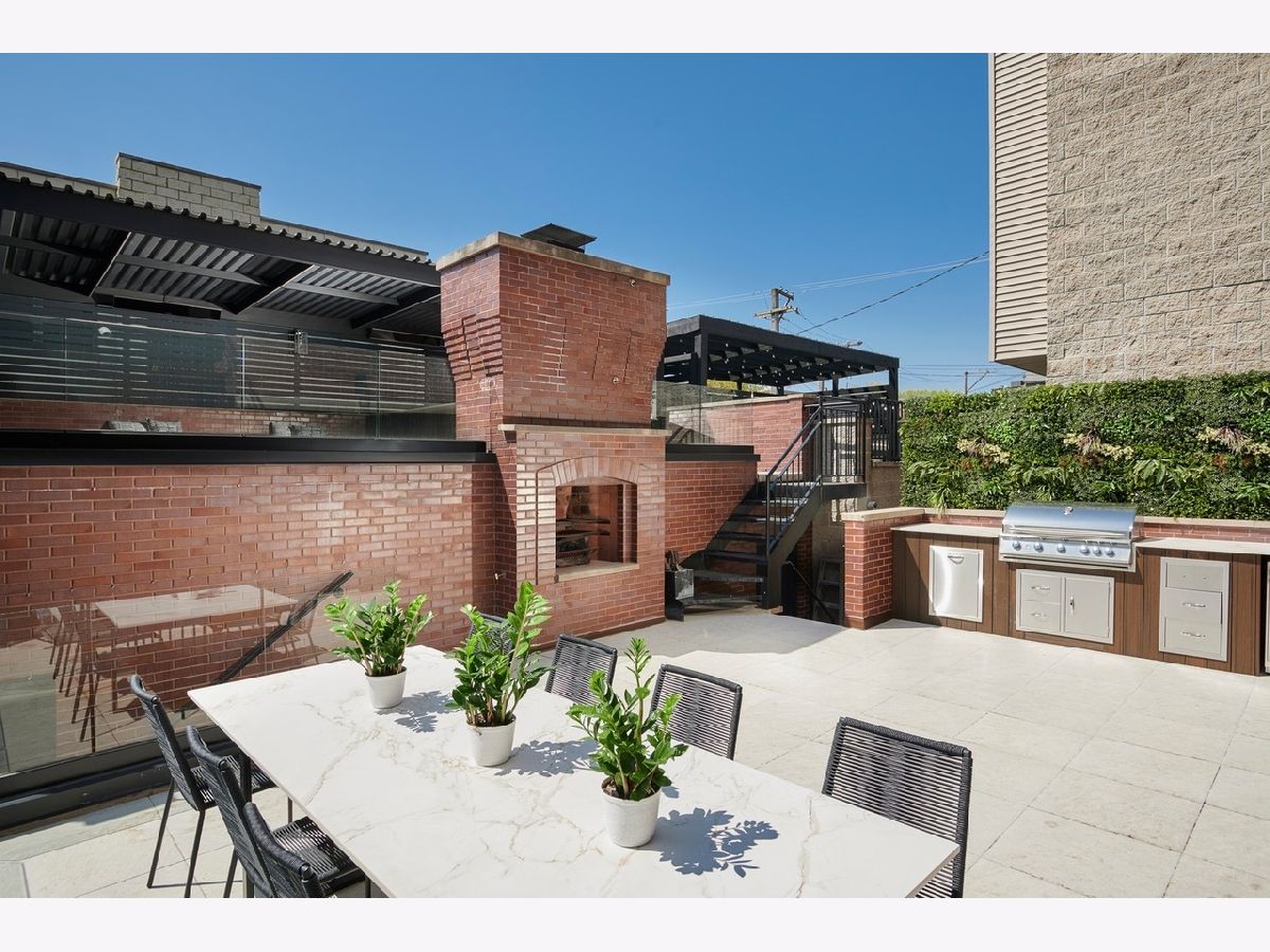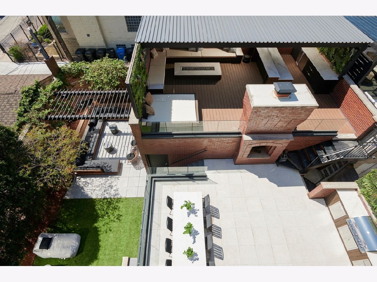 A true RESORT residence in Bucktown! This 6 bed, 5.1 bath has 6 multi-level outdoor spaces, this double lot boasts 9000 sqft of pure retreat with resistance pool, sauna, elevator, wine cellar, invisible sound system. Rehabbed in 2022, this home lives like brand new build. Get ready to be impressed with this couture compound! Upon entering, a grand foyer invites you to elevated 20+ foot ceilings and skylights that flood the home with natural light. The main level library is adorned with a coffered ceiling, built-in shelves, and desk, all designed to showcase exquisite art. The dining room has a contemporary rope chandelier that illuminates the textured wall coverings. The herringbone hardwood flooring extends seamlessly into a top-of-the-line kitchen, outfitted with integrated appliances, a 9-foot quartzite waterfall island, and professional grade appliances, including a 6-burner Wolf stove top, Bosch black hood, double oven, two food warmers, dual dishwasher, and Thermador refrigerator. The drama unfolds in the swanky sunken living room with its vaulted ceilings, exposed beams, limestone fireplace, massive mirrors, and seamless access to three additional al fresco areas: backyard with Verdant turf, a serene courtyard boasting a green wall, crackling fire pit, built-in grill, wine fridge, wet bar and a deck perched above the three-car garage with pergola and outdoor tv. Ascending the architectural staircase, discover three secondary bedrooms all with ensuites, a loft, and the primary suite. Highlighted by the luminous glass mezzanine, custom globe chandelier, meticulous millwork, and chic archway entrance, this sanctuary features a fireplace, double walk-in closets, additional sitting area with a glass-mirrored shoe cabinet, gorgeous walnut floors, private balcony and an ensuite bath adorned with dual ramp sinks, double vanities, a decadent soaking tub with starry lights, water closet and rejuvenating steam shower and body sprays. The lavish third floor entertainment room showcases tigerwood/mirrored cabinetry, a built-in wet bar, skylights casting an enchanting glow, porcelain tile floors, full bath and an 800 square foot penthouse roof deck, offering sweeping views of the 606. This tier comes complete with yet another fireplace and planters featuring an irrigation system plus outdoor storage. Descend to the lower level with a 200-bottle wine cellar, bespoke bar with ice maker, and, to set the mood, extensive lighting package perfect for entertaining in your family room. The state-of-the-art workout room boasting a sauna, indoor resistance pool for invigorating workouts, and an ensuite guest bedroom ensure ultimate comfort for visitors. Every turn of this home has designer fixtures and finishes accompanied by radiant heated floors on all levels, an elevator, custom sound system hidden in the walls and ceilings, 2 laundry rooms, and a 3-car garage.