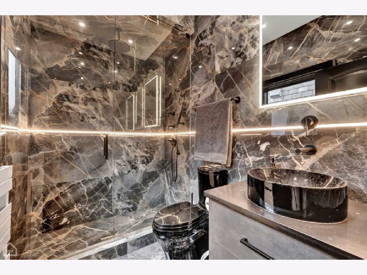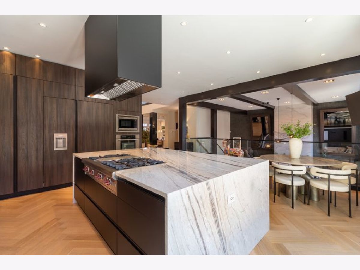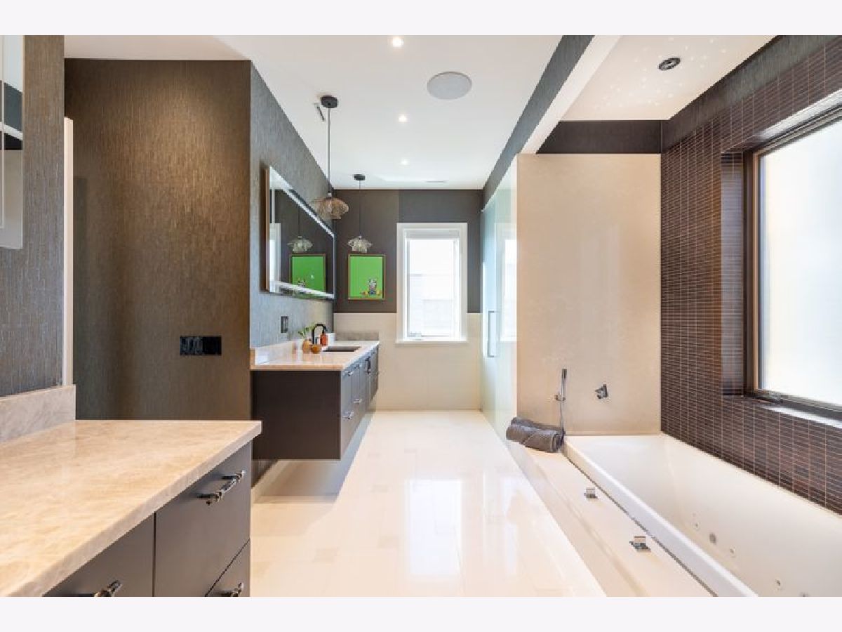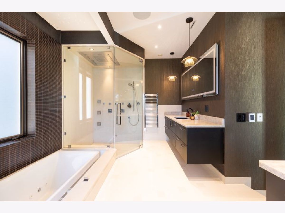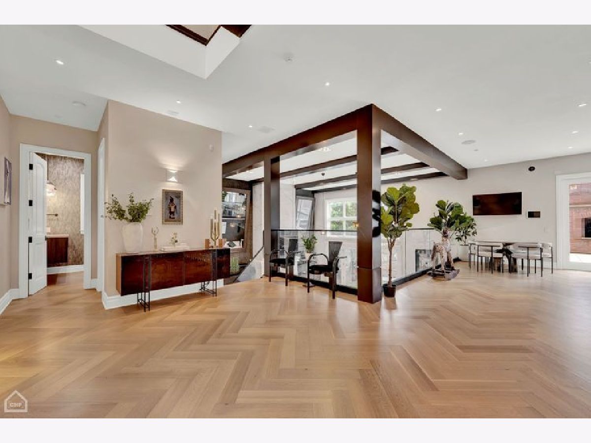 A true RESORT residence in Bucktown! This 6 bed, 5.1 bath has 6 multi-level outdoor spaces, this double lot boasts 9000 sqft of pure retreat with resistance pool, sauna, elevator, wine cellar, invisible sound system. Rehabbed in 2022, this home lives like brand new build. Get ready to be impressed with this couture compound! Upon entering, a grand foyer invites you to elevated 20+ foot ceilings and skylights that flood the home with natural light. The main level library is adorned with a coffered ceiling, built-in shelves, and desk, all designed to showcase exquisite art. The dining room has a contemporary rope chandelier that illuminates the textured wall coverings. The herringbone hardwood flooring extends seamlessly into a top-of-the-line kitchen, outfitted with integrated appliances, a 9-foot quartzite waterfall island, and professional grade appliances, including a 6-burner Wolf stove top, Bosch black hood, double oven, two food warmers, dual dishwasher, and Thermador refrigerator. The drama unfolds in the swanky sunken living room with its vaulted ceilings, exposed beams, limestone fireplace, massive mirrors, and seamless access to three additional al fresco areas: backyard with Verdant turf, a serene courtyard boasting a green wall, crackling fire pit, built-in grill, wine fridge, wet bar and a deck perched above the three-car garage with pergola and outdoor tv. Ascending the architectural staircase, discover three secondary bedrooms all with ensuites, a loft, and the primary suite. Highlighted by the luminous glass mezzanine, custom globe chandelier, meticulous millwork, and chic archway entrance, this sanctuary features a fireplace, double walk-in closets, additional sitting area with a glass-mirrored shoe cabinet, gorgeous walnut floors, private balcony and an ensuite bath adorned with dual ramp sinks, double vanities, a decadent soaking tub with starry lights, water closet and rejuvenating steam shower and body sprays. The lavish third floor entertainment room showcases tigerwood/mirrored cabinetry, a built-in wet bar, skylights casting an enchanting glow, porcelain tile floors, full bath and an 800 square foot penthouse roof deck, offering sweeping views of the 606. This tier comes complete with yet another fireplace and planters featuring an irrigation system plus outdoor storage. Descend to the lower level with a 200-bottle wine cellar, bespoke bar with ice maker, and, to set the mood, extensive lighting package perfect for entertaining in your family room. The state-of-the-art workout room boasting a sauna, indoor resistance pool for invigorating workouts, and an ensuite guest bedroom ensure ultimate comfort for visitors. Every turn of this home has designer fixtures and finishes accompanied by radiant heated floors on all levels, an elevator, custom sound system hidden in the walls and ceilings, 2 laundry rooms, and a 3-car garage.