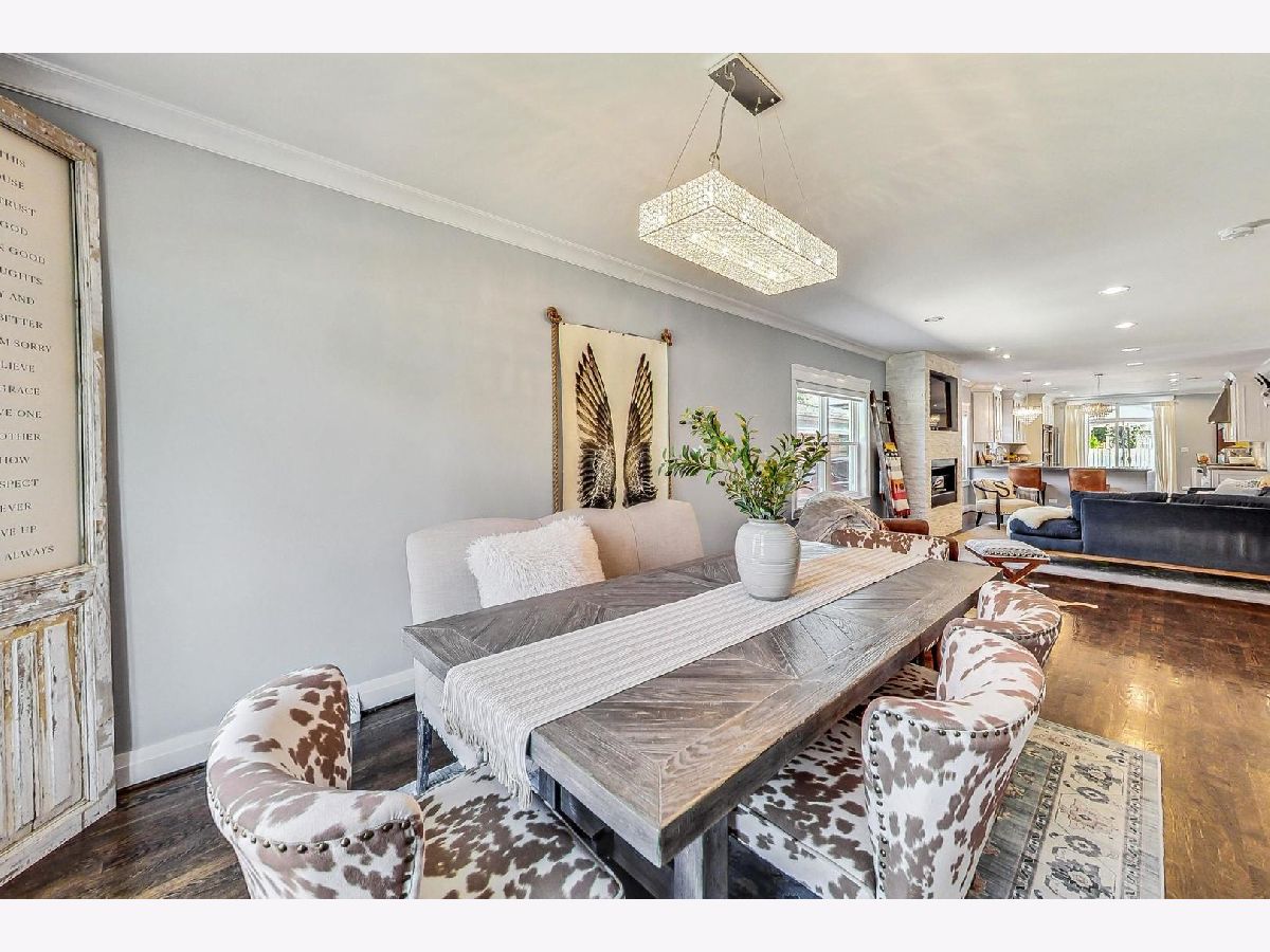 Welcome to this stunning 4-bedroom, 3 1/2 bathroom brick home nestled in the heart of Elmwood Parks River Forest Manor, a charming and vibrant community known for its tree-lined streets and friendly atmosphere. This meticulously updated residence combines classic architectural details with modern amenities, offering the perfect blend of comfort and style.As you approach the home, you'll be greeted by its impressive brick facade, complemented by a well-manicured front lawn and a welcoming entryway. Step inside to discover a spacious and light-filled interior, featuring gleaming hardwood floors and elegant crown molding throughout.The main level boasts an open-concept living and dining area, perfect for guests or enjoying gatherings.First floor family room with bar ties entertaining space together. The living room is anchored by a cozy fireplace, providing a warm and inviting ambiance. Adjacent to the dining area is a gourmet kitchen, complete with stainless steel appliances including Viking stove, custom hood vent, double-oven, granite countertops, custom cabinetry, and a convenient breakfast bar.Upstairs, you'll find generously sized bedrooms, each offering ample closet space and large windows that flood the rooms with natural light. The primary suite is a true retreat, featuring a luxurious en-suite bathroom with a double vanity, soaking tub, and a separate glass-enclosed shower. The lower level of the home offers additional living space, ideal for a family room, home office, or gym. It also includes extra storage space. Outside, the backyard is a private oasis, featuring a spacious patio for outdoor dining and a lawn for play and relaxation. This home is conveniently located near local schools, parks, shopping, and dining options, making it an ideal choice.With its perfect blend of classic charm and modern updates, this Elmwood Park gem is ready to welcome you home.