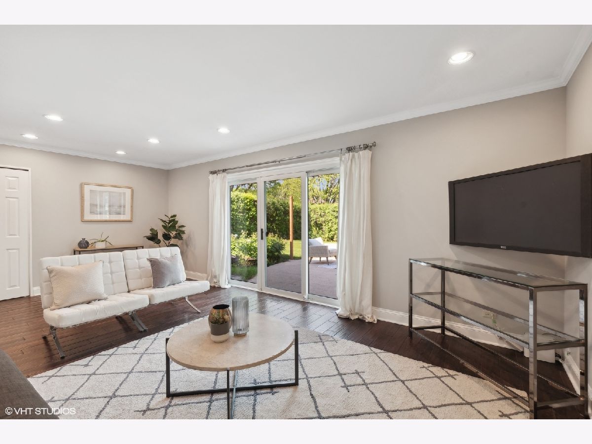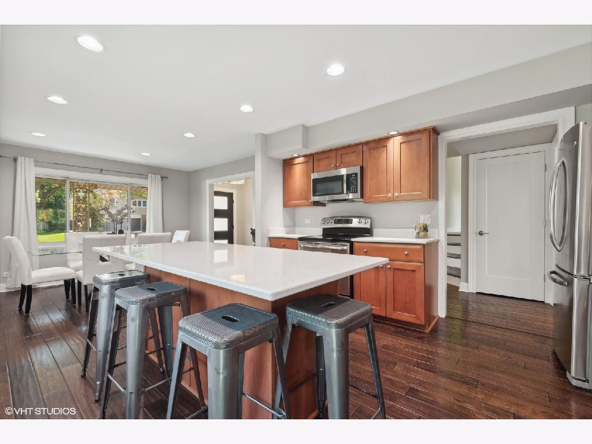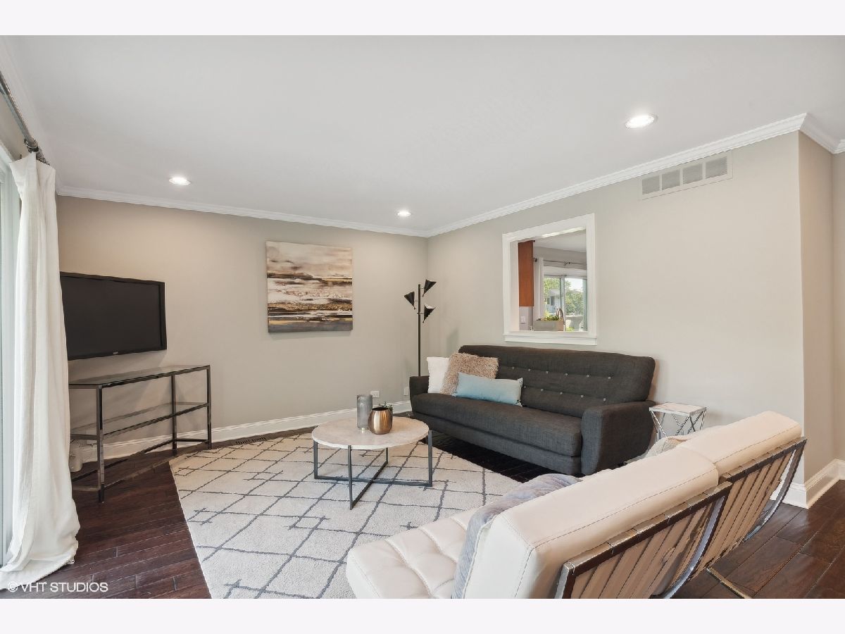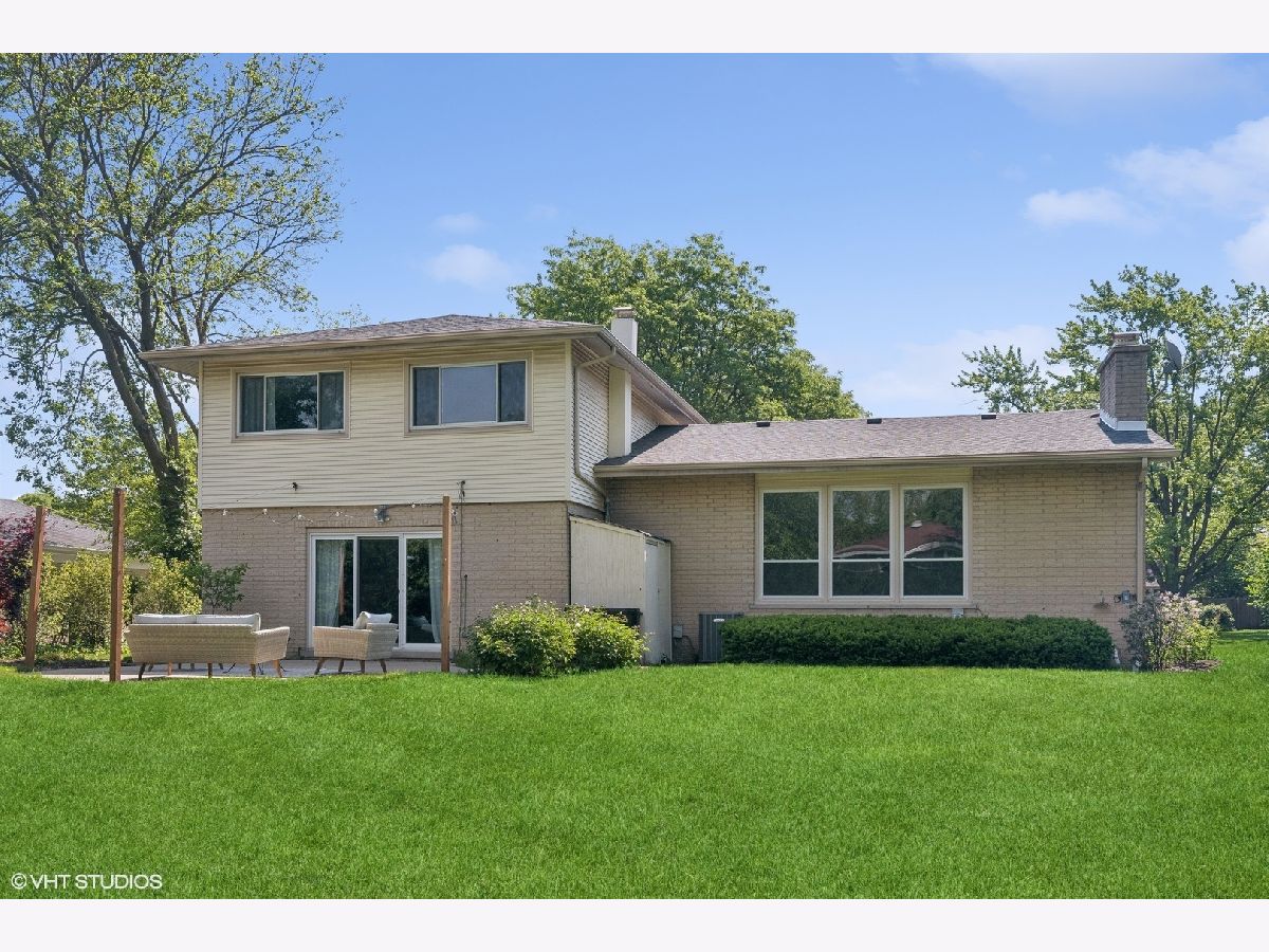 This beautifully maintained home features a series of thoughtful updates and improvements that enhance both its functionality and aesthetic appeal. The first floor was gutted and remodeled in 2010 and now includes wood floors that extend throughout the main level. The home has just been been freshly painted and has new carpet, adding a touch of modern comfort throughout. The light-filled dining area, just off the beautifully updated kitchen, offers a perfect space for gatherings. The kitchen itself is a chef's dream, with new Silestone countertops and stainless steel appliances. The convenient island with seating enhances both functionality and style. Continue on into the spacious living room, bathed in natural light, to find sliding glass doors that lead out to the large outdoor patio and expansive yard. The first floor also includes a bedroom and laundry closet, providing additional convenience and flexibility for living arrangements. Ascending four steps brings you to the expansive family room, which includes a wood-burning fireplace with a gas starter and large windows overlooking the yard, creating a cozy yet bright atmosphere. The upper level houses the primary bedroom, complete with a large walk-in closet and en-suite bathroom, along with two additional bedrooms and another full bathroom. The large lower level recreation room, equipped with recessed lighting, offers ample space for various activities. The home's exterior is equally impressive, featuring updated landscaping and a spacious front porch, perfect for outdoor relaxation. Additionally, the property includes a 2-car attached garage, providing plenty of storage and parking space. This home is in an amazing location close downtown shopping and restaurants as well as all 3 highly rated public schools in District 30 & 225 - Wescott Elementary, Maple and Glenbrook North H.S. Just move in and enjoy all the amenities this home has to offer.