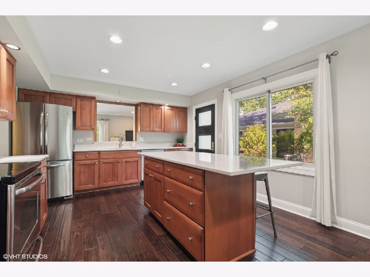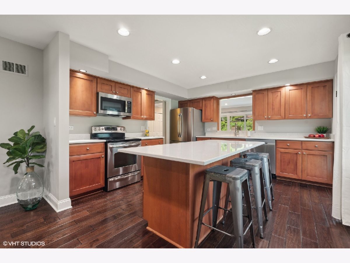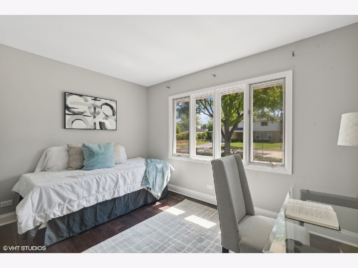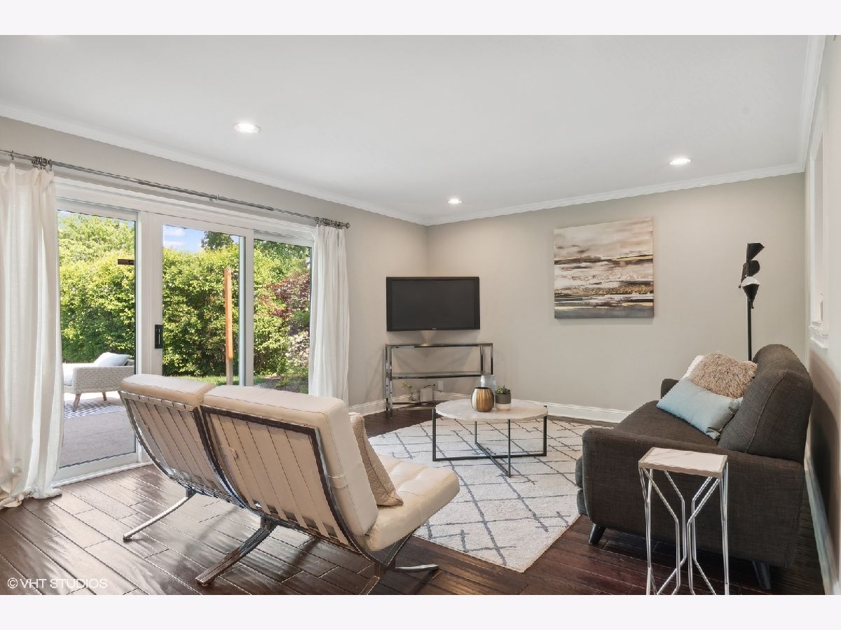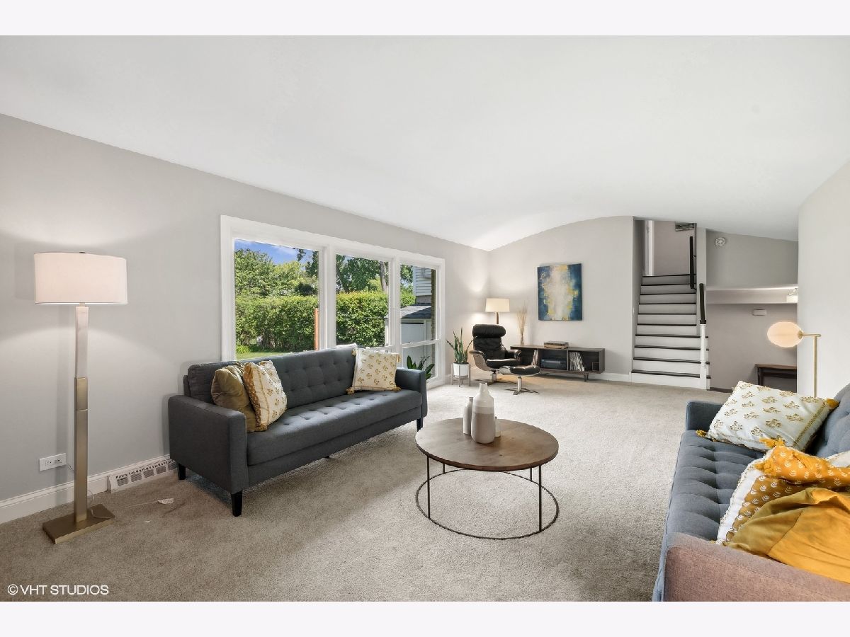 This beautifully maintained home features a series of thoughtful updates and improvements that enhance both its functionality and aesthetic appeal. The first floor was gutted and remodeled in 2010 and now includes wood floors that extend throughout the main level. The home has just been been freshly painted and has new carpet, adding a touch of modern comfort throughout. The light-filled dining area, just off the beautifully updated kitchen, offers a perfect space for gatherings. The kitchen itself is a chef's dream, with new Silestone countertops and stainless steel appliances. The convenient island with seating enhances both functionality and style. Continue on into the spacious living room, bathed in natural light, to find sliding glass doors that lead out to the large outdoor patio and expansive yard. The first floor also includes a bedroom and laundry closet, providing additional convenience and flexibility for living arrangements. Ascending four steps brings you to the expansive family room, which includes a wood-burning fireplace with a gas starter and large windows overlooking the yard, creating a cozy yet bright atmosphere. The upper level houses the primary bedroom, complete with a large walk-in closet and en-suite bathroom, along with two additional bedrooms and another full bathroom. The large lower level recreation room, equipped with recessed lighting, offers ample space for various activities. The home's exterior is equally impressive, featuring updated landscaping and a spacious front porch, perfect for outdoor relaxation. Additionally, the property includes a 2-car attached garage, providing plenty of storage and parking space. This home is in an amazing location close downtown shopping and restaurants as well as all 3 highly rated public schools in District 30 & 225 - Wescott Elementary, Maple and Glenbrook North H.S. Just move in and enjoy all the amenities this home has to offer.