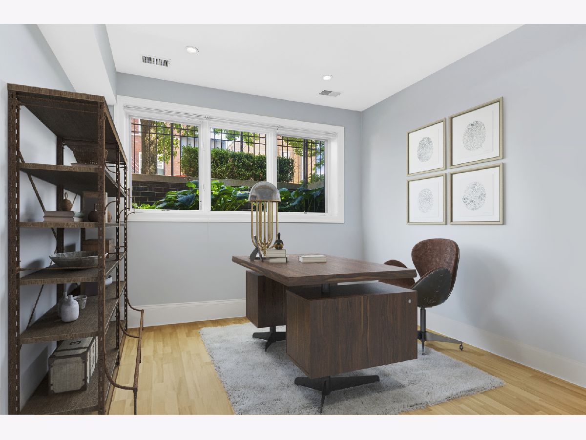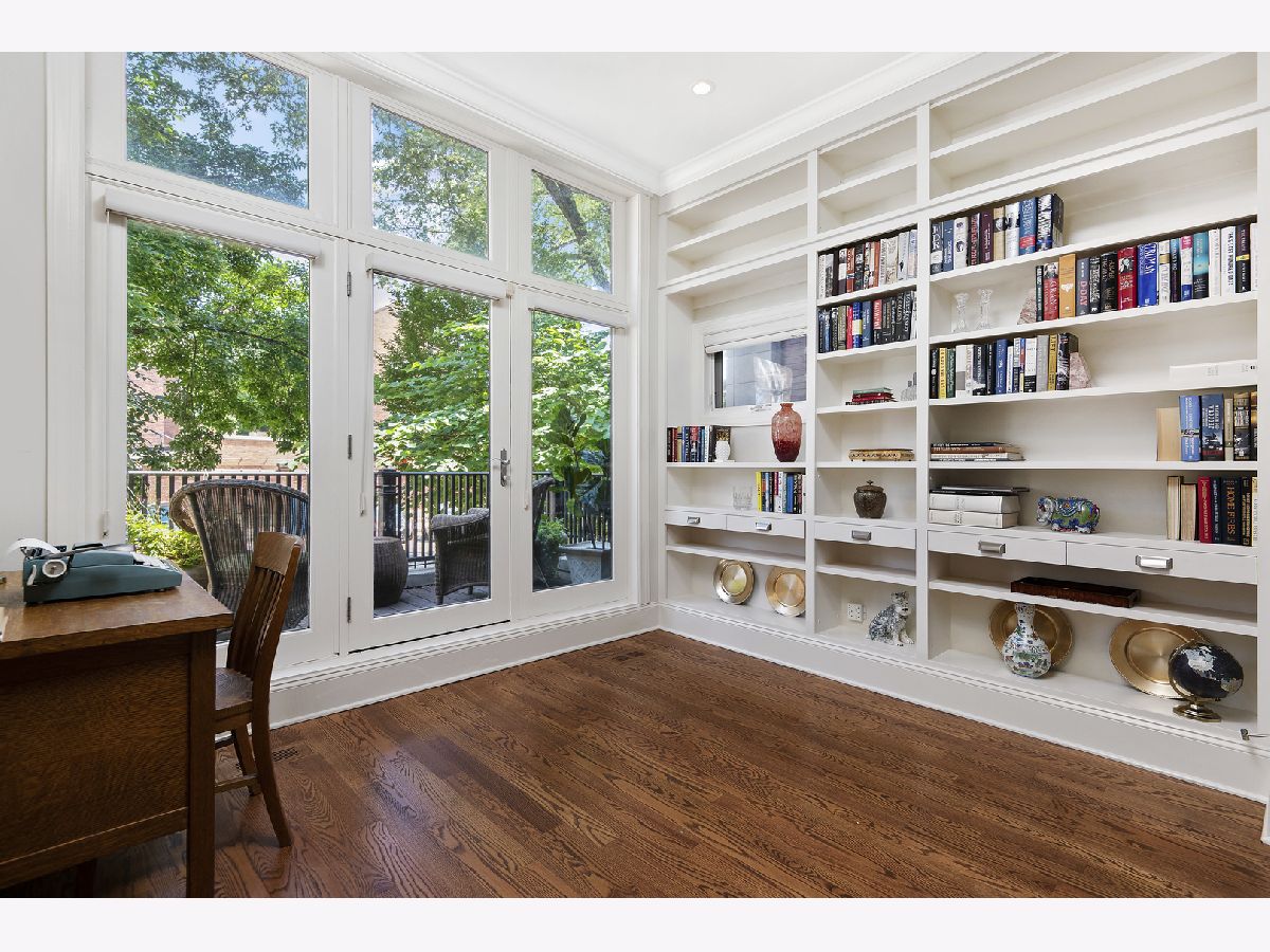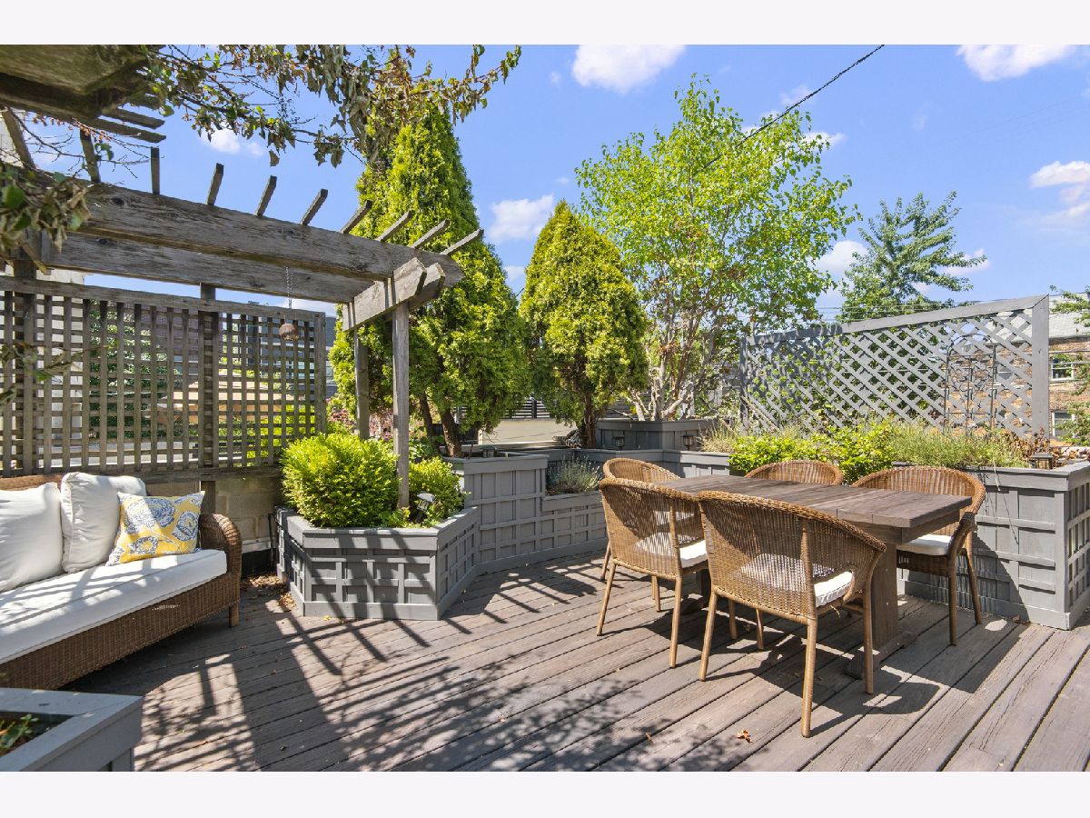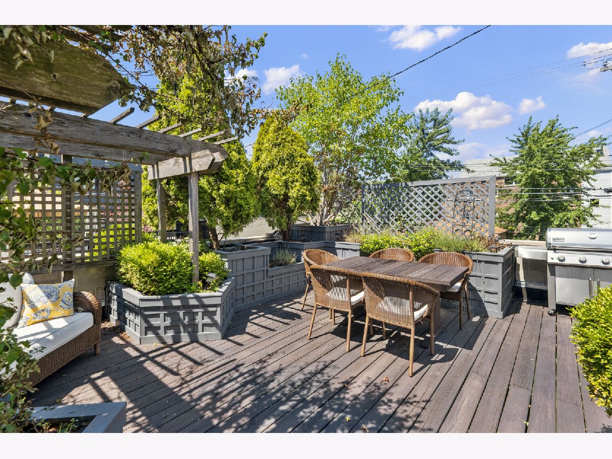 Stunning home with 4BRs plus office on one of Bucktown's best blocks in A+ location just a few doors down from an on-ramp to 606 trail. This home is warm and inviting with soaring ceiling heights, extensive millwork, plenty of sunlight and many upgrades. Main level features spacious living/dining room with gas fireplace, desk area with built-in bookcases, front terrace, updated powder room, bright kitchen with stainless steel appliances, natural stone countertops, abundant cabinetry, and family room off the kitchen with French doors leading to serene, lush garden oasis on garage roof deck with built-in planters, pergola and timed irrigation system. Spacious primary suite features a private terrace, new marble surround wood burning fireplace, custom organized walk-in closet, and new professionally designed luxurious bathroom with high-end fixtures, heated marble floors, double vanity with quartz countertops, frameless sliding shower door and Toto washlet. 2 additional spacious bedrooms upstairs, one with built in desks perfect for zoom calls and a full marble bath with jetted tub. Bright lower level features spacious family room with wood burning fireplace, French doors leading to sunny office/play room/workout room, plus large 4th bedroom, natural stone bathroom, and full size laundry room. Meticulously maintained with masonry recently tuckpointed and sealed, decks re-stained, floors refinished, and fresh paint. Abundant storage, zoned HVAC, and nearly 3 car garage with negotiable garage gym complete this amazing home. Prime walk-to-everything location with quick access to 606 trail, Churchill and Walsh Park, blue line, Metra, and best boutiques and restaurants Bucktown has to offer.