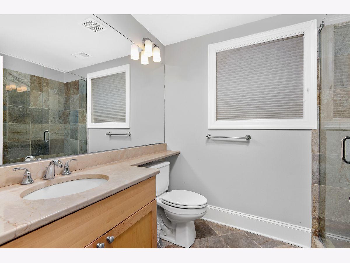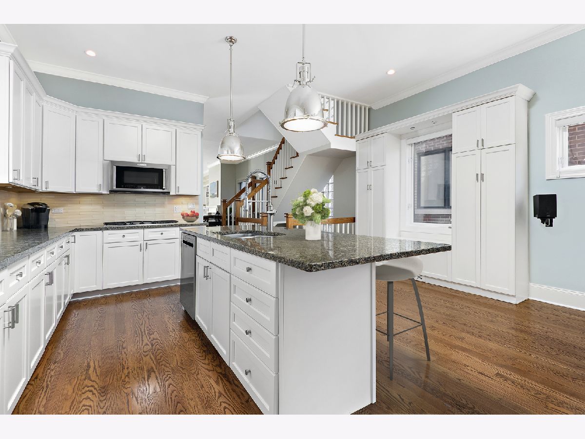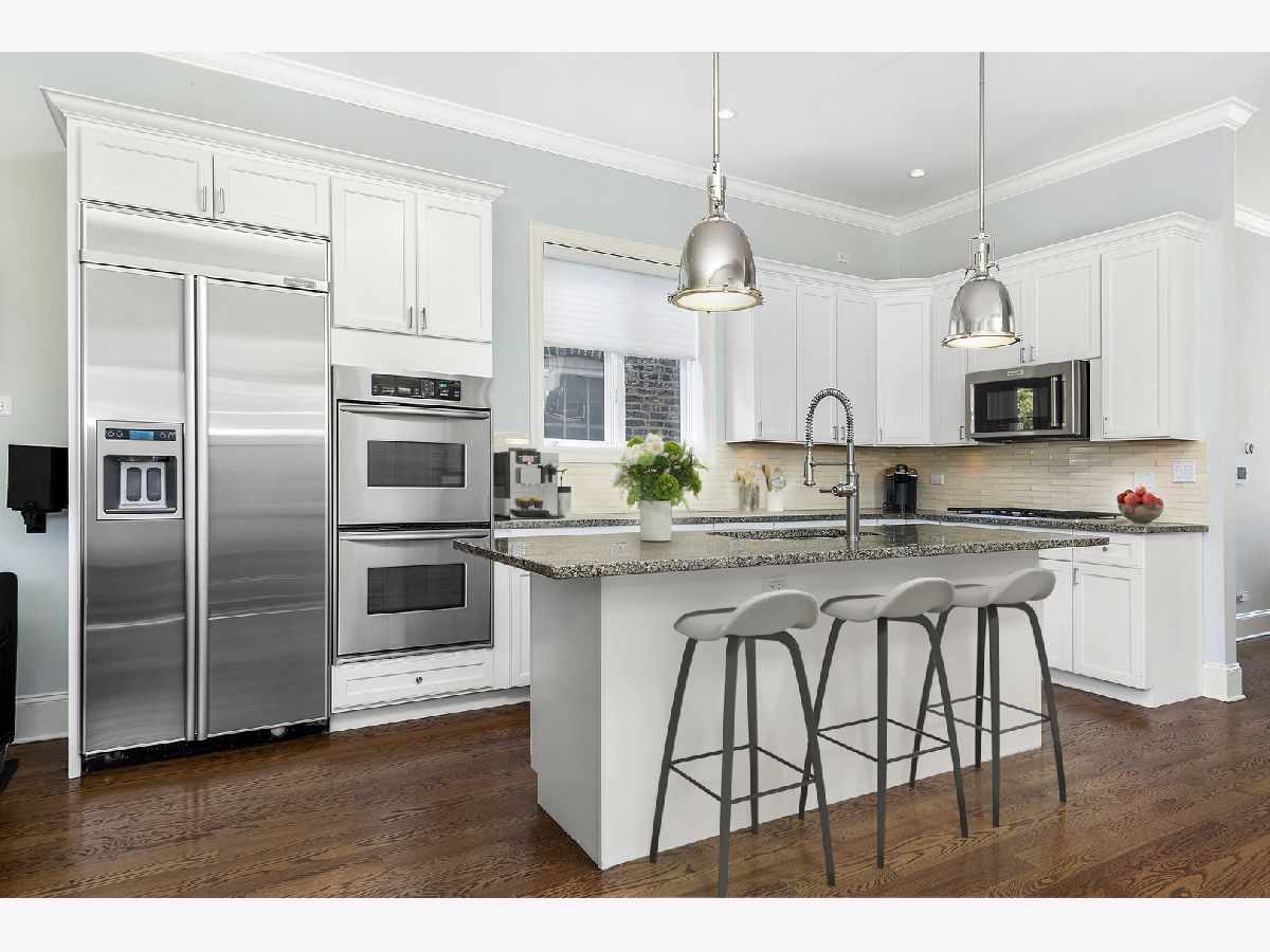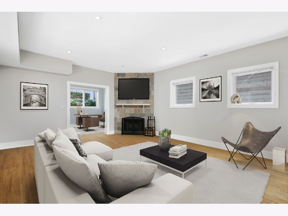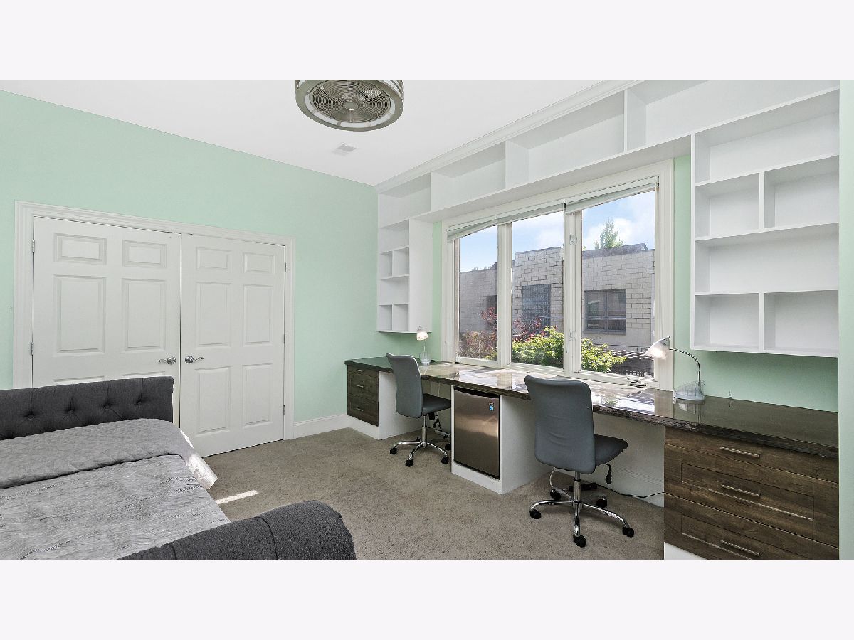 Stunning home with 4BRs plus office on one of Bucktown's best blocks in A+ location just a few doors down from an on-ramp to 606 trail. This home is warm and inviting with soaring ceiling heights, extensive millwork, plenty of sunlight and many upgrades. Main level features spacious living/dining room with gas fireplace, desk area with built-in bookcases, front terrace, updated powder room, bright kitchen with stainless steel appliances, natural stone countertops, abundant cabinetry, and family room off the kitchen with French doors leading to serene, lush garden oasis on garage roof deck with built-in planters, pergola and timed irrigation system. Spacious primary suite features a private terrace, new marble surround wood burning fireplace, custom organized walk-in closet, and new professionally designed luxurious bathroom with high-end fixtures, heated marble floors, double vanity with quartz countertops, frameless sliding shower door and Toto washlet. 2 additional spacious bedrooms upstairs, one with built in desks perfect for zoom calls and a full marble bath with jetted tub. Bright lower level features spacious family room with wood burning fireplace, French doors leading to sunny office/play room/workout room, plus large 4th bedroom, natural stone bathroom, and full size laundry room. Meticulously maintained with masonry recently tuckpointed and sealed, decks re-stained, floors refinished, and fresh paint. Abundant storage, zoned HVAC, and nearly 3 car garage with negotiable garage gym complete this amazing home. Prime walk-to-everything location with quick access to 606 trail, Churchill and Walsh Park, blue line, Metra, and best boutiques and restaurants Bucktown has to offer.
