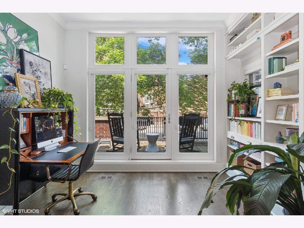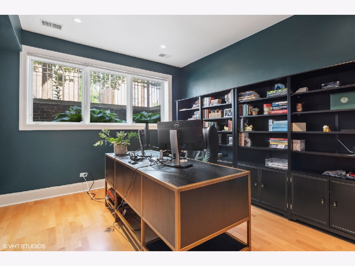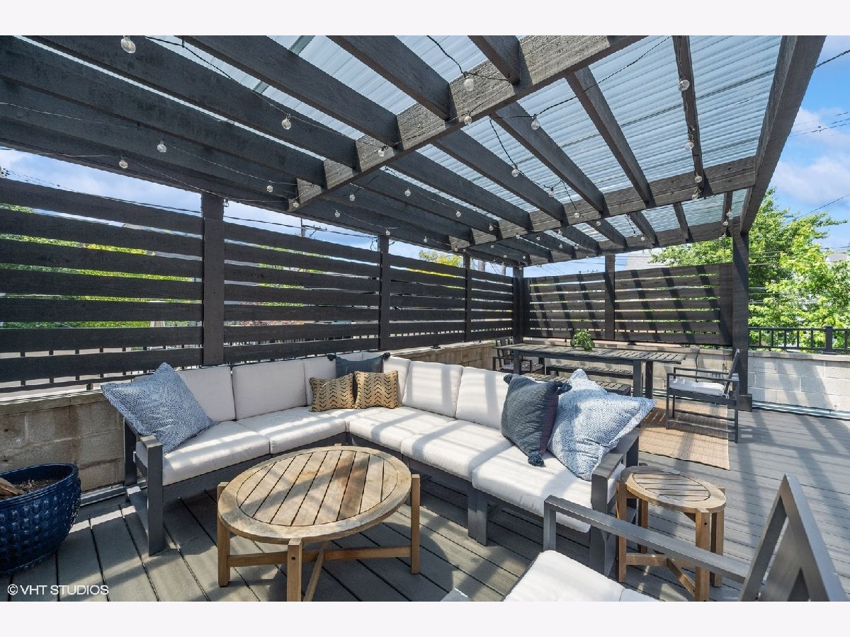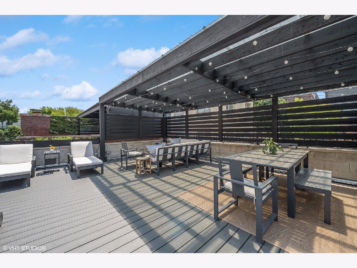 Discover this stunning single-family home situated on one of Bucktown's most desirable blocks, boasting an A+ location just a few steps away from the on-ramp to the renowned 606 trail. From the moment you enter, you'll be captivated by the warm and inviting ambiance, accentuated by soaring ceiling heights, exquisite millwork, an abundance of natural light, and numerous upscale enhancements. The main level presents a spacious living/dining room featuring a cozy gas fireplace, a convenient desk area adorned with built-in bookcases, and a front terrace. The updated powder room adds a touch of modernity, while the bright kitchen offers stainless steel appliances, natural stone countertops, and ample cabinetry. Adjacent to the kitchen, is set up as a dining space OR can be a family room. The French doors lead to a newly completed garage roof deck, complete with pergola - this space is perfect for relaxation and enjoyment. Retreat to the expansive primary suite, boasting a private terrace, a wood burning fireplace, a custom organized walk-in closet, and a professionally designed luxurious bathroom. Indulge in the high-end fixtures, heated marble floors, double vanity with quartz countertops, a frameless sliding shower door. Additionally, the upper level accommodates two more generously sized bedrooms and a second full bath. The bright lower level presents a spacious family room adorned with a wood burning fireplace and French doors that lead to a sophisticated office. There's also a large fourth bedroom, a natural stone bathroom, and a full-size laundry room for added convenience. Meticulously maintained and refreshed throughout. Enjoy ample storage space, zoned HVAC, and a extra wide garage. With a prime walk-to-everything location, you'll have quick access to the 606 trail, Churchill and Walsh Park, the blue line, Metra, and Bucktown's finest boutiques and restaurants. Indulge in the epitome of luxurious living in this exceptional property that offers both elegance and convenience in one of Chicago's most sought-after neighborhoods.