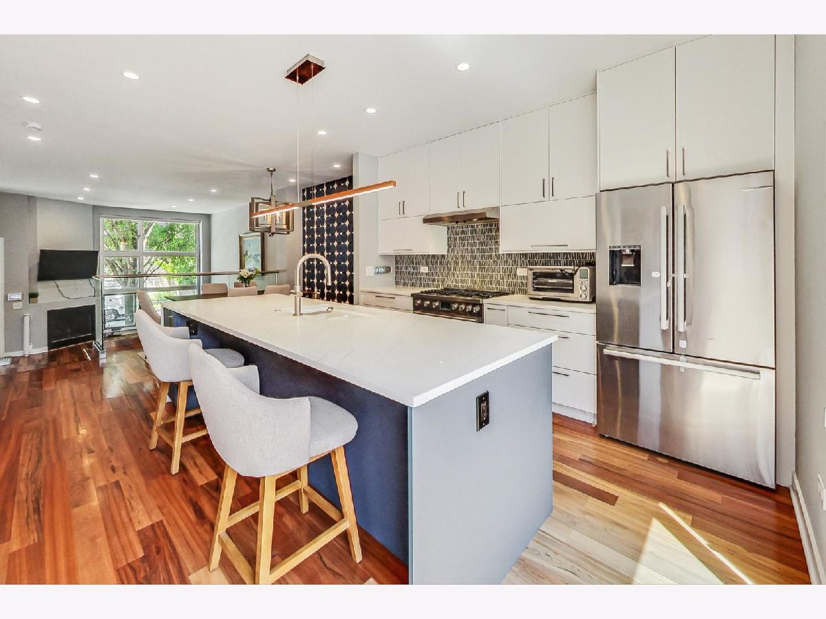 Welcome to your dream home in the heart of Bucktown! Nestled on a charming tree-lined street, this exceptional 2800 sqft, 3 bedroom PLUS den townhome offers 4 levels of functional living space, high-end finishes, and amazing outdoor spaces! Enter from the foyer or the attached 2 car garage to the main level, featuring 14' ceilings and floor-to-ceiling windows filling the cozy living and dining area with natural light. The beautifully renovated chef's kitchen boasts a large island with waterfall edge, gorgeous backsplash, Bosch 6 burner range, custom white cabinets, and lovely deck off the kitchen to enjoy grilling or your morning coffee. This level also includes a convenient powder room. The second floor offers 2 bedrooms including the spacious primary suite featuring a luxurious marble dual vanity bath with a separate shower and whirlpool tub, an expansive walk-in closet, and seating area ideal for an office. The 2nd bedroom offers peaceful tree-top views from its oversized window, and a 2nd full bathroom which completes this floor. The top floor is ideal for entertaining with its generous family room, Murphy bed, and wet bar. This area opens to 2 additional private outdoor spaces with Trex decking, offering views of the Chicago skyline and the 606 bridge! The lower level includes a mud room off the garage that leads into an ideal guest or in-law suite. Gleaming hardwood floors & stylish updates throughout. This fantastic home lives like a single family and is located in a prime Bucktown location within the Pulaski School District, just steps from Ehrler Park and the 606, with convenient access to the Damen or Western CTA stations, and 90/94. Close to incredible restaurants, retail, coffee shops, and nightlife including Small Cheval, The Goddess and Grocer, Etta, Olivia's Market, and much more! If you're looking for multiple living spaces, fantastic outdoor areas, and high walkability, this home has it all!