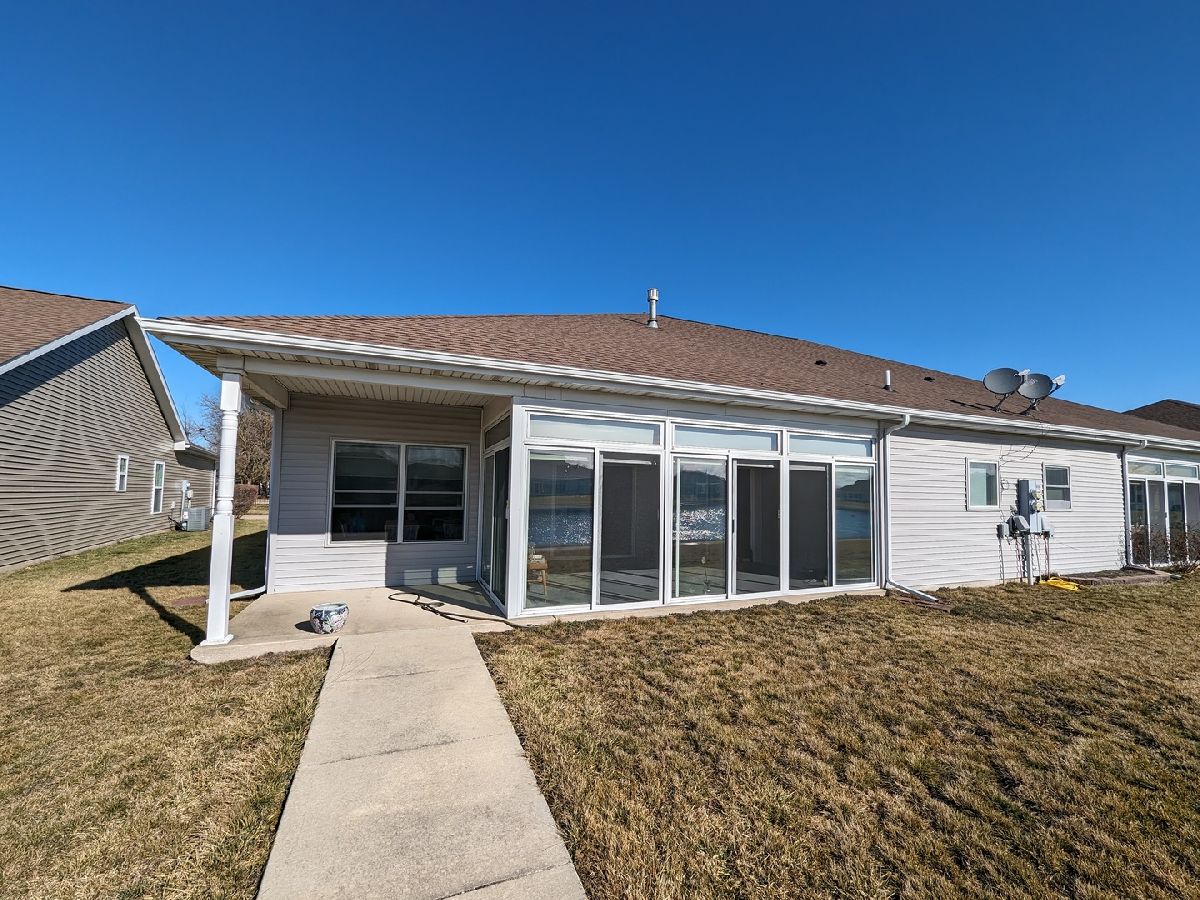 Welcome home to this rare find within the Prairie Winds Subdivision. A 55+ community, a delightful zero lot duplex that offers the perfect combination of modern living and scenic tranquility. No need to downsize with 1,800 square feet, three bedrooms, two bathrooms, two car garage, and a massive three seasons so well insulated it feels like a four seasons room looking over the commons pond. Within the past four years this unit has received a new A/C, furnace, washer, dryer, microwave, refrigerator, toilets, roof, siding, and garage door.