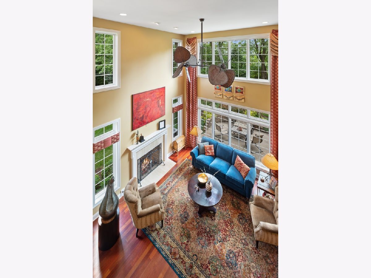 DETAILS. FLOOR PLAN OPTIONS. HOME WARRANTY. Look no further if you're seeking a luxury townhouse community situated amongst lush landscaping, mature trees, and is secluded from the hustle & bustle of everyday life. Upon arrival, you will notice the quality, craftsmanship, and care, from the upgraded brick and stone exterior to the incredible detail throughout the interior of this beautifully appointed, highly desirable end unit townhome. When entering this unit from the front entryway, one's greeted with a flood of natural light coming from the two-story foyer and the abundance of windows that come along with an end unit townhome. One will immediately notice the wooden staircase with upgraded iron rails, Brazilian cherry hardwood floors, and a clear view of the updated kitchen featuring 42-inch cabinets, a custom backsplash with handmade copper tiles from Mexico that are surrounded by a sea of neutral marble, and quartz countertops. The stainless-steel appliances include a wall oven & microwave, gas top stove, refrigerator, and dishwasher. An island suited for additional prep work or seating, and a walk-in pantry with an extra 2nd pantry storage will complete the kitchen offerings. The first-floor powder room boasts a handmade copper sink basin, matching with the copper tiles located in the kitchen, and a new solid surface countertop. Benefit from a flexible floor plan, where the owners currently utilize the grand two-story room with a marble fireplace as a living room, dining room in the back of this room, and family room to the right of the front entrance. The second level reveals a large master bedroom with tray ceilings, a spacious personal nook, and a highly desirable custom walk-in closet. The ensuite master bath features an oversized double vanity with seating area, granite countertops, remote control master bath blind, jetted soaking tub, and a walk-in shower. Down the hall is a guest bedroom with an abundance of natural light from a bank of oversized windows. The guest bath provides a double vanity featuring granite countertops, a large step-in shower, and luxury finishes. Your own corner office awaits in the light-filled loft featuring custom wall to wall bookshelves with additional storage and a peaceful view of the meticulously maintained yard. This Loft space is designed to easily convert to a third Bedroom if you so choose. A full basement and well-appointed mudroom/laundry room continue to add to this Stunning Town Home. Outstanding Location, Schools, and Shopping Complete With Maintenance Free Living.