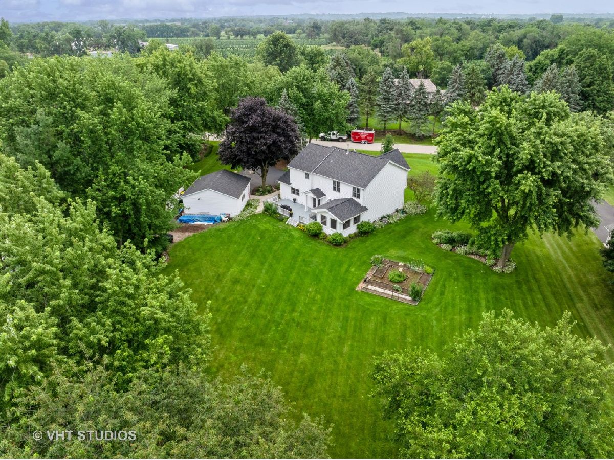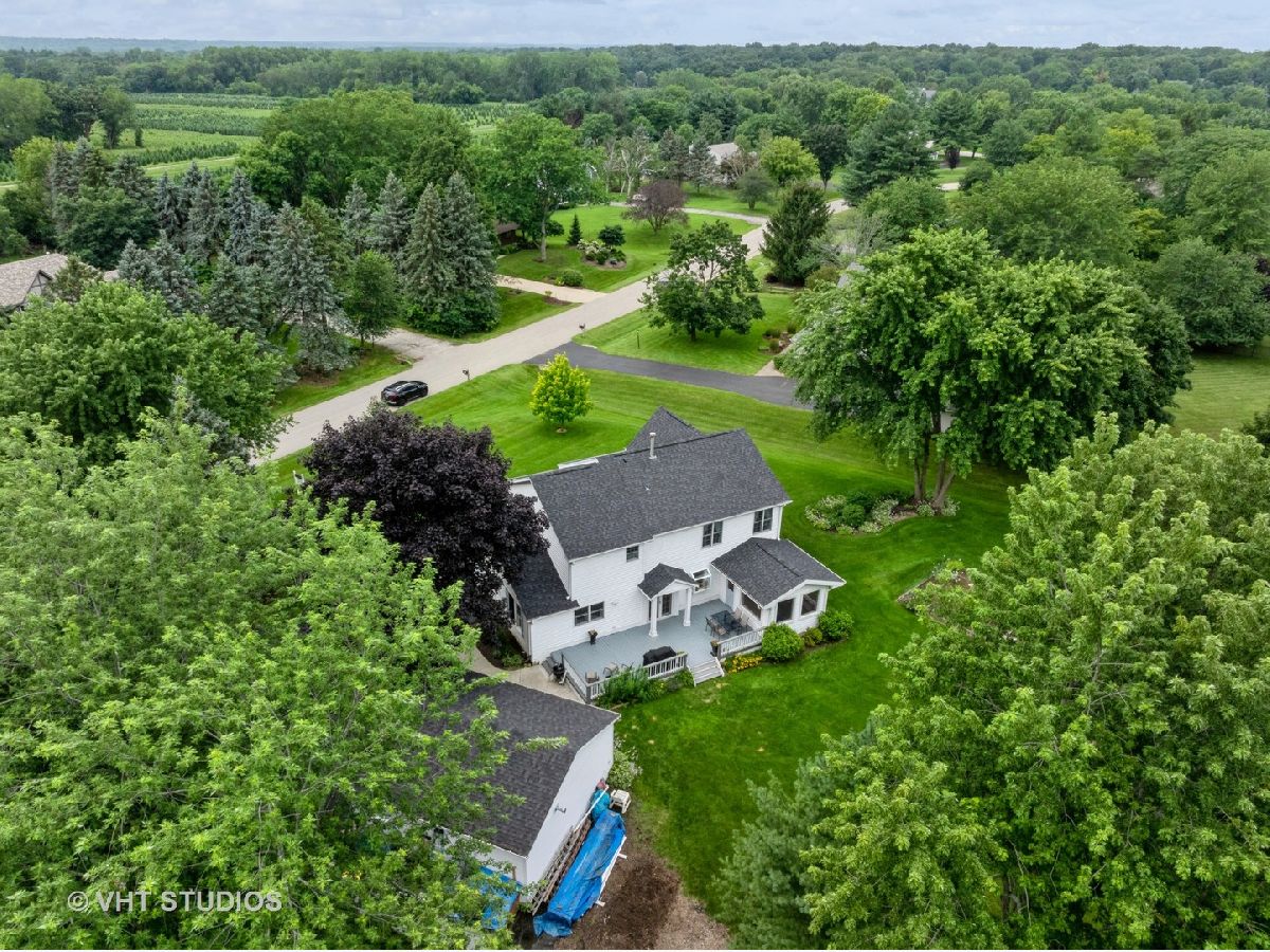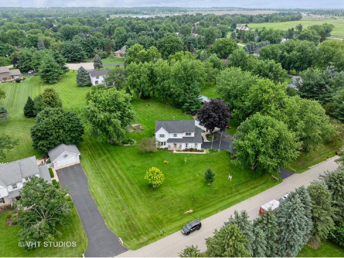 This Spring Grove gem is nestled on a picturesque street with charming homes on large lots, offering privacy within a friendly neighborhood setting. Pride of ownership is evident throughout this Spring Dale Trails home, featuring 4 bedrooms, 2.5 baths, and a total of 4.5 car garage space split between two separate garages, all on nearly a 1-Acre lot. The MAIN floor boasts an open-concept family room adjoining an updated eat-in kitchen, equipped with stainless steel appliances, including a Wolf stove, Miele dishwasher, black walnut countertops, and shaker-style KraftMaid cabinets with soft-close doors. French doors provide a seamless transition from the kitchen/family room to a large deck and expansive backyard with vegetable garden beds. The separate dining room is adorned with wainscoting, crown molding, and custom-built corner cabinets, and also offers access via French doors to a delightful three-seasons room. This room opens directly to the deck and backyard, perfect for indoor/outdoor enjoyment. The SECOND level houses all four spacious bedrooms. The primary bedroom features vaulted ceilings, a walk-in closet with organizers, and an updated ensuite bath. The second bedroom is equally spacious, with vaulted ceilings and a walk-in closet. The 900+ SqFt BASEMENT features multiple nooks and spaces for storage, a laundry room with washer and dryer, a separate area with home mechanicals, and ample additional storage. The detached 2.5-car garage is equipped with both AC and Heating as well as 9-foot ceilings. ADDITIONAL HOME HIGHLIGHTS: 2024 Basement Stairs, 2024 Luxury Vinyl Tile (LVT) Basement Flooring, 2024 Electrical Service Panel, 2023 Roof, 2022 Asphalt Driveway, 2018 Lenox Furnace and AC, 2016 Vinyl Siding, Aluminum Facia & Soffit and Gutters, Well & Septic (1220 Gallon) Chlorinated 2020, Solid 6-Panel Doors Throughout, Schlage Plymouth Grade AAA Door Hardware, Jeld Wen Windows. DETACHED GARAGE: 2024 Vinyl Siding, 2023 LED Lighting, 2023 Forced Air Furnace, 2022 Roof, 2020 Wall 15,000 BTU AC unit, 9-ft Ceilings, Insulated & Drywalled, 100 Amp Sub Panel with 220 Circuit - 1996 Build. This home is in a prime location, just 10 minutes from Chain of Lakes State Park and Wilmot Ski Hill & Tubing Park. It's also close to a neighborhood park and a bike path that leads to downtown Spring Grove. Discover all this and more - COME SEE FOR YOURSELF!