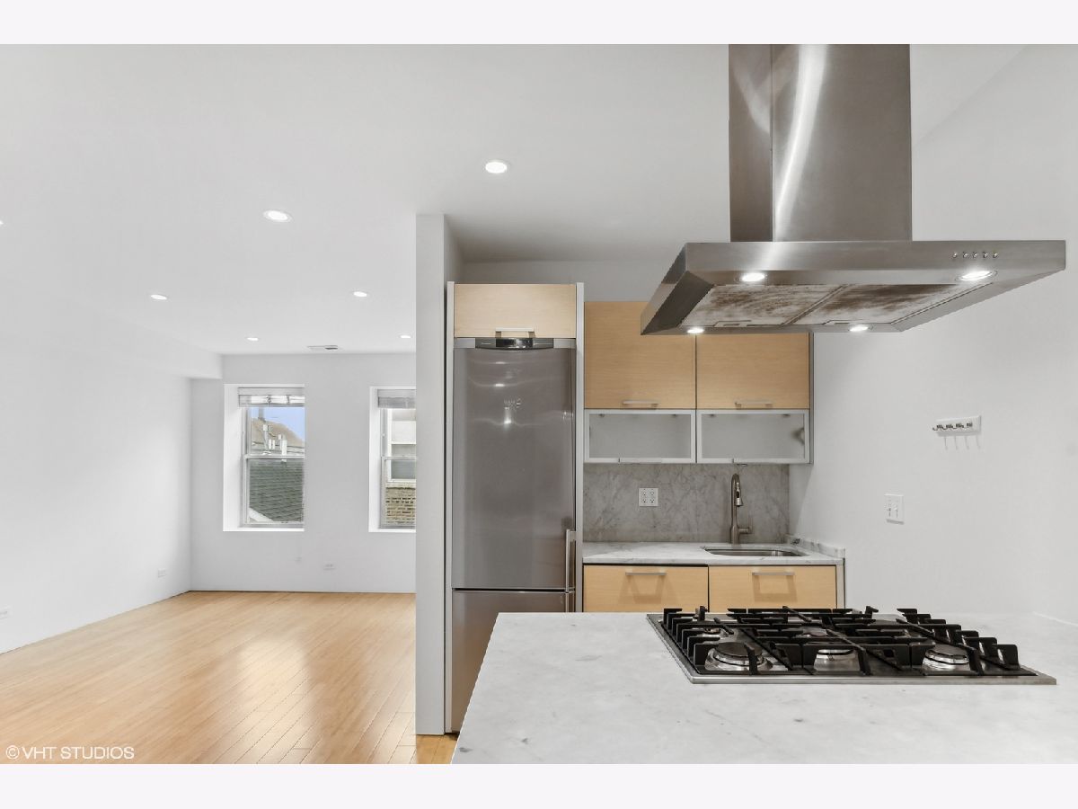 Ultra-rare 2bed condo retrofit in a classic victorian Pilsen building. One of the only condos in Central Pilsen and undoubtedly the most tastefully done, this light-filled modern conversion features timeless features like light floors throughout, blonde and marble kitchen with Fagor appliances and vent hood. Super chic blue mosaic bathroom with floor-to-ceiling tile. #303 is at a higher elevation than all neighboring buildings so it remains filled with natural light all day. HVAC, in-unit laundry and roof deck one floor up complete the package. One block to Pink Line and just steps from legendary 18th st and all of its going ons. Professionally managed with healthy association. Freshly painted (with warranty) and 100% move in ready. Just in time for summer. TVs are included!