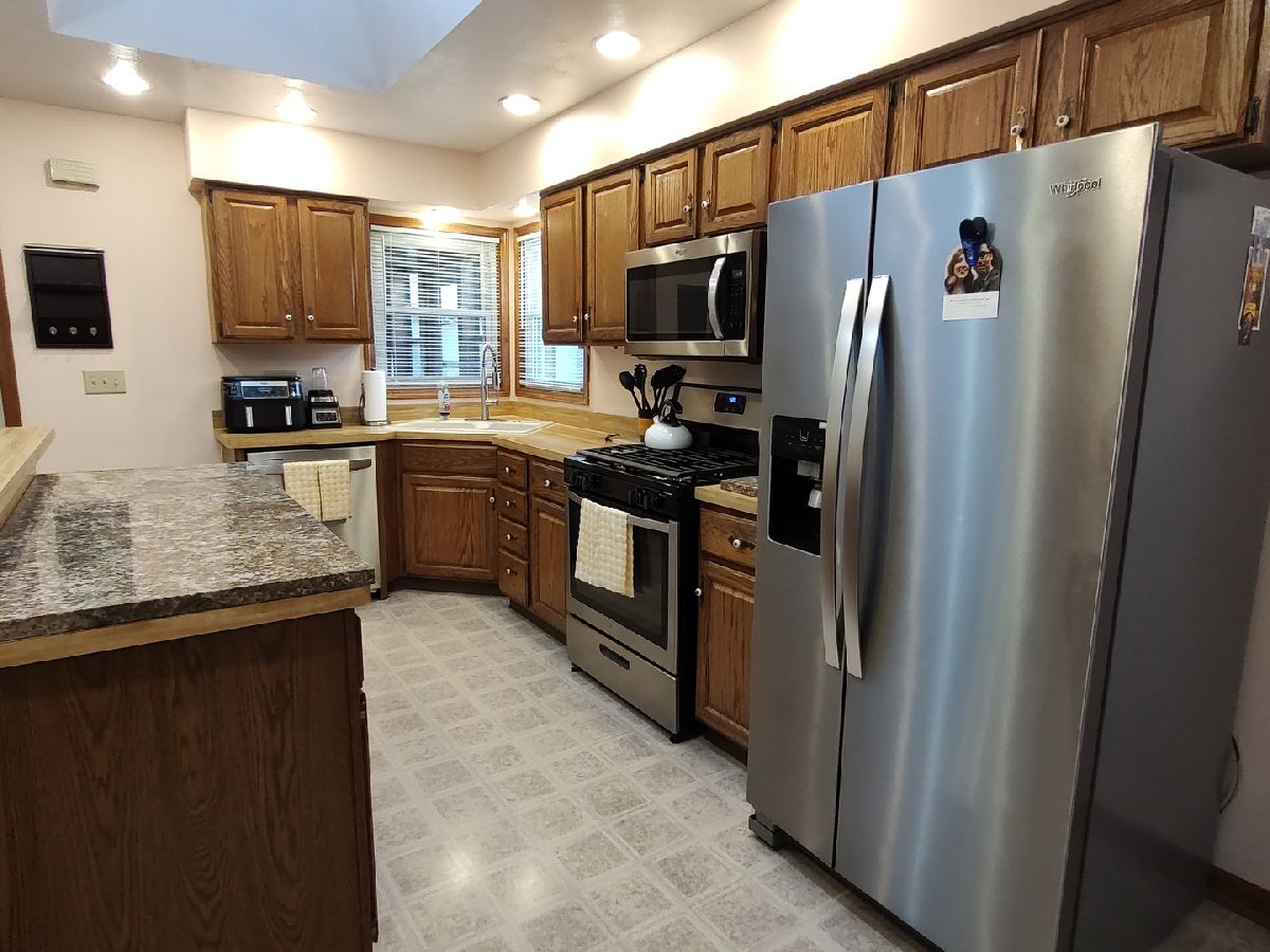 This darling brick home in the Rolling Green neighborhood will be even cuter when the yard starts to bloom. There are 2main floor bedrooms and a lower level bonus room. Natural light from the skylight brightens the eat-in kitchen with newer all matching stainless steel appliances that stay; there is granite laid over portions of the existing countertops, room for table/chairs, and a pantry closet. Formal dining room with a storage closet and wall cutout view to kitchen. Main floor bathroom has new tile around the bathtub and an updated toilet. No need to paint the interior (unless you want to change the color) as the paint is in great condition. Newer laminate flooring in living room and dining room. Hardwood floors in hallway and bedrooms. Built-in storage cabinet in hallway. Updated fixtures. The clean lower level is perfect place for holidays, to keep cool in the summer; enjoy the rec room; use the bonus room as a workout room, extra space for guests, an office, play area for the kids, or whatever fits your needs! The dry lower level also has waterproofing drain tile installed(waterproofing transferable warranty), new carpet, updated bathroom with a new toilet, new tile flooring & new vanity, and cedar storage closet. Newer washer/dryer and extra fridge in basement all stay. All new windows 2023. New furnace (has a transferable warranty) with Aprilaire humidifier. Three season room is awesome space to enjoy views of the partially fenced back yard. Move in ready and available for a quick closing. Central air. Storage shed. Play set stays. Seller is open to leaving or selling some furniture and/or decor; negotiable. Some newer concrete in driveway and back patio area. Request an appointment to see this very clean home! SELLER WILL BE REVIEWING OFFERS MONDAY AT 5PM. THERE ARE A COUPLE OFFERS IN. PLEASE SUBMIT HIGHEST& BEST BY THEN. THANK YOU