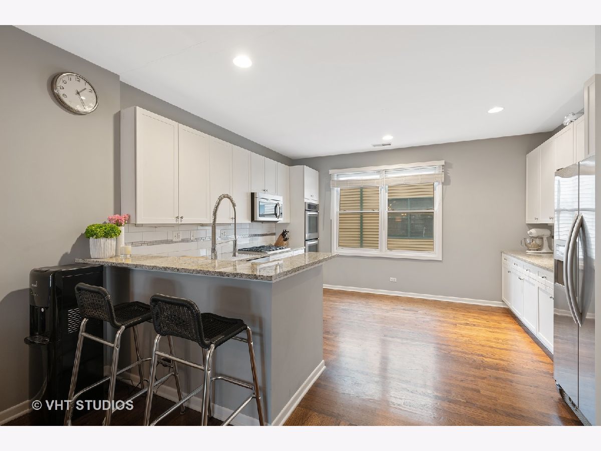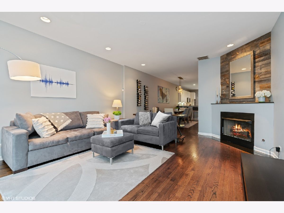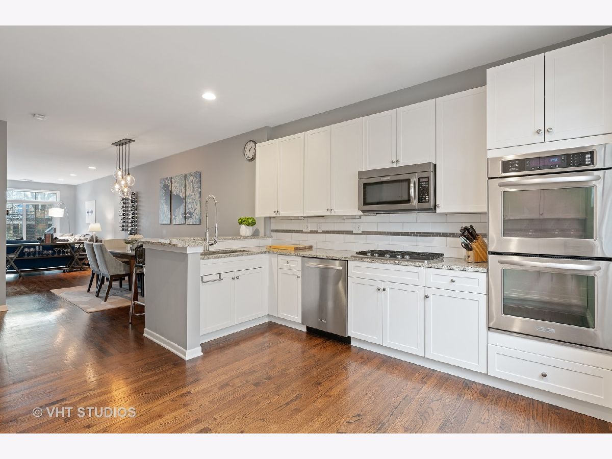 Stunning Dearborn Village townhome in the South Loop inside of a gated community. This home features 3 bedroom, 2 bathrooms, attached garage parking and an exterior parking spot included in price. Refinished hardwood floors throughout first level living space and kitchen. Large, fully updated kitchen with 42 inch cabinets and granite countertops, backsplash. Living space with gas fireplace and large separate dining space and large front balcony overlooking grassy courtyard. Master Bedroom suite with vaulted ceilings, lots of closet space and brand new gutted master bath featuring 72" quartz double bowl vanity and walk in shower. 2nd bedroom and master bedroom on 2nd floor with 3rd lofted bedroom on top level that leads out to upper outdoor terrace. Upper terrace with Trex decking, perfect for entertaining. Top room can be used as 3rd bedroom, office or workout space. 2 parking spots included (1 attached garage + 1 exterior). Walking distance to shopping, public transportation and local schools. Enjoy living in a beautifully landscaped gated court yard!