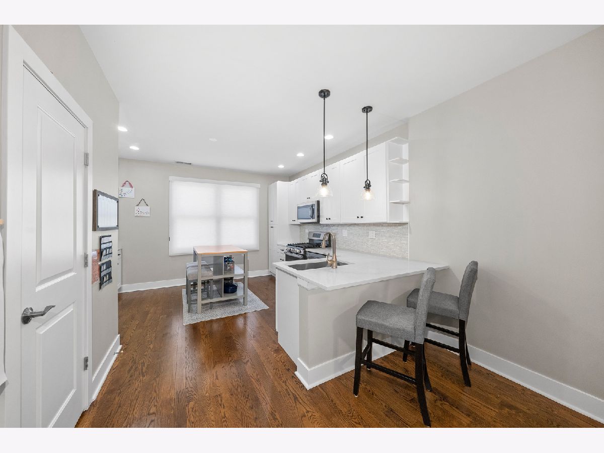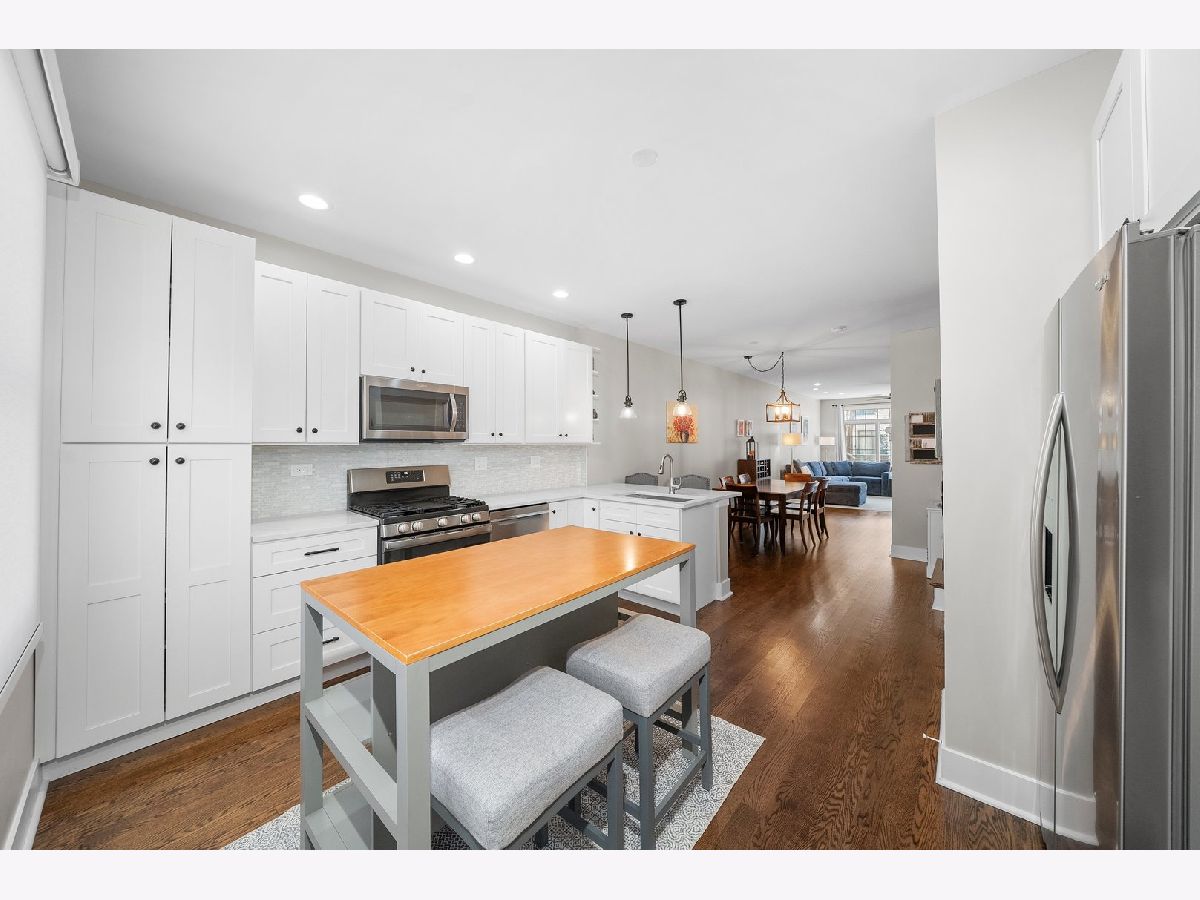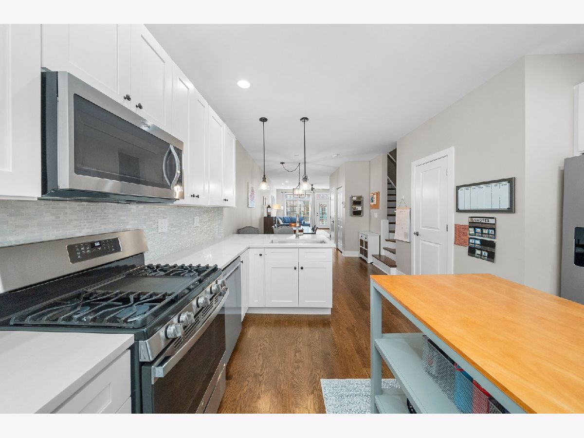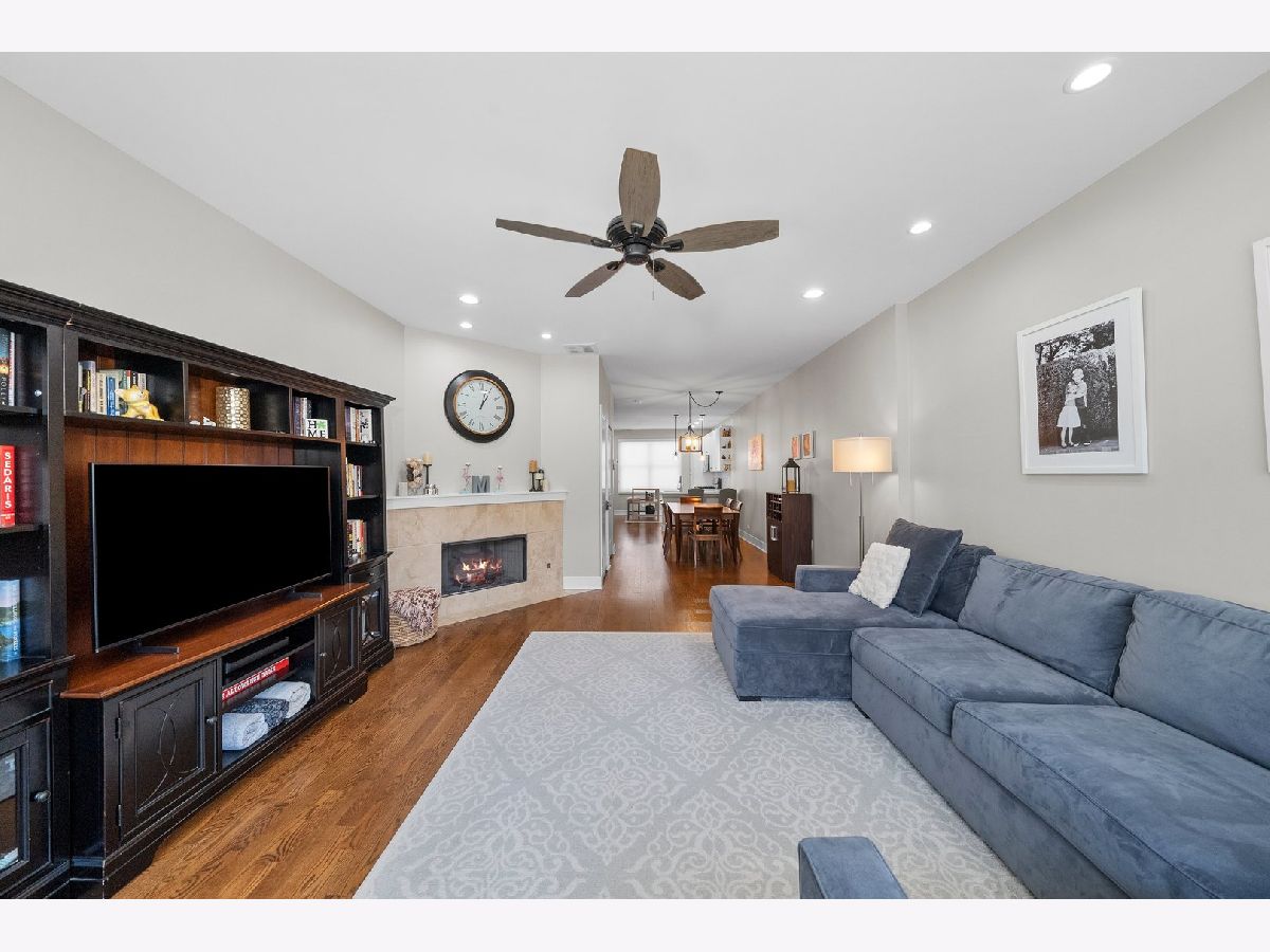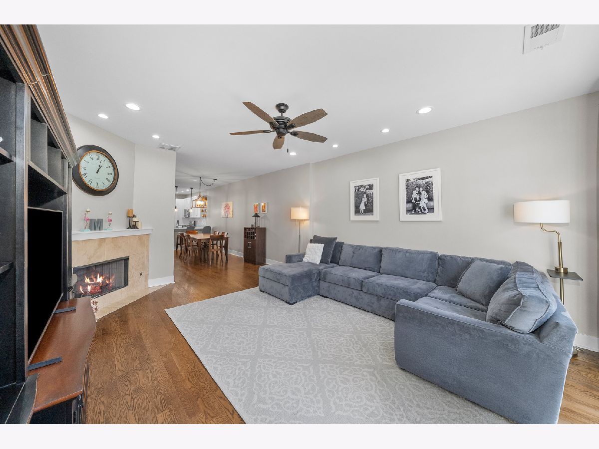 This beautifully and fully renovated 3-bedroom, 2.5-bath townhome in Dearborn Village blends modern design with everyday convenience, making it the perfect home for your growing family. Nestled in a gated community with lush, professionally landscaped courtyards, this home offers a peaceful retreat while keeping you close to everything the South Loop has to offer. As you approach, you're welcomed by a spacious private patio, ideal for summer BBQs, morning coffee, or hosting friends. Step inside to a huge open-concept living and dining area, where warm hardwood floors, a sleek, freshly tiled gas fireplace, and ample space for your furniture create an inviting atmosphere. A brand-new powder room on this level adds extra functionality-perfect for guests or everyday convenience and is a hallmark of modern lifestyle. At the heart of the main floor is a stunning chef's inspired kitchen featuring modern white shaker cabinetry, quartz countertops, a glass tile backsplash, stainless steel appliances, a removable island, and matte black hardware- a dream space for cooking, entertaining, and making memories! Upstairs, you'll find two oversized bedrooms and two fully updated bathrooms. The primary suite is a serene retreat, offering three closets and plenty of room for a king-sized bed, nightstands, dressers, a home office, or even a cozy reading nook. The spa-like en-suite bath features a double vanity with quartz countertops, built-in storage, new fixtures, and a massive walk-in shower with custom glass insert. Down the hall, the second bedroom is perfect for kids or guests, and the fully renovated guest bathroom is just as stylish and functional. Head up to the top floor, where a spacious and versatile third bedroom awaits- could also be ideal as a family room, home office, playroom, gym, or flex space to suit your needs. This level also features a newly created, oversized laundry room with side-by-side washer/dryer and extra storage. The floor was extended over the stairs to add an additional closet and new sliding doors lead out to the recently built private rooftop deck, where you can soak in breathtaking city views and enjoy your own urban oasis. Other noteworthy updates include a new high-efficiency furnace, AC condenser, roof, humidifier, water heater, LED light fixtures, fresh paint, new carpet in the bedrooms, new tile in the bathrooms, and new hardwood flooring throughout. One attached garage parking space plus an additional outdoor spot are both included! Located in a quiet, gated courtyard community, you're just steps from Mariano's, Lakefront trails, Lake Michigan, CTA & Metra, all major highways and some of the best local coffee shops and restaurants in the South Loop. Don't miss your chance to make this stylish and spacious townhome your own!