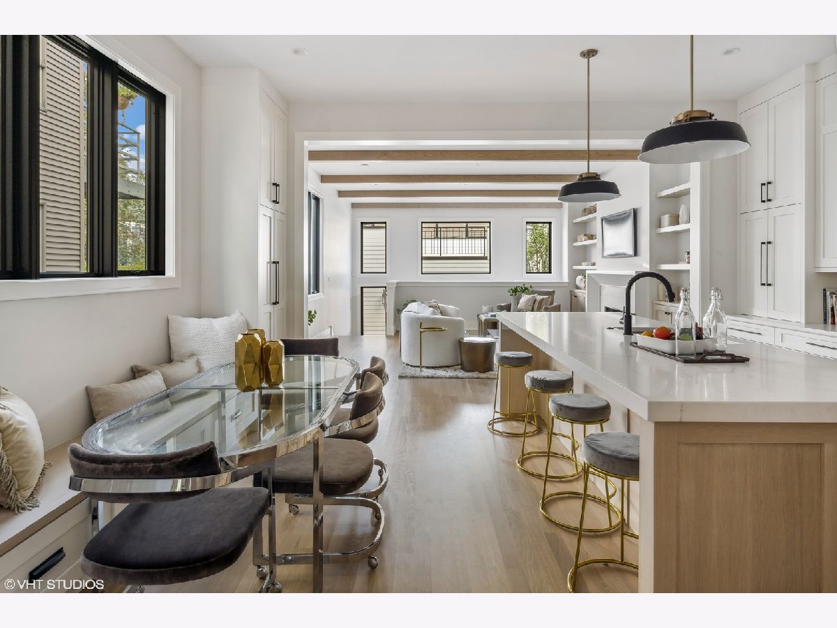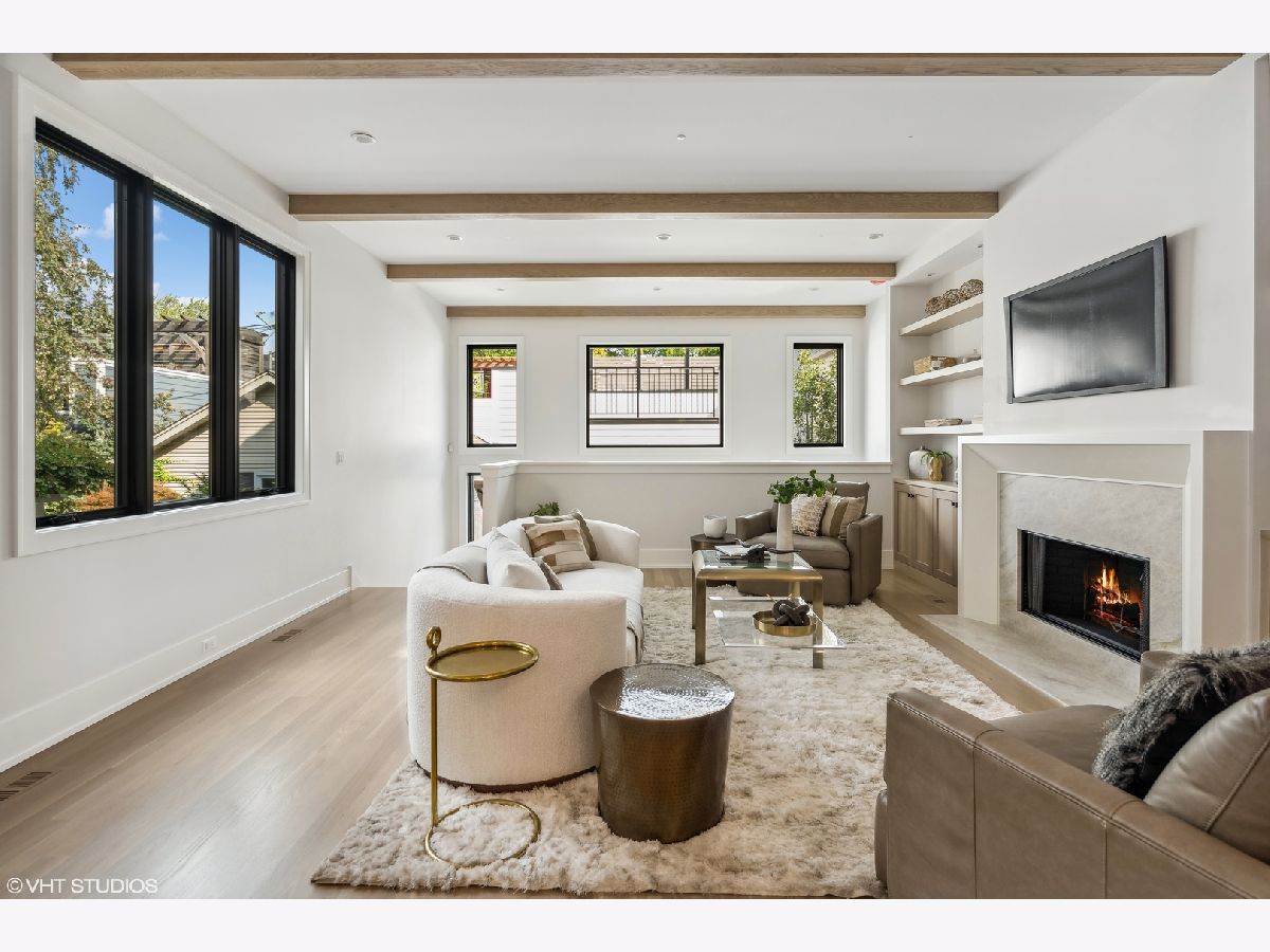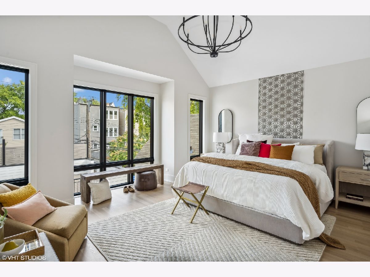 With four bedrooms on the second level, discover the epitome of luxury living in Roscoe Village with this six bedroom, four and a half bath new construction home located on a tree-lined, one-way street in Chicago. Due to the positioning of the homes adjacent, 1812 receives an abundance of natural sunlight throughout the home which is rare on a standard lot in the city. The exterior showcases Hardie-board siding, Marvin Elevate thermopane windows, automatic snowmelt front stairs and back patio, and a professionally landscaped rear yard oasis with a natural gas line for your grill. Enjoy a heated two car garage with a private roof deck for additional outdoor space. Inside, experience natural white oak flooring, 10-foot ceilings, and exquisite finishes. The eat-in kitchen is a culinary dream with custom cabinetry, a built-in banquette, Quartz counters, and top-tier appliances flowing seamlessly into the family room with a wood-burning fireplace. The primary suite boasts a cathedral ceiling, expansive windows, dual walk-in closets, and a spa-inspired bath. Additional bedrooms feature en-suite baths. The lower level offers a spacious family room, wet bar, fifth bedroom/office, and an ensuite sixth bedroom. Mechanicals include Heil gas forced air systems, radiant heat, and eco-friendly insulation. Smart-home features, security, and modern connectivity wiring complete this luxurious home. A short walk to Whole Foods, Target, Paulina Brown Line Stop, and all the boutique shops and restaurants that make Roscoe Village the most charming neighborhood in Chicago.