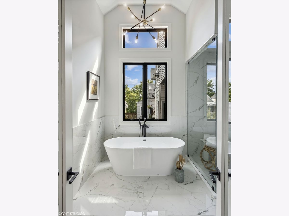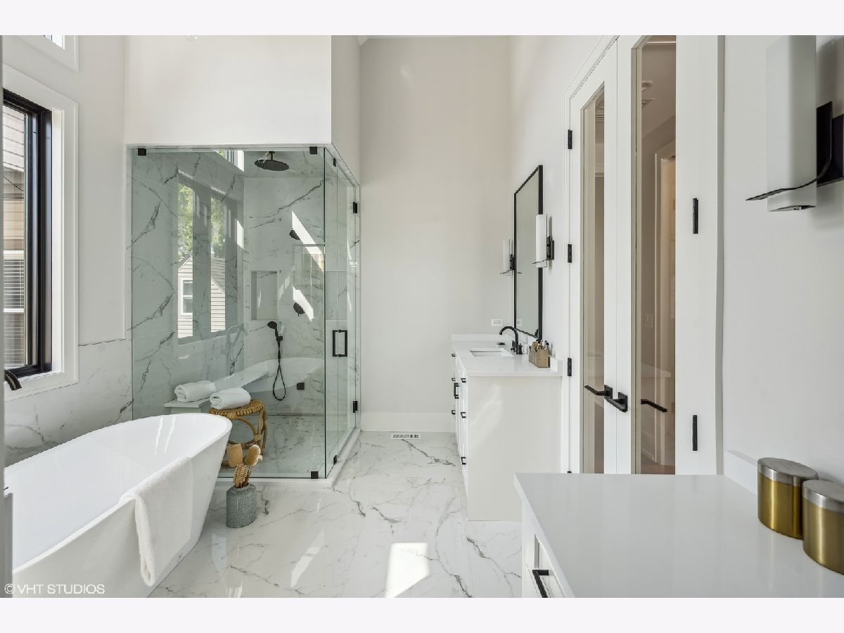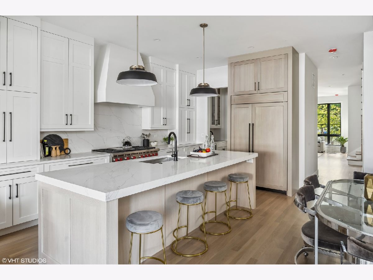 With four bedrooms on the second level, discover the epitome of luxury living in Roscoe Village with this six bedroom, four and a half bath new construction home located on a tree-lined, one-way street in Chicago. Due to the positioning of the homes adjacent, 1812 receives an abundance of natural sunlight throughout the home which is rare on a standard lot in the city. The exterior showcases Hardie-board siding, Marvin Elevate thermopane windows, automatic snowmelt front stairs and back patio, and a professionally landscaped rear yard oasis with a natural gas line for your grill. Enjoy a heated two car garage with a private roof deck for additional outdoor space. Inside, experience natural white oak flooring, 10-foot ceilings, and exquisite finishes. The eat-in kitchen is a culinary dream with custom cabinetry, a built-in banquette, Quartz counters, and top-tier appliances flowing seamlessly into the family room with a wood-burning fireplace. The primary suite boasts a cathedral ceiling, expansive windows, dual walk-in closets, and a spa-inspired bath. Additional bedrooms feature en-suite baths. The lower level offers a spacious family room, wet bar, fifth bedroom/office, and an ensuite sixth bedroom. Mechanicals include Heil gas forced air systems, radiant heat, and eco-friendly insulation. Smart-home features, security, and modern connectivity wiring complete this luxurious home. A short walk to Whole Foods, Target, Paulina Brown Line Stop, and all the boutique shops and restaurants that make Roscoe Village the most charming neighborhood in Chicago.