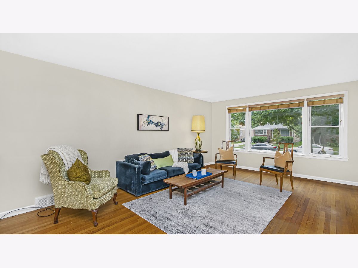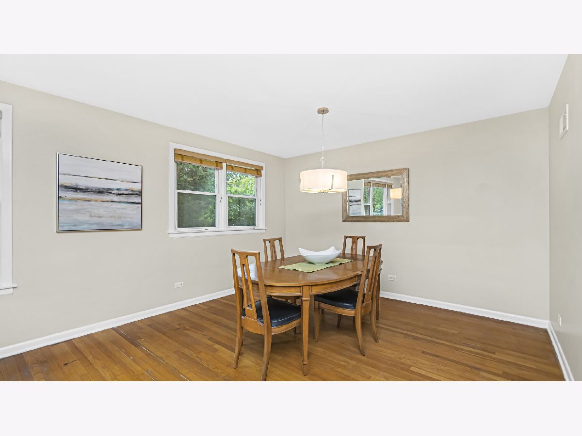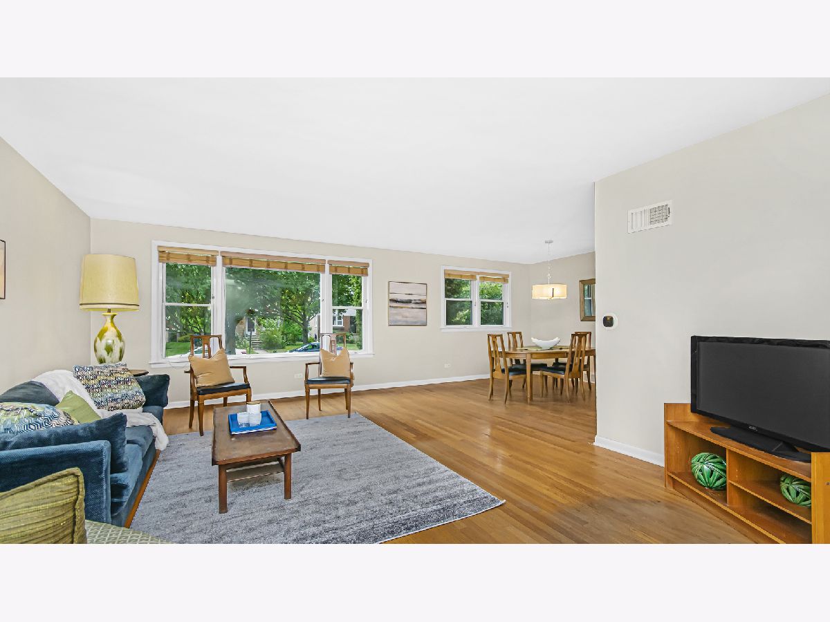 Spacious brick ranch on lovely tree-lined street. Generous living room with picture windows. Separate dining area. Eat-in kitchen with original mid-century modern kitchen cabinets. Three roomy bedrooms. Updated full and half bathrooms. Hardwood floors! The basement has a large finished recreation room with wood paneling, amazing storage and laundry/utility room. Pretty fenced yard. Desirable Dawes elementary school and Evanston Township High School. Wonderful location-walk to the new Robert Crown Community Center and James Park. Close to shopping, dining, trains, Northwestern University and Lake Michigan.