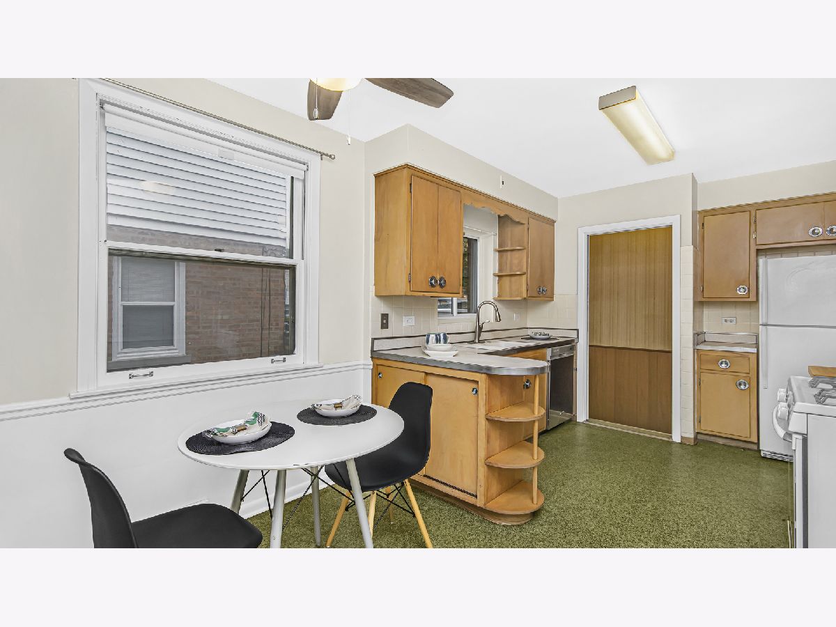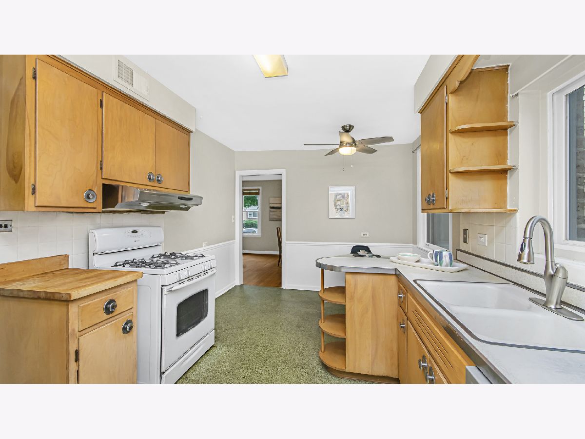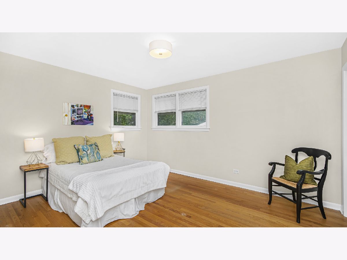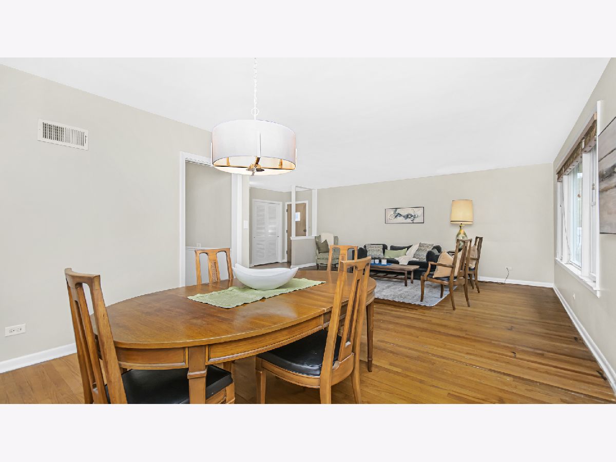 Spacious brick ranch on lovely tree-lined street. Generous living room with picture windows. Separate dining area. Eat-in kitchen with original mid-century modern kitchen cabinets. Three roomy bedrooms. Updated full and half bathrooms. Hardwood floors! The basement has a large finished recreation room with wood paneling, amazing storage and laundry/utility room. Pretty fenced yard. Desirable Dawes elementary school and Evanston Township High School. Wonderful location-walk to the new Robert Crown Community Center and James Park. Close to shopping, dining, trains, Northwestern University and Lake Michigan.