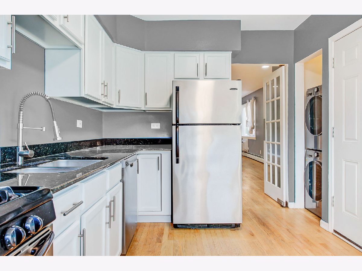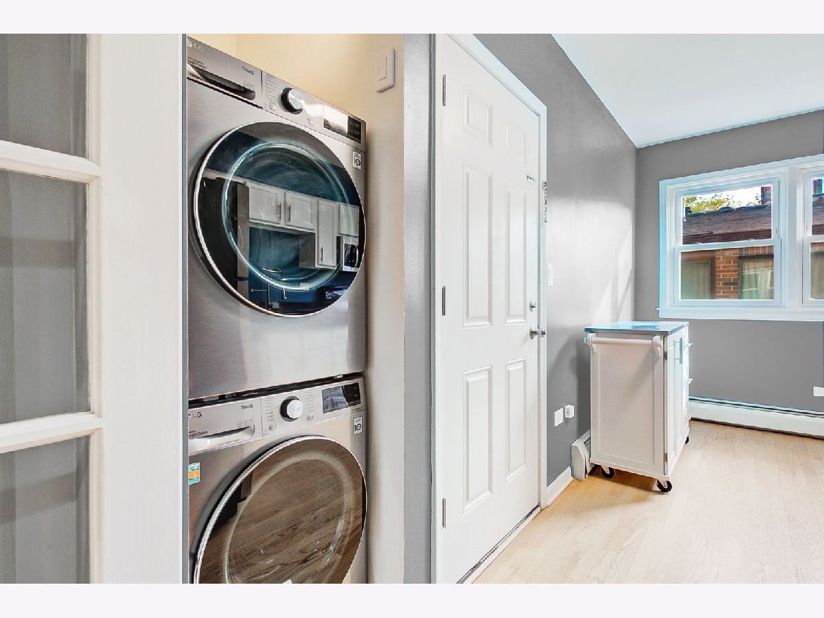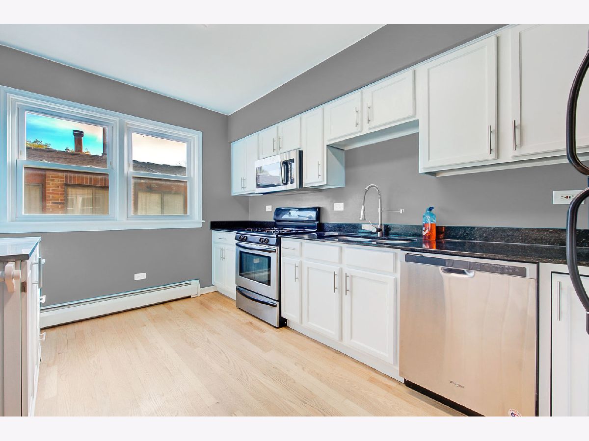 Bright and spacious top-floor unit in beautifully maintained East Rogers Park courtyard building. Condo is located on a 3rd floor walk-up, 3 short flights of stairs. Look at the room sizes! Expansive living/dining room combo, perfect for entertaining. Kitchen features stainless steel appliances, new stylish kitchen faucet, LED panel lighting on the ceiling, refinished white cabinets. New LG washer/dryer and two new window LG a/c units. King-sized bedrooms with oversized closets and modern shelving system in closets. Master bedroom with en-suite bath a jetted Aqualux tub. Refinished hardwood floors throughout. Fresh paint and ample street parking. Storage Locker in the basement. Great location! Walk to the Metra, public transportation, restaurants and shopping. `