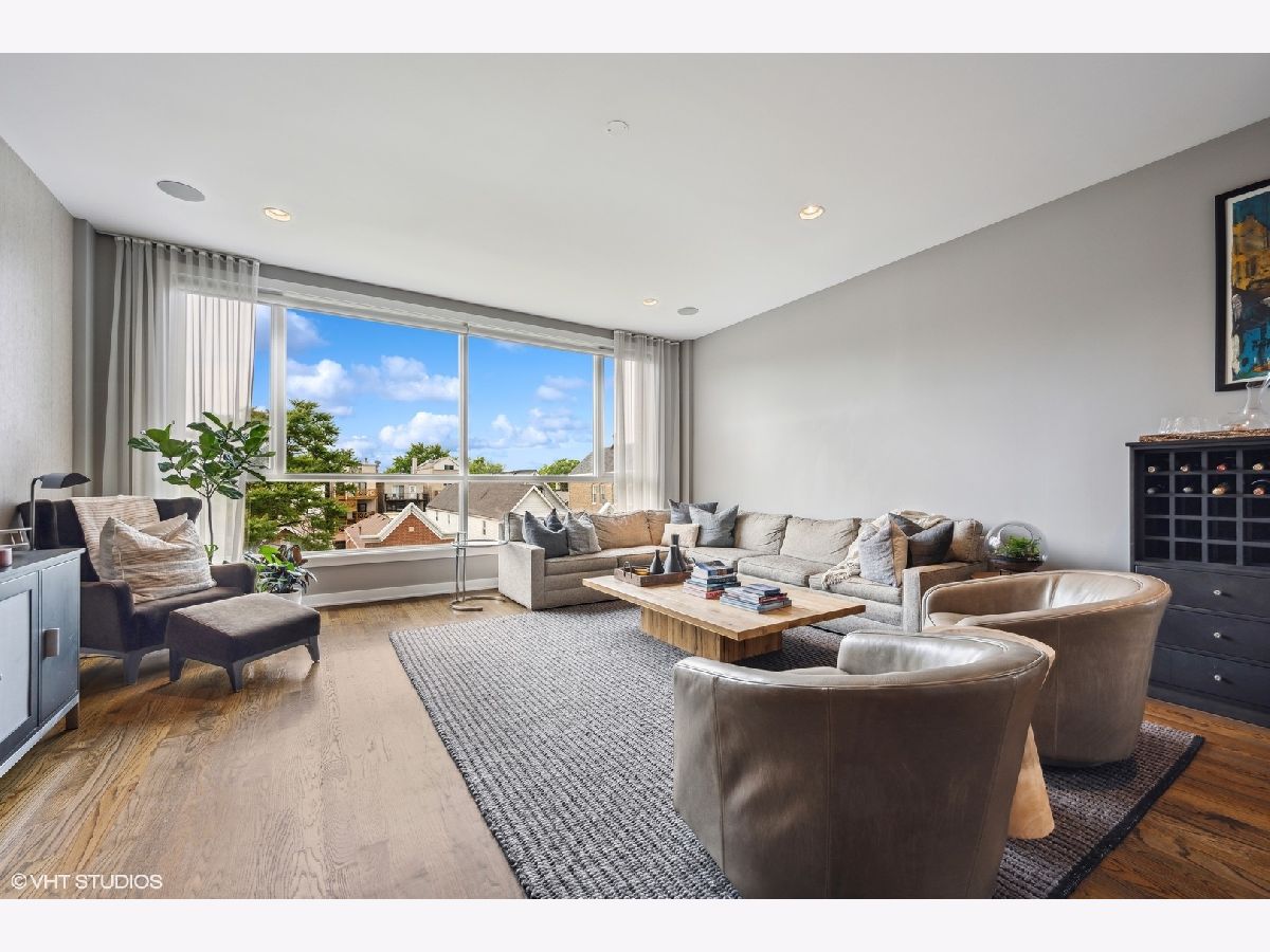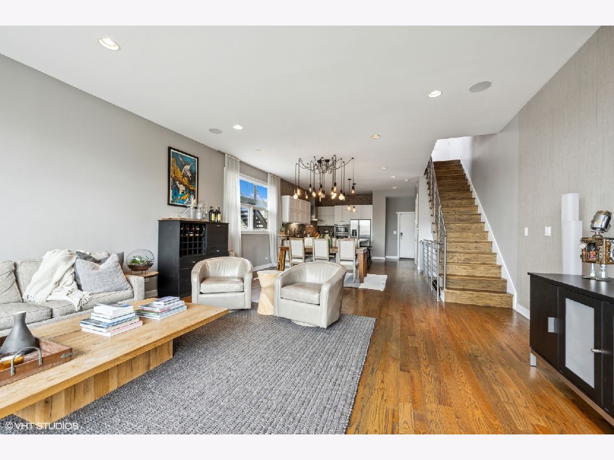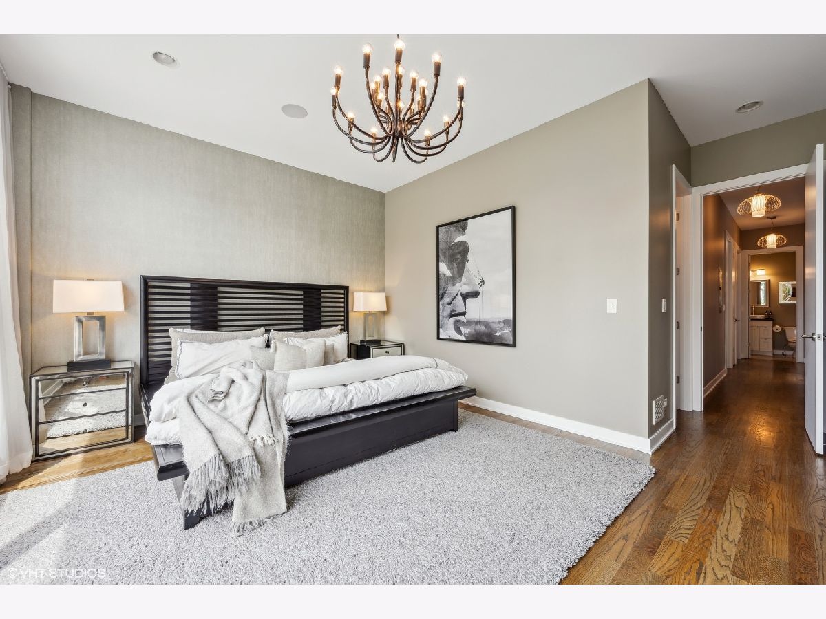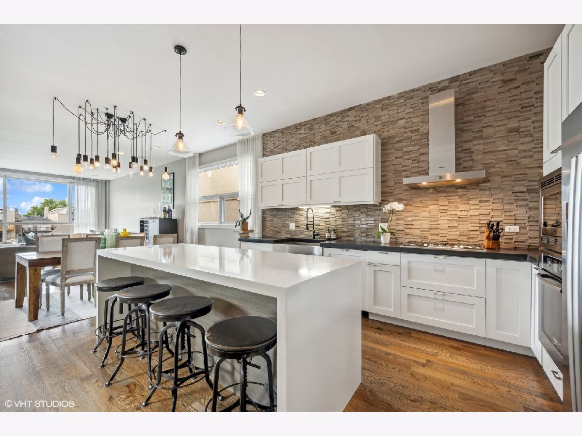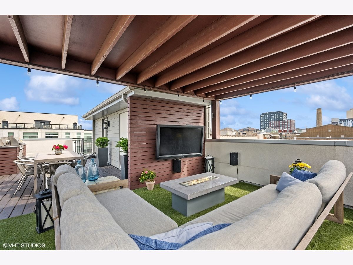 Welcome to Wicker Park's finest PENTHOUSE retreat in a meticulously-maintained modern two-unit building! This duplex-up is fresh on the market with countless high-end upgrades since it was last available. Best of both worlds - on a peaceful, tree-lined street yet only a block from Division & all the amazing action of this vibrant neighborhood! With all three bedrooms on the same level and 2.5 bath, there are professionally designed elements at every turn. It's a highly coveted reverse build - with the top floor featuring a completely open-concept kitchen, living and dining with ultimate SOUTH FACING light in the areas you spend most of your time! Super smart designed and absolutely turn-key starting with hardwood floors running the course of the property paralleled by sprawling 10 foot ceilings. The living room is anchored by massive floor-to-ceiling windows with beautiful mature trees and a Chicago skyline view as your daily backdrop. This room is equipped with in-ceiling speakers, custom curtains, automated shades and a special textured Phillips Jeffries covered TV wall. The kitchen is classy yet cool with an 8 foot waterfall quartz island as the focal! The back counter is dark and leathered providing an appealing contrast while surrounding a big SS sink and new black matte faucet. Plenty of storage in your WHITE cabinets, all SS appliances including vented hood, plus a distinctive stone backsplash that runs the full-height of the wall on both sides. Dining area that can accommodate any-sized table and completes the entertainer's vision. Perfectly positioned powder room on this main level across from the kitchen. Three bedrooms on the lower level of the home for convenience. The owner's suite easily houses your KING bed plus plenty of other furniture. More oversized windows with automated shades, in-ceiling speakers and views of luscious trees. The attached en-suite bath has dual vanities, lots of storage, large steam shower w/ rain shower and handheld plus stone-clad soaking tub for ultimate relaxation. Laundry on the bedroom level with brand new machines! Striking designer lighting fixtures in every room. Control 4 system with auto locks and lighting, including sensors in the bathrooms. Brand new furnace! BEST FOR LAST: travel to your PRIVATE ROOF DECK through interior access to spend three seasons on top of the world! This functional space has been professionally built out and features custom pergola, Cedar Slate screening, built in wall speakers, TV, built in high-end grill, lighting, built in bar, fire pit, top-of-the-line fridge, ice maker, kegerator, sink and more! The views will make you fall in love with the city all over again! The expansive skyline shines bright and is even better in person. Large enough to entertain your crew but wildly cozy to work-from-home solo or enjoy your favorite beverage. Building has been cared for with plenty of exterior maintenance in the front and back recently done, including fence painting, fully sealed, window washing, freshly painted stairs and newly stained decks. Garage parking included with storage shelves that will stay! Low assessments make this a no brainer. Investor and pet friendly! One block from the BEST restaurants, shopping, culture, coffee shops, pubs, bakeries, Target, sushi, parks, transit and more!