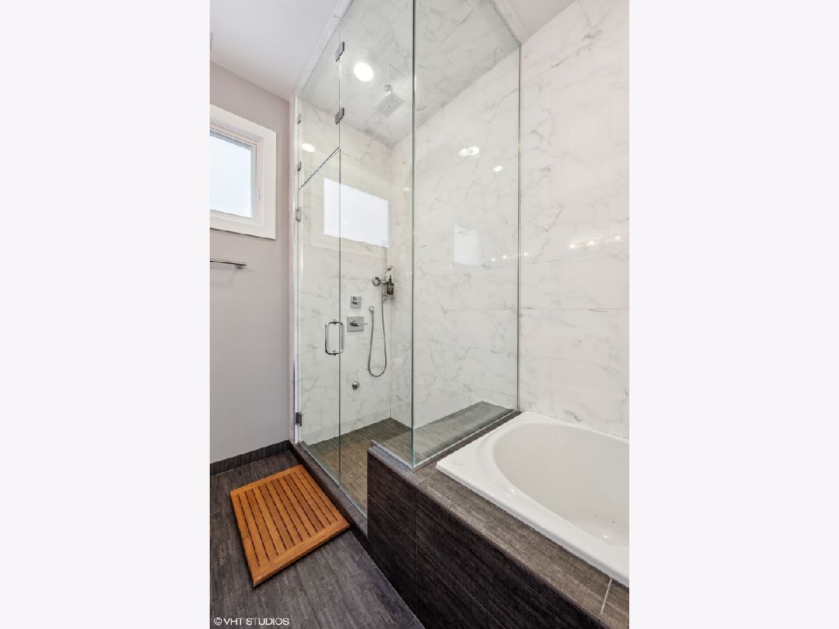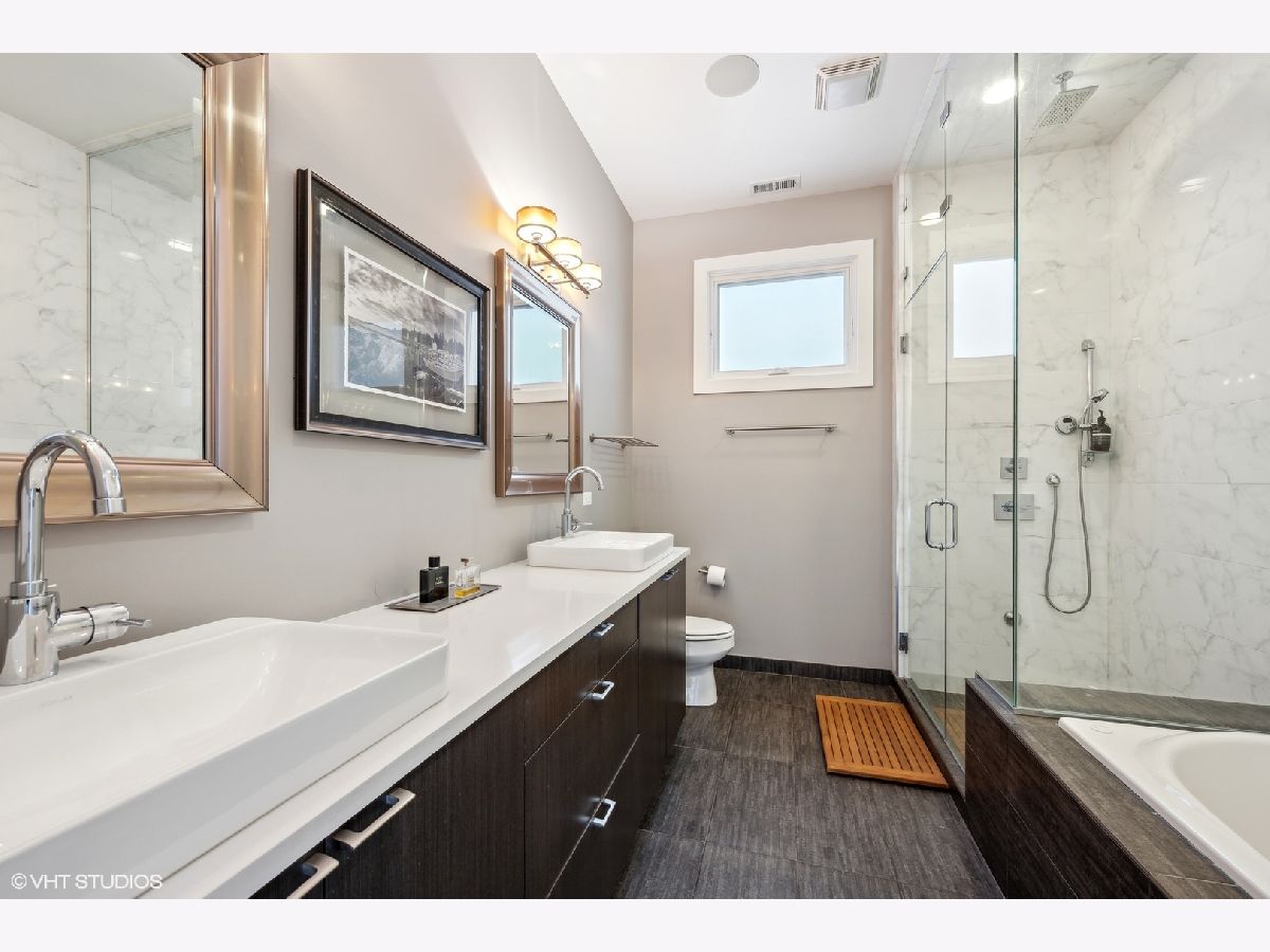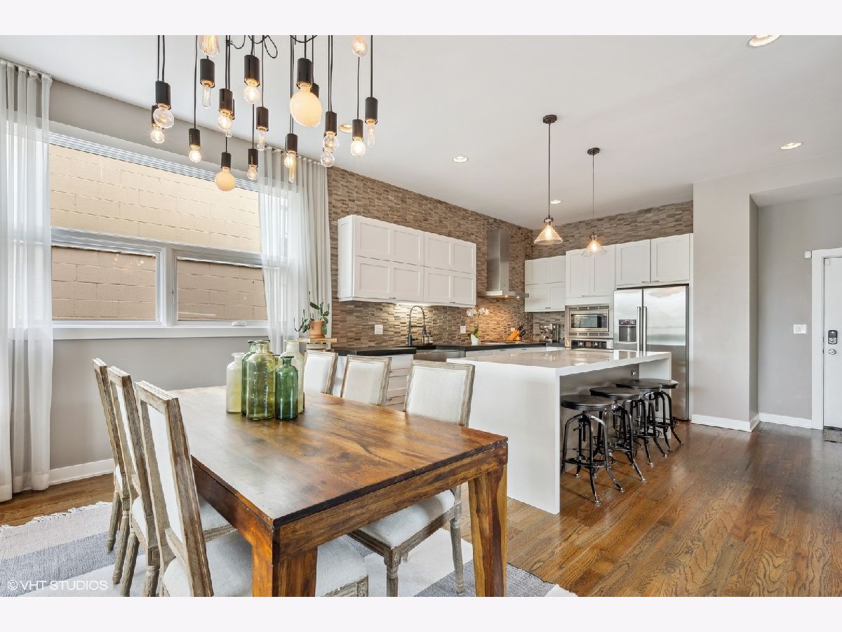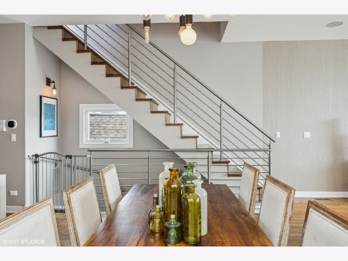 Welcome to Wicker Park's finest PENTHOUSE retreat in a meticulously-maintained modern two-unit building! This duplex-up is fresh on the market with countless high-end upgrades since it was last available. Best of both worlds - on a peaceful, tree-lined street yet only a block from Division & all the amazing action of this vibrant neighborhood! With all three bedrooms on the same level and 2.5 bath, there are professionally designed elements at every turn. It's a highly coveted reverse build - with the top floor featuring a completely open-concept kitchen, living and dining with ultimate SOUTH FACING light in the areas you spend most of your time! Super smart designed and absolutely turn-key starting with hardwood floors running the course of the property paralleled by sprawling 10 foot ceilings. The living room is anchored by massive floor-to-ceiling windows with beautiful mature trees and a Chicago skyline view as your daily backdrop. This room is equipped with in-ceiling speakers, custom curtains, automated shades and a special textured Phillips Jeffries covered TV wall. The kitchen is classy yet cool with an 8 foot waterfall quartz island as the focal! The back counter is dark and leathered providing an appealing contrast while surrounding a big SS sink and new black matte faucet. Plenty of storage in your WHITE cabinets, all SS appliances including vented hood, plus a distinctive stone backsplash that runs the full-height of the wall on both sides. Dining area that can accommodate any-sized table and completes the entertainer's vision. Perfectly positioned powder room on this main level across from the kitchen. Three bedrooms on the lower level of the home for convenience. The owner's suite easily houses your KING bed plus plenty of other furniture. More oversized windows with automated shades, in-ceiling speakers and views of luscious trees. The attached en-suite bath has dual vanities, lots of storage, large steam shower w/ rain shower and handheld plus stone-clad soaking tub for ultimate relaxation. Laundry on the bedroom level with brand new machines! Striking designer lighting fixtures in every room. Control 4 system with auto locks and lighting, including sensors in the bathrooms. Brand new furnace! BEST FOR LAST: travel to your PRIVATE ROOF DECK through interior access to spend three seasons on top of the world! This functional space has been professionally built out and features custom pergola, Cedar Slate screening, built in wall speakers, TV, built in high-end grill, lighting, built in bar, fire pit, top-of-the-line fridge, ice maker, kegerator, sink and more! The views will make you fall in love with the city all over again! The expansive skyline shines bright and is even better in person. Large enough to entertain your crew but wildly cozy to work-from-home solo or enjoy your favorite beverage. Building has been cared for with plenty of exterior maintenance in the front and back recently done, including fence painting, fully sealed, window washing, freshly painted stairs and newly stained decks. Garage parking included with storage shelves that will stay! Low assessments make this a no brainer. Investor and pet friendly! One block from the BEST restaurants, shopping, culture, coffee shops, pubs, bakeries, Target, sushi, parks, transit and more!