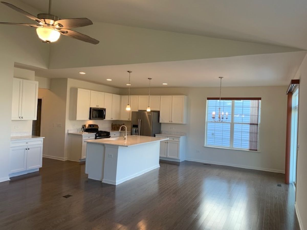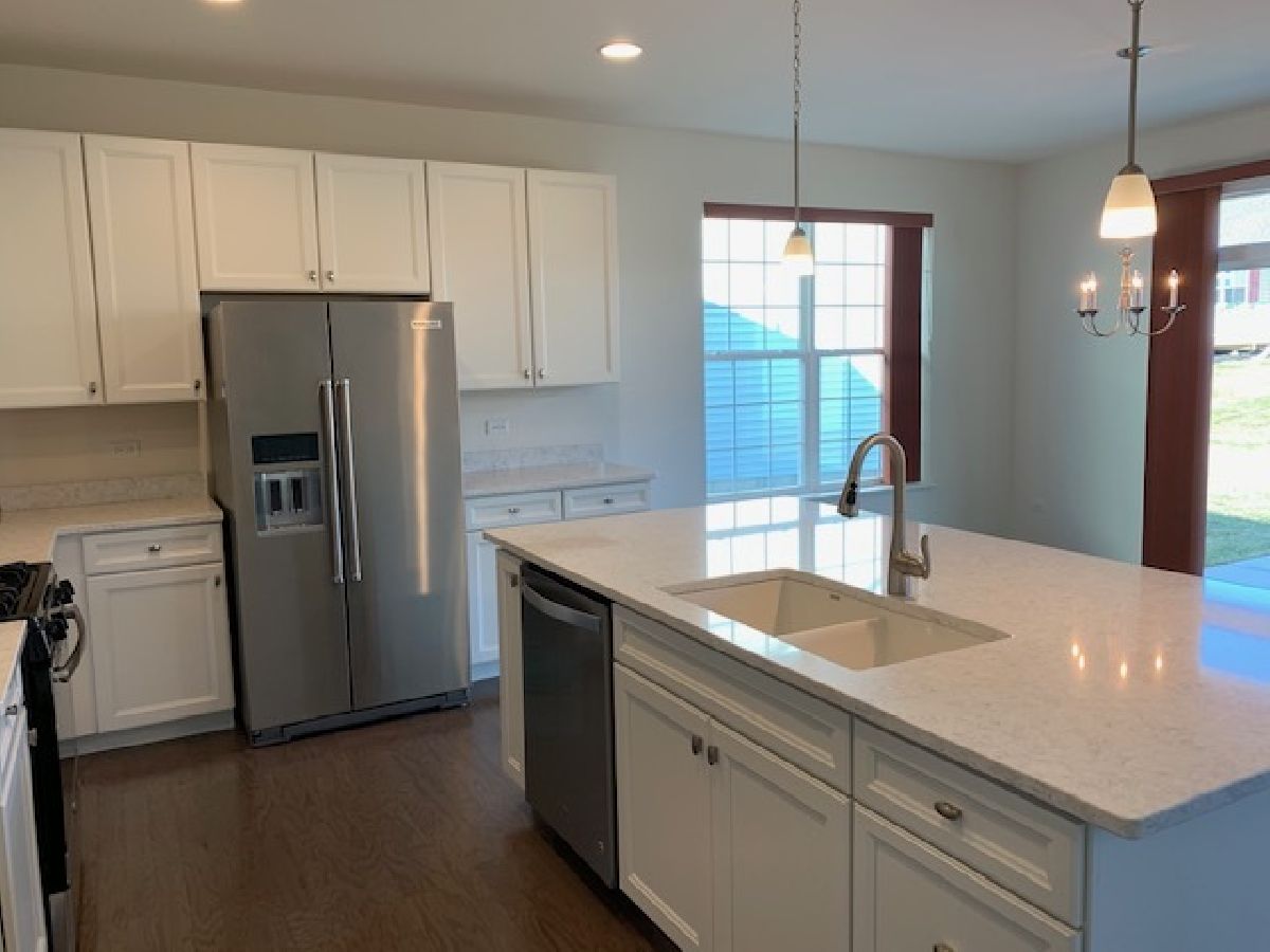 1792 Sq Feet! 3BR, 2 Bath! Compare size and upgrades, this is a SUPERB VALUE! AND it's Available Now! This beautiful home is ready to go! Largest lot in the neighborhood, huge corner lot with extra space between houses! (survey & neighborhood plat in Additional info) This beautiful home has been thoroughly upgraded with a $6,000 inground sprinkler system. Sellers purchased a new SS fridge, stove and washer & Dryer, added top of the line Anderson storm door, installed 2 custom master bath medicine cabinets and one in the hall bath, finished and painted the garage interior and had a contractor add ample sturdy storage shelving! Custom blinds in every room, additional 2nd shelf in every closet and much more! 42" white kitchen cabinets with soft close drawers, Quartz kitchen countertops, humidifier, upgraded exterior brick, deluxe master shower with seat, grab bars, ledge and glass doors. Vaulted ceiling in family room, garage door opener, canned lighting, pendant fixtures in kitchen, 35" high vanity in both master and hall baths. Plus, the garage has a 4' extension upgrade! This active community has a new club house, gym, bocci, pickle ball courts, a park and a 1/4 mile walking path. Seller hates to leave the super nice neighbors. This home is better than new and priced $43K under seller's costs! 55+ Community Available Now!