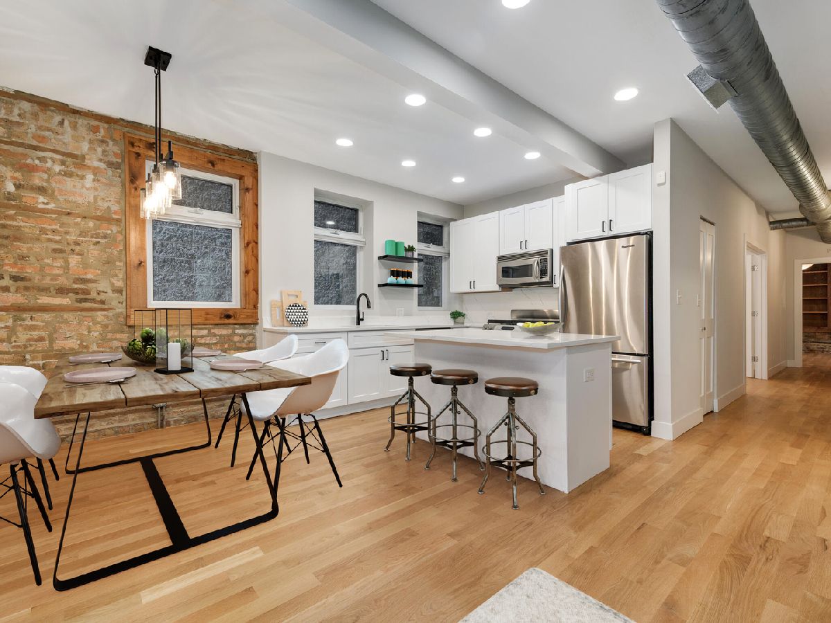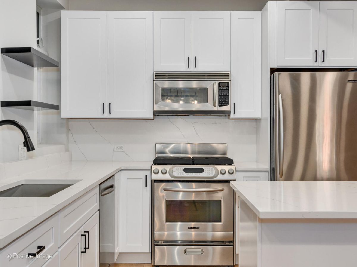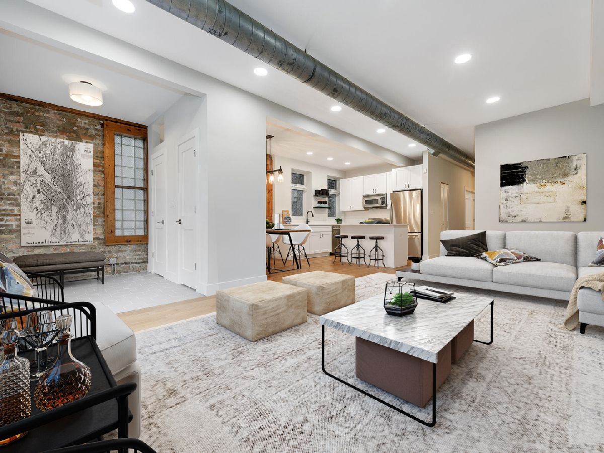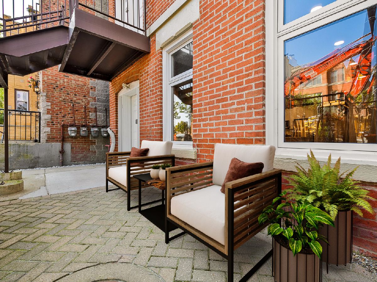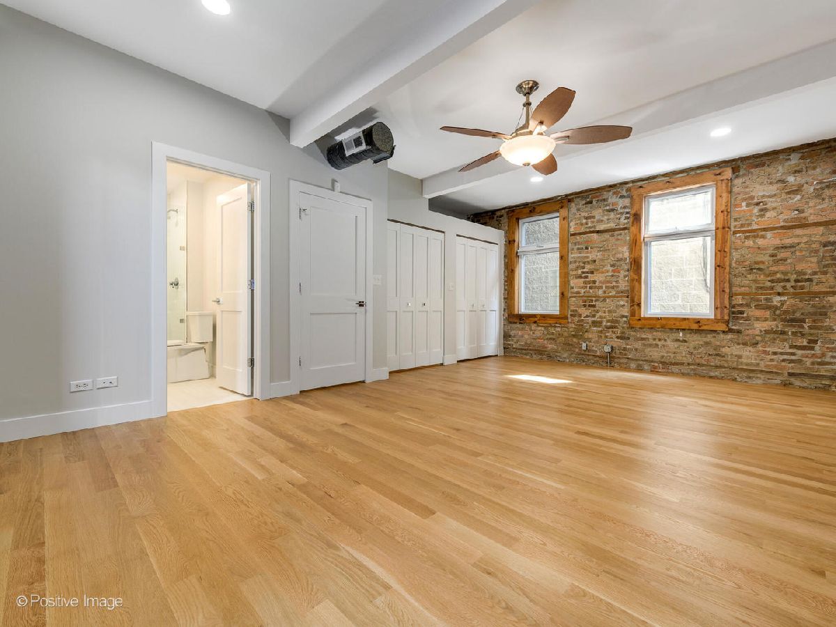 Welcome to your fully renovated, designer finished 1400SF Bucktown home with private front patio & assigned parking. This extra wide, open floor plan features new 3 1/4 hardwood floors throughout, recessed lighting, 10' ceilings, exposed brick and custom closets galore. Brand new chef's kitchen features gorgeous 42in white cabinets, quartz counters/backsplash with island, matte black hardware & plumbing, undermount sink and stainless-steel appliances. Kitchen overlooks separate dining area and oversized living room that is flooded with natural light, perfect for entertaining! Primary bedroom spans the entire width of the building with endless custom closet space and spa-like en-suite bath: grey vanity, Kohler toilet, chrome Delta plumbing fixtures and custom tiled walk-in shower. Secondary bed is large enough for a king bed with gorgeous 2-panel doors and custom closets. Secondary bath features new, oversized tub with subway surround, white vanity with matte black Delta fixtures & Kohler toilet. Tiled entry way to serve as a mudroom with 2 closets, separate walk-in laundry room with room for storage and 1 exterior parking space included. No detail was spared in this gorgeous modern loft-like rehab. FANTASTIC LOCATION with easy access to 90/94 Expressways, steps to the Damen Blue Line stop, Clybourn Metra Station, & CTA buses. Amazing parks (Holstein Park, the 606, Wicker Park) grocery stores and all of the shopping/dining Bucktown and Wicker Park have to offer!