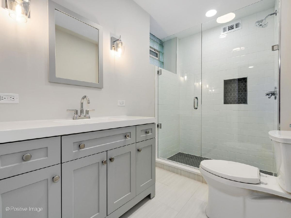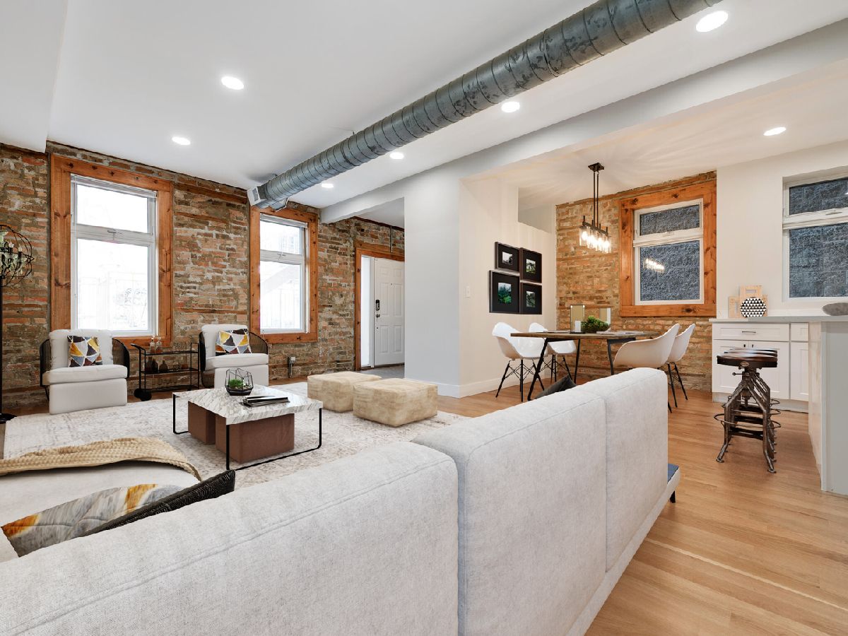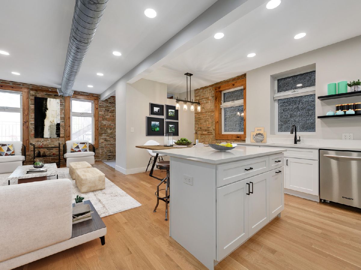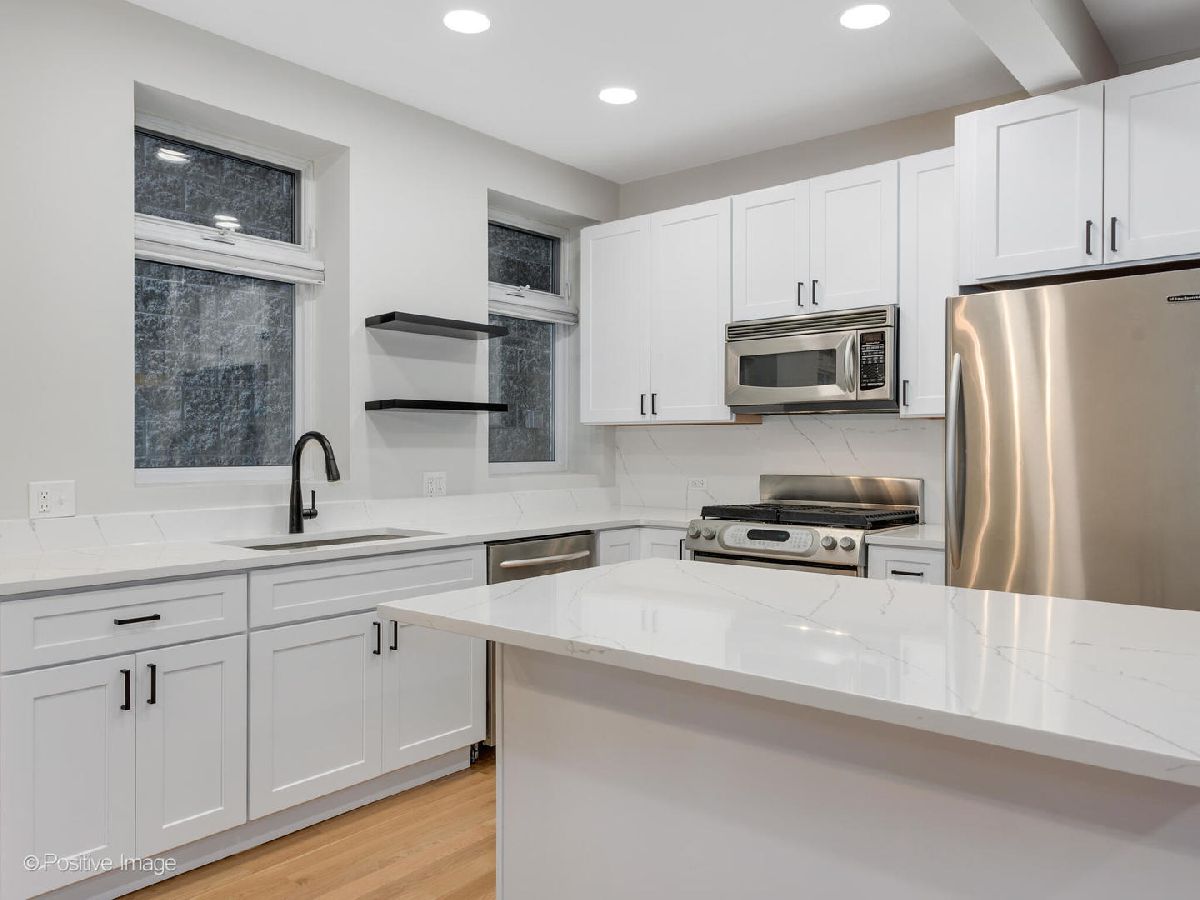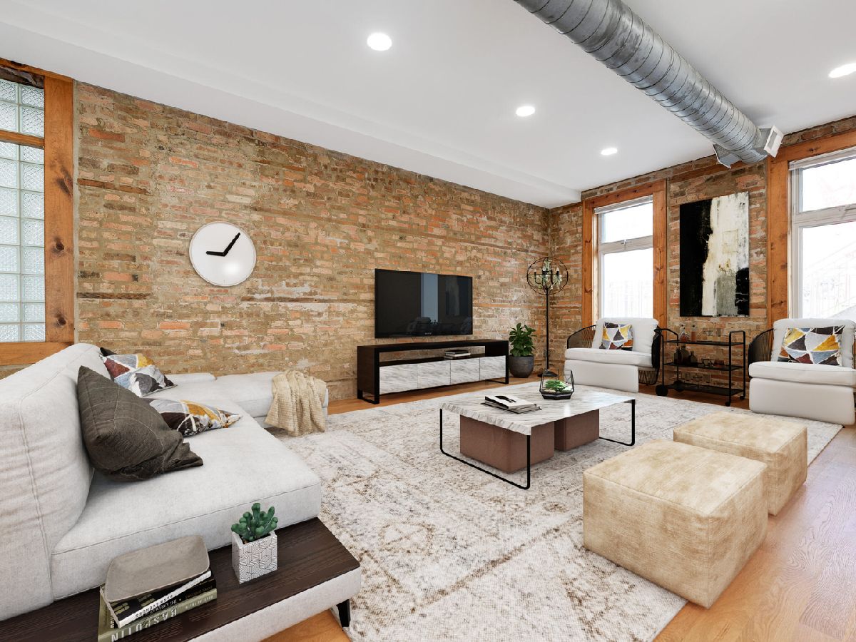 Welcome to your fully renovated, designer finished 1400SF Bucktown home with private front patio & assigned parking. This extra wide, open floor plan features new 3 1/4 hardwood floors throughout, recessed lighting, 10' ceilings, exposed brick and custom closets galore. Brand new chef's kitchen features gorgeous 42in white cabinets, quartz counters/backsplash with island, matte black hardware & plumbing, undermount sink and stainless-steel appliances. Kitchen overlooks separate dining area and oversized living room that is flooded with natural light, perfect for entertaining! Primary bedroom spans the entire width of the building with endless custom closet space and spa-like en-suite bath: grey vanity, Kohler toilet, chrome Delta plumbing fixtures and custom tiled walk-in shower. Secondary bed is large enough for a king bed with gorgeous 2-panel doors and custom closets. Secondary bath features new, oversized tub with subway surround, white vanity with matte black Delta fixtures & Kohler toilet. Tiled entry way to serve as a mudroom with 2 closets, separate walk-in laundry room with room for storage and 1 exterior parking space included. No detail was spared in this gorgeous modern loft-like rehab. FANTASTIC LOCATION with easy access to 90/94 Expressways, steps to the Damen Blue Line stop, Clybourn Metra Station, & CTA buses. Amazing parks (Holstein Park, the 606, Wicker Park) grocery stores and all of the shopping/dining Bucktown and Wicker Park have to offer!