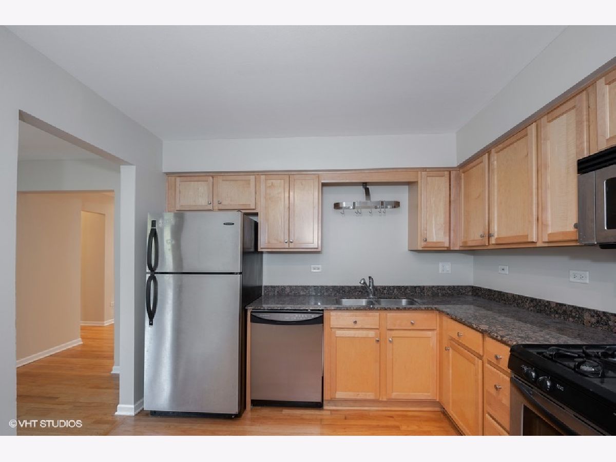 Spacious 2 bedroom, 2 bath updated Rogers Park condo in secure courtyard building. Generous living room, and adjoining separate dining room, plenty of natural light, queen/king sized bedrooms, one with en-suite bath. Modern kitchen features maple cabinets, granite countertops, stainless steel appliances. In unit washer/dryer, hardwood floors throughout, parking spot (#P14) and additional storage complete the package. Low taxes and assessments (which include heat). Investor and pet friendly. Steps to public transport, Touhy & Pottawattomie Parks, and a huge variety of restaurants, shops and services on Clark Street.