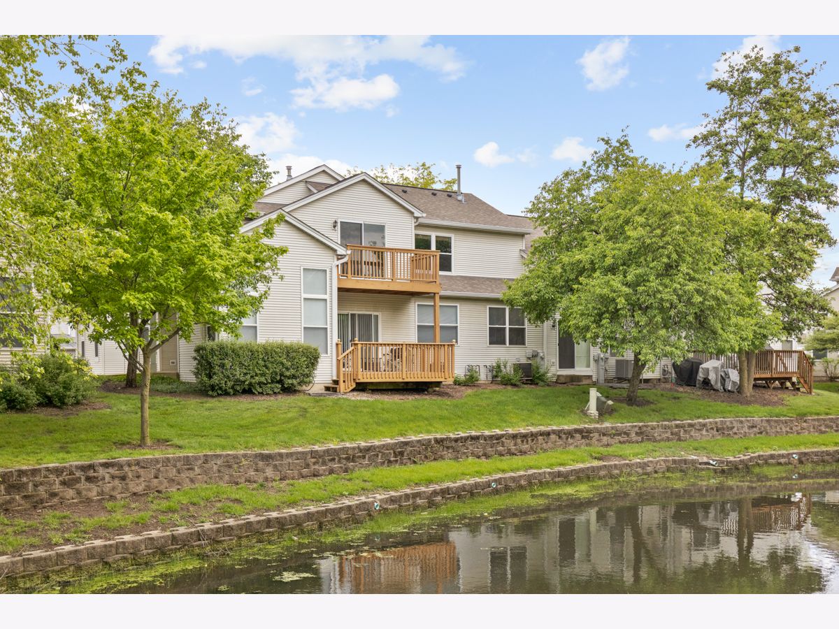 Check out this townhouse in the Woodland Lakes neighborhood - it's a second-floor RANCH townhome with a private entrance. It's got a great open layout vibe, especially with the vaulted ceiling in the living room. Natural light streams in through the sliding door, leading to your own deck with pond views. The kitchen has a good amount of cabinet and counter space, plus a cozy table area with a bay window for those morning coffee moments. The primary bedroom comes with a big walk-in closet and a private bath. This unit has an attached 2-car garage, and your guests won't have to hunt for a spot with guest parking nearby. Great North Aurora location - close to I-88, Metra, shops, the Fox River, bike trails, and more.