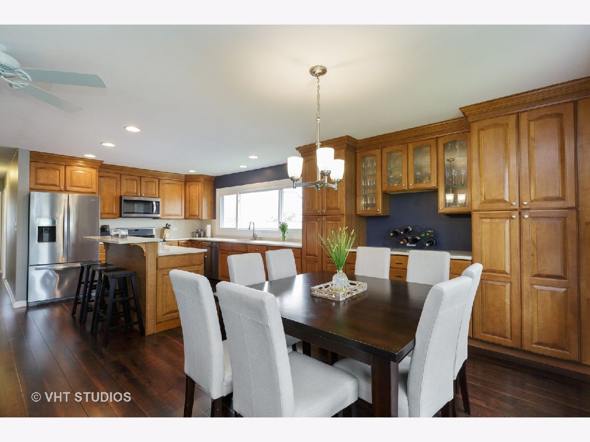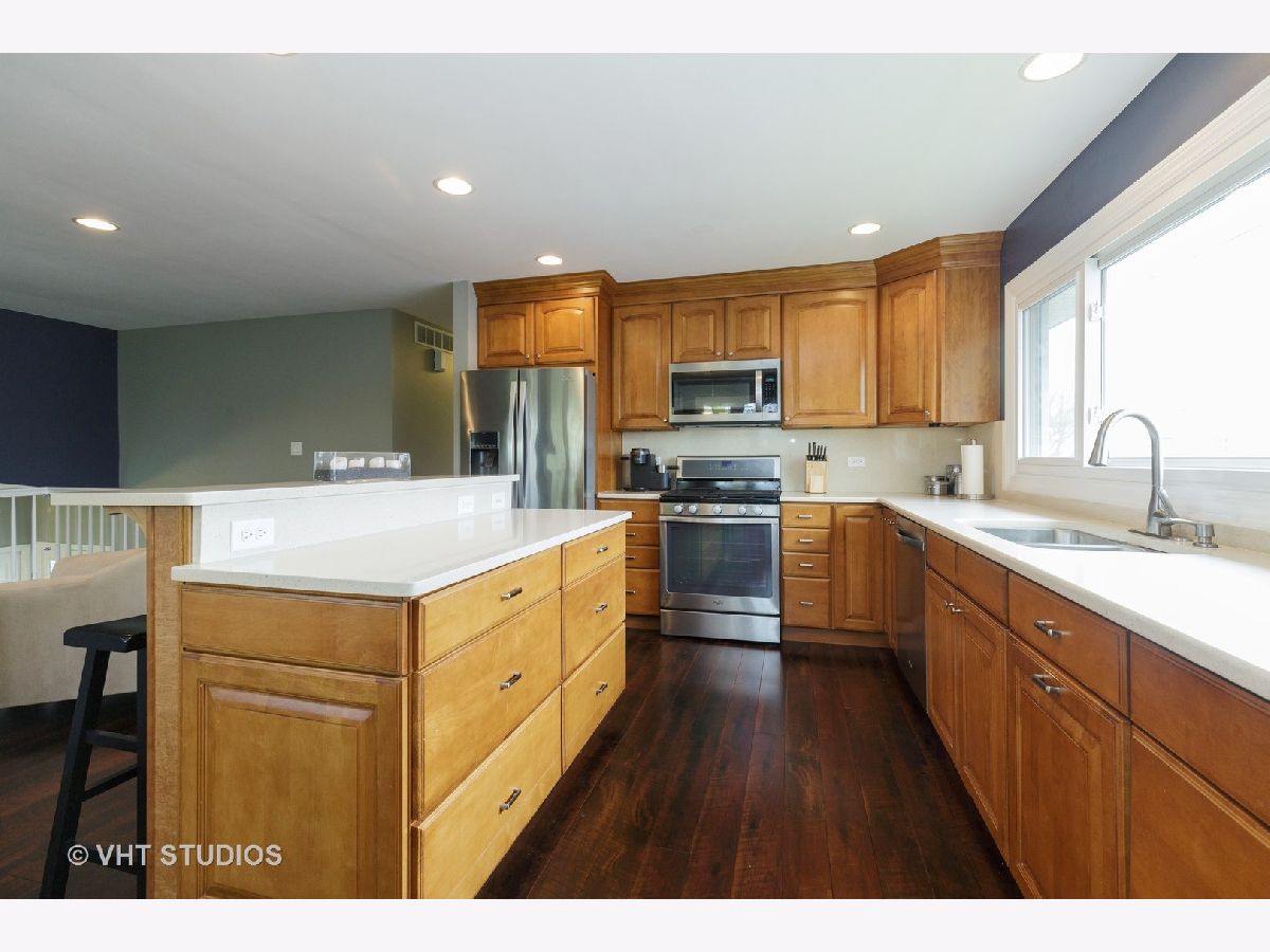 So many upgrades and updates, you will want to put this gorgeous home at the top of your list! Stunning 4 bedroom, 3 full bath home in sought-after High Point subdivision of Hoffman Estates! Walk into a spacious foyer with lovely and newer hardwood flooring! The vaulted ceiling adds volume to the space and its big enough to add lockers and benches for taking off dirty shoes as you come in from the garage! The large coat closet is ready for your coats or your guests coats! **WALK UPSTAIRS** Those same lovely hardwood floors extend into the open space that is the Living Room/Eating/Area and Kitchen...just imagine the entertaining possibilities! The focal point of the Living Room is the stacked stone fireplace....it's a gas log fireplace controlled with a switch! Spacious and updated kitchen with TONS upon TONS of maple cabinets and gorgeous Quartz countertops! There is plenty of space for a kitchen table and the island adds seating space! The stainless appliances are newer and the hardwood floors finish off the space! Head down the hall to the upstairs bedrooms! The Master Bedroom includes a spacious closet and a private Master Bath that was remodeled in 2014 to include contemporary features! There are 2 more spacious bedrooms and another full bath that was remodeled in 2017! **DOWNSTAIRS** Next, go downstairs to the finished walkout basement! The Rec Room as the base of the stairs is a large space with so many possibilities! The current owners have part of it set up as a formal Dining Room, but the whole space could make a spectacular Family Room! Head down the hall and don't miss the storage room...a rarity in split level homes like these! The Bonus Room in the back has windows that let in the light and would make a great space for the gamers in your house! The 4th Bedroom is currently being used as an office! It's right next to the basement full bath which would make this a great guest room or in-law arrangement! **SYSTEMS** Furnace and air were replaced in 2017 with upgrades the duct work. Water heater was replaced in 2020. Kitchen appliances were replaced in 2014 and washer/dryer were replaced in 2019. **OUTSIDE** But, let's top all this off with an amazing back yard! The yard is fenced and included 2 patios with stair steps in between! It overlooks lovely perennials that are easily maintained! And, the shed only adds to the storage space for this home! All this is completed with lovely curb appeal! COME QUICKLY!