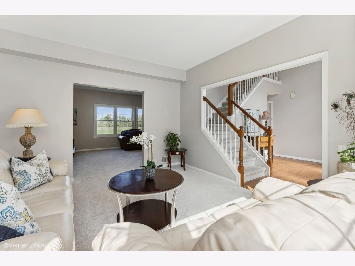 Welcome to this stunning 4 bedrooms, 2.5 bath home with an upgraded brick elevation that backs to serene wetlands and just a short walk to a playground, the Rollins Savanna, and pickleball courts. This residence boasts fresh paint throughout, brand new carpet, and refinished hardwood floors. With a traditional floor plan, you'll enjoy the living room with bay window, spacious family room with amazing views, and formal dining room. Kitchen features a large central island and eating area. Kitchen cabinets recently refinished with new hardware and a gorgeous blue backsplash added. Right off the kitchen, expand your living area with the sunroom! Upstairs, the master bathroom offers dual sinks, a garden tub, a separate shower, and a walk-in closet. 3 more bedrooms all with fresh paint and new carpet! The home includes new windows (2021), water heater (2018), HVAC system (2018) ensuring comfort and efficiency. An unfinished basement is stubbed for a future bathroom, offering endless possibilities. Located in the desirable Grayslake school district, K-12. This home is a perfect blend of style and functionality!
