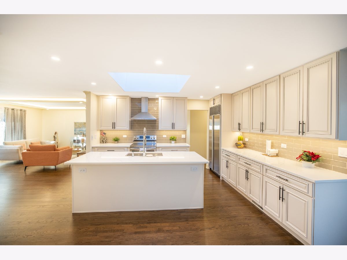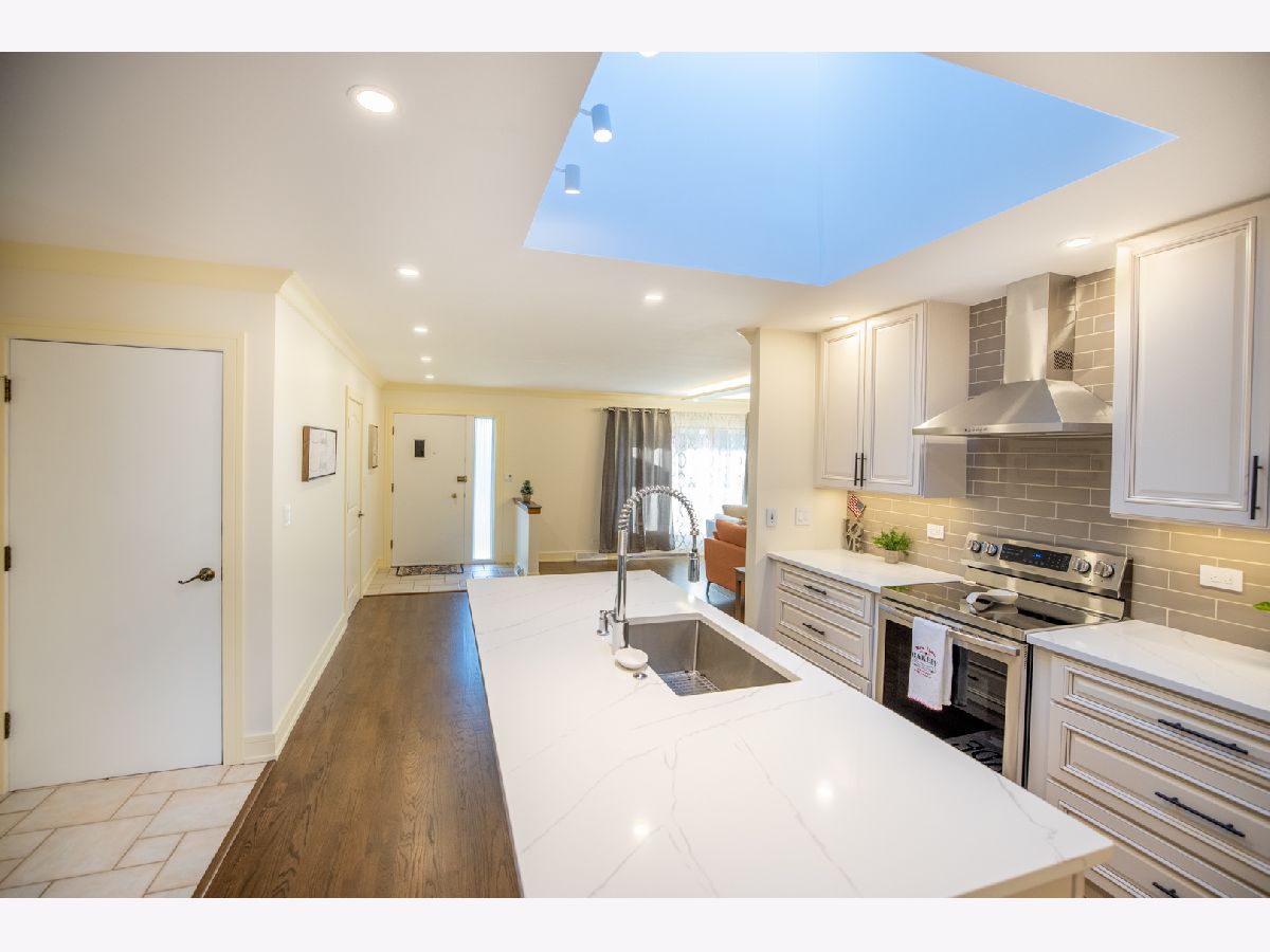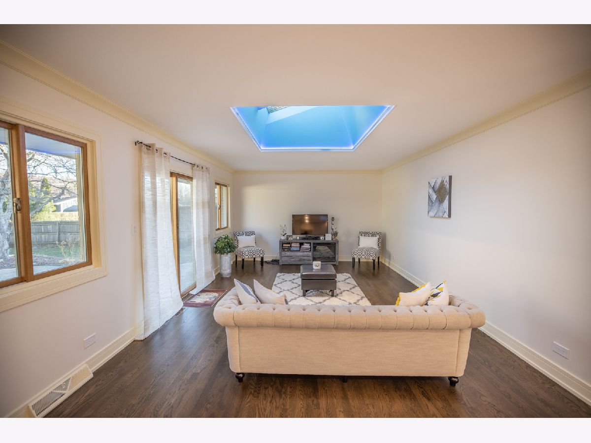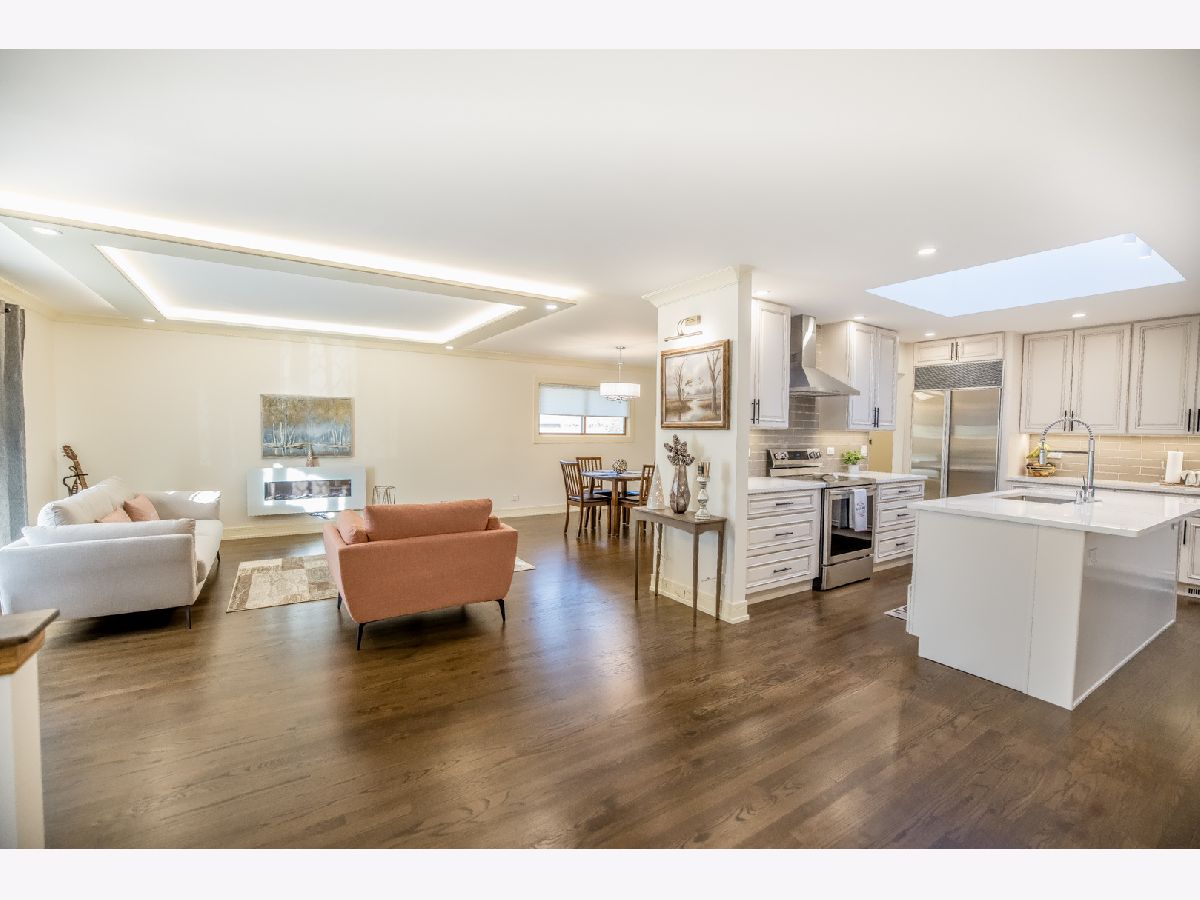 Brand new updated, all brick ranch in a great location. This home is move-in ready and offers 3 bedrooms and 2 bathrooms. One of a kind custom modern design throughout. From the foyer you will be amazed by the open floor concept. Spacious living room with large bay window, cozy electric fireplace and ceiling tray design. Next is the formal dining room with a beautiful chandelier. A breathtaking completely remodeled Chef's kitchen offers gorgeous cabinetry, granite countertops, all stainless steel appliances, pantry closet and huge island with eating bar seating. SUB-ZERO refrigerator, new electric cooktop/oven, brand new dishwasher and microwave. Kitchen is brightened by the skylight and overlooks the family room. Sunny family room with skylight, large windows and slider to the backyard. Nice hallway to the 3 bedrooms which each have lots of closet space. The primary bedroom offers newly renovated luxurious master bath with glass-enclosed walk-in shower. Two spacious additional bedrooms with new custom stained parquet wood floors and can lights. The hallway bathroom has just been remodeled and is gorgeous. New custom stained hardwood floors, new kitchen and bathrooms, new recessed lights, new custom paint and new trim gives the feeling of new construction. Enjoy the concrete patio and large wooden fenced backyard to relax, play and grill. Unfinished basement with enclosed work room and laundry area with washer & dryer. Attached two car garage with access to attic and basement. Generac backup electric power generator for the entire house. Nearby Randhurst Village, Aspens Trail Park, Rob Roy Golf Club, Lake Avenue Woods Forest Preserve, Prospect Heights Metra. Located in beautiful Castle Heights subdivision and close to everything Mount Prospect has to offer: shopping, restaurants, public transportation and highways. Walking distance to park and elementary school. Quiet residential street. You don't want to miss this fantastic ranch. Anyone entering the property is advised to follow the CDC guidelines: wear mask and practice social distancing. Welcome home.