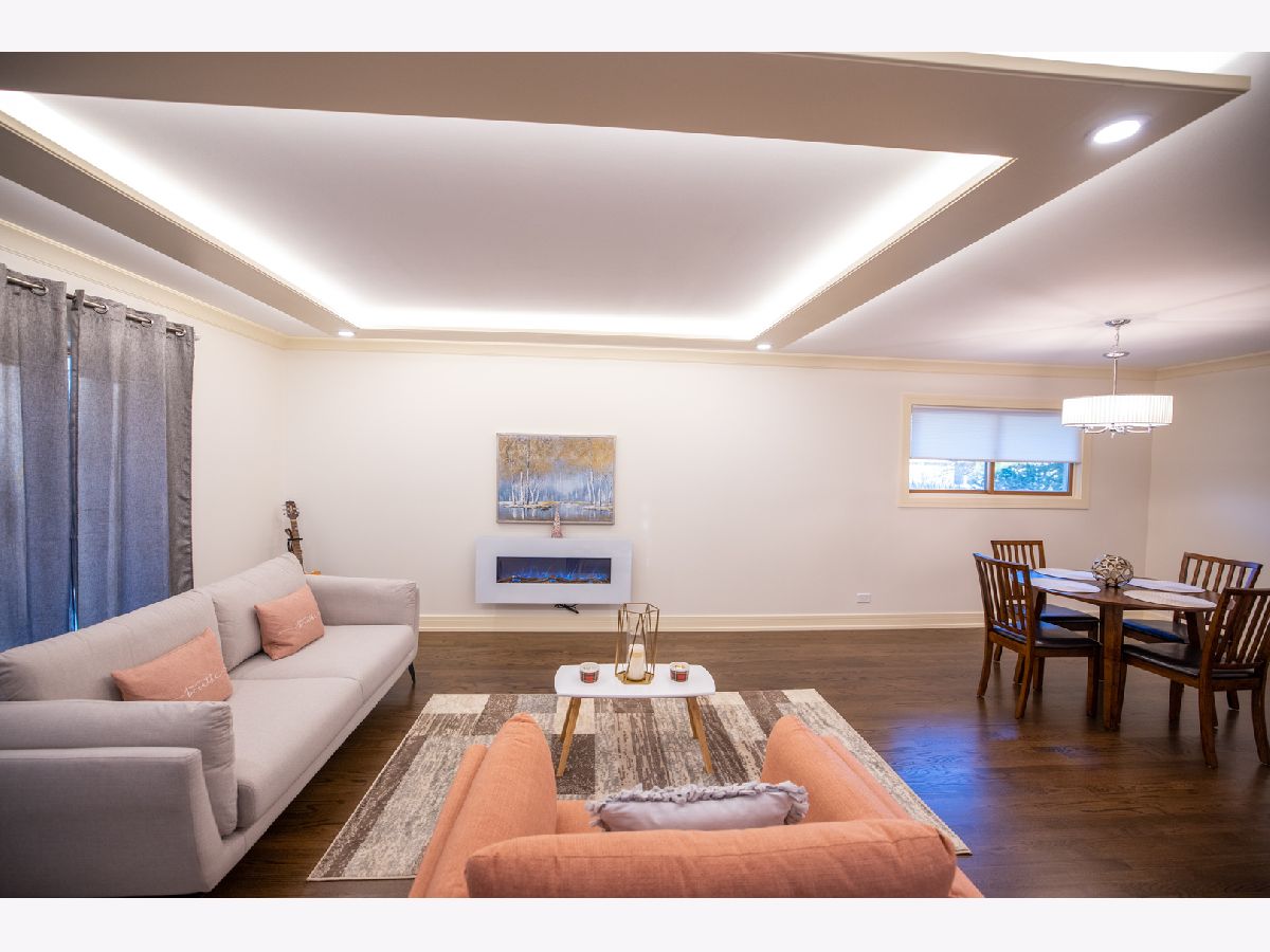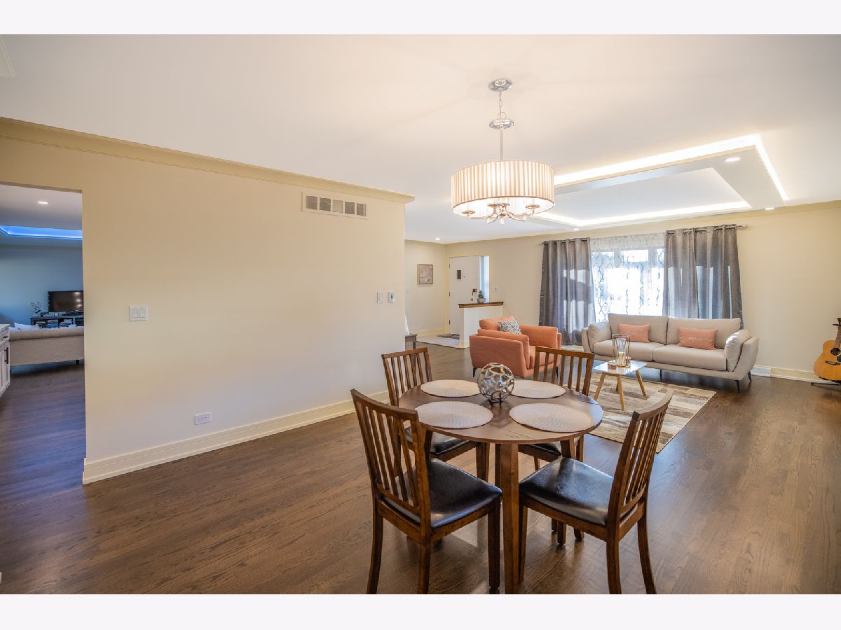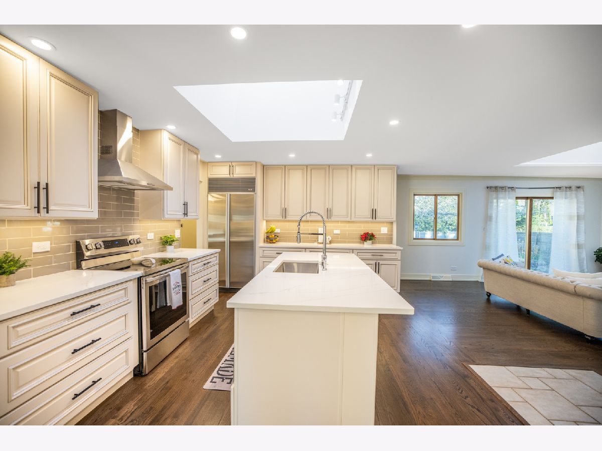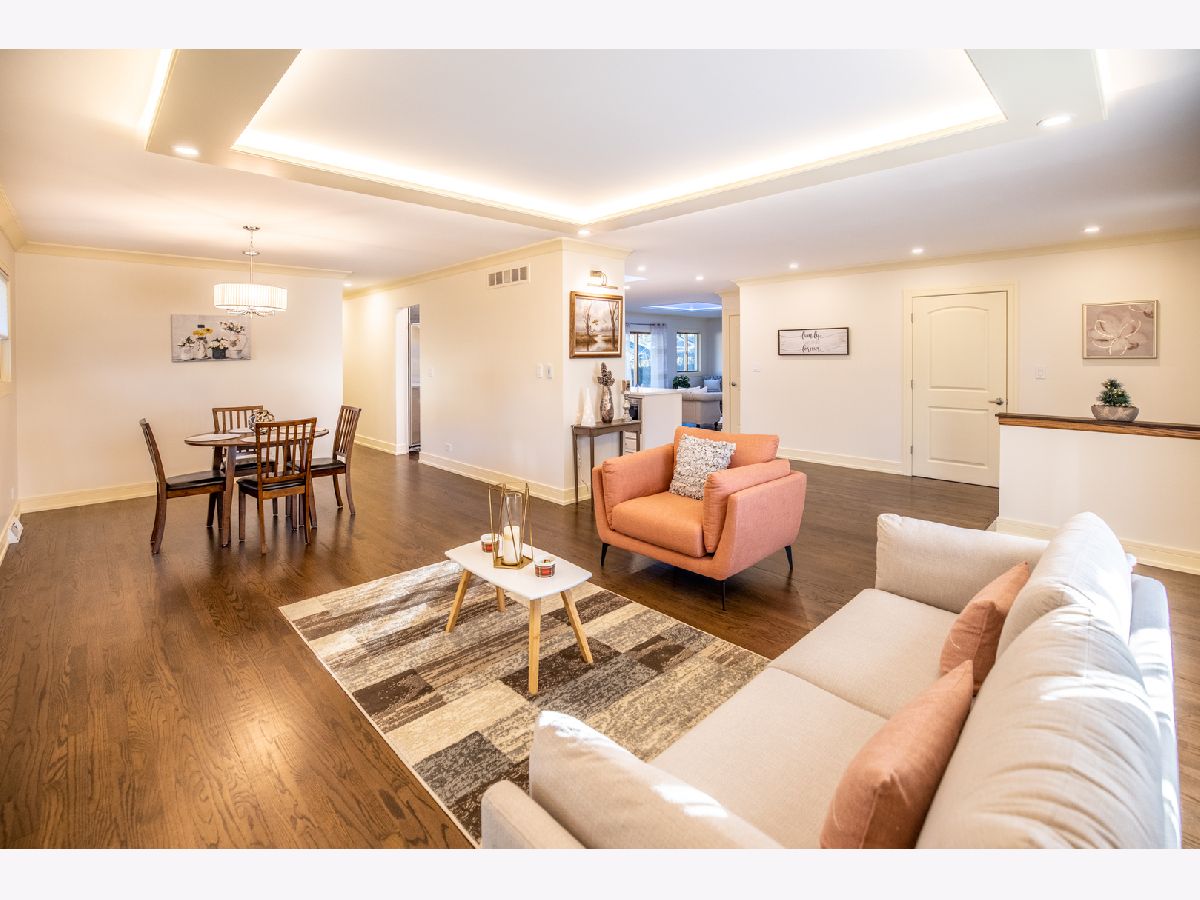 Brand new updated, all brick ranch in a great location. This home is move-in ready and offers 3 bedrooms and 2 bathrooms. One of a kind custom modern design throughout. From the foyer you will be amazed by the open floor concept. Spacious living room with large bay window, cozy electric fireplace and ceiling tray design. Next is the formal dining room with a beautiful chandelier. A breathtaking completely remodeled Chef's kitchen offers gorgeous cabinetry, granite countertops, all stainless steel appliances, pantry closet and huge island with eating bar seating. SUB-ZERO refrigerator, new electric cooktop/oven, brand new dishwasher and microwave. Kitchen is brightened by the skylight and overlooks the family room. Sunny family room with skylight, large windows and slider to the backyard. Nice hallway to the 3 bedrooms which each have lots of closet space. The primary bedroom offers newly renovated luxurious master bath with glass-enclosed walk-in shower. Two spacious additional bedrooms with new custom stained parquet wood floors and can lights. The hallway bathroom has just been remodeled and is gorgeous. New custom stained hardwood floors, new kitchen and bathrooms, new recessed lights, new custom paint and new trim gives the feeling of new construction. Enjoy the concrete patio and large wooden fenced backyard to relax, play and grill. Unfinished basement with enclosed work room and laundry area with washer & dryer. Attached two car garage with access to attic and basement. Generac backup electric power generator for the entire house. Nearby Randhurst Village, Aspens Trail Park, Rob Roy Golf Club, Lake Avenue Woods Forest Preserve, Prospect Heights Metra. Located in beautiful Castle Heights subdivision and close to everything Mount Prospect has to offer: shopping, restaurants, public transportation and highways. Walking distance to park and elementary school. Quiet residential street. You don't want to miss this fantastic ranch. Anyone entering the property is advised to follow the CDC guidelines: wear mask and practice social distancing. Welcome home.
