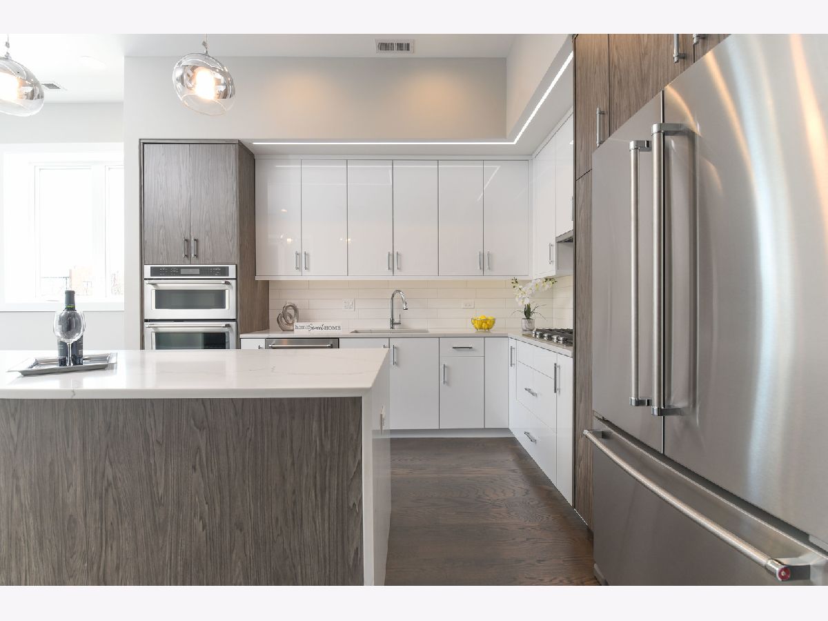 Absolute Top Quality OVERSIZED Luxury Contemporary NEW CONSTRUCTION 3bed/2 1/2 bath PENTHOUSE on Extra LONG lot (177 ft) in Hot Logan Square, just steps to The 606 Trial. Professionally Designed Condo features: Floor to Ceiling Windows, Full Sized Dining Room, Beautiful Fireplace, Custom 2 Tone Kitchen with under cabinet Lighting, extra long Island with Quartz Counter Tops with Waterfall Edge, High- End SS Appliances. Gleaming Hardwood floors throughout. Spectacular Master Suite with Spa Level Bath with Oversized Shower with bench, Heated Floors, Double Vanity and Large Walk-in Closet. High 10.8 FT Ceiling, SOLID 8FT interior Doors, Designer Lighting fixtures, Nest Termostat, Video Intercom, in Unit Laundry Center. THREE Great Outdoor Spaces including: Front Balcony, Rear Deck (13' x 9') and MASSIVE PRIVATE 45ft x 20 ft ft Rooftop Deck with Bonus Penthouse Room and Spectacular City views (finished with porcelain tiles). Secured 1 parking spot included. 1 year Builder Warranty. Excellent location. Walking distance to The 606 Trial, Scofflaw, The Moonlighter and more. Pictures of the actual unit & staged model unit #2. Truly amazing opportunity!