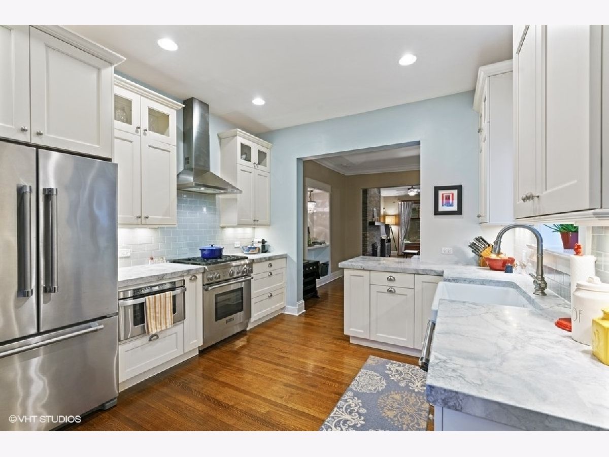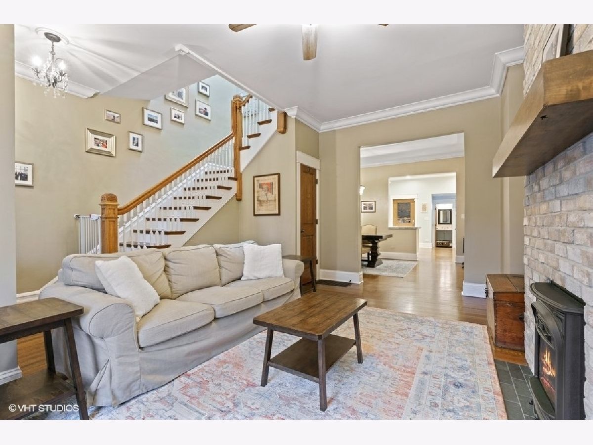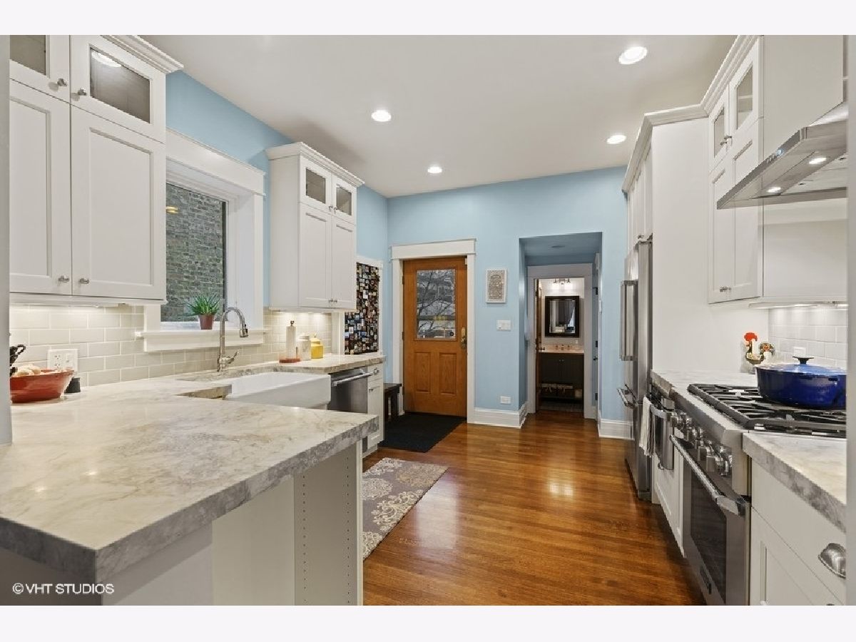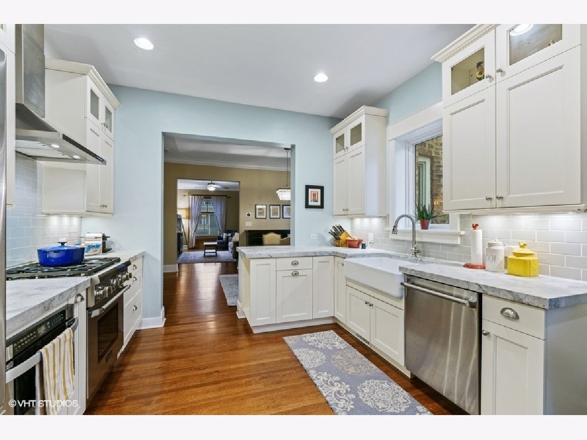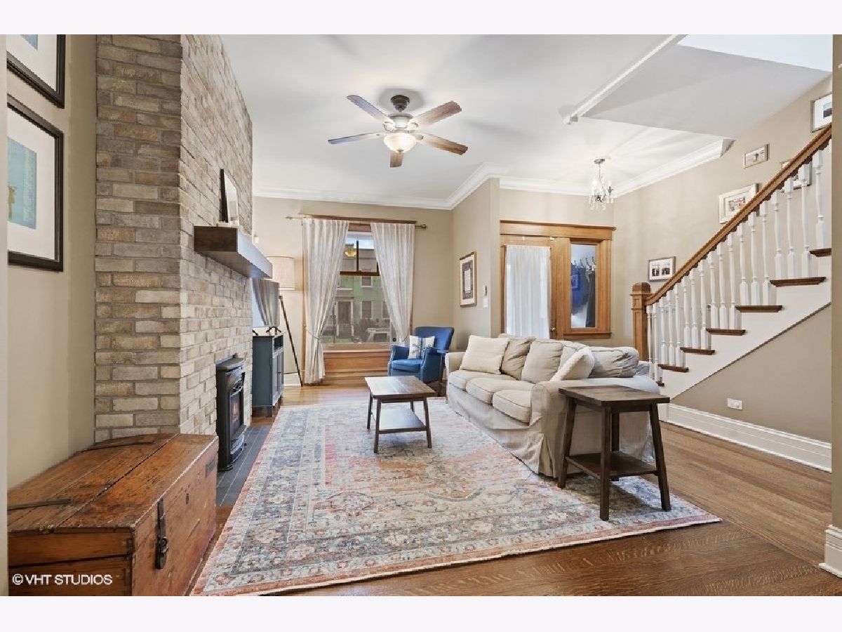 This restored 19th Century rowhome sits on a quiet, tree-lined block in the heart of Roscoe Village! This three-level home with a fenced backyard and garage lives like a single-family home. You'll be blown away by the blend of vintage touches and modern design & amenities. Immediately upon entering, you're greeted by the gleaming original hardwood floors and grand staircase, featuring original hand-carved newel posts and handrails. The warm and inviting living room is flooded with light from the large window and skylight at the top of the stairs and features an exposed brick wall with a new Valor (2018) gas fireplace. The gut-rehabbed first floor includes a completely updated kitchen, powder room and new basement staircase. The gourmet kitchen feat. white custom cabinets w/ Restoration Hardware knobs and pulls, Thermador & Bosch appliances, Kohler farmhouse sink & faucet and extra-thick, natural marble tops. Oversized dining room has enough space for any table and boasts a beautiful built-in. The second-floor features three bedrooms, a newly updated full bath (2020) and two hall closets. The recently finished basement features a large open Rec Room for TV area and kids play area as well as laundry room and extra-large storage space. Gorgeous backyard features newly installed artificial turf and paver patios (2020), and the garage has been re-sided with new doors and windows. All new (2016) Marvin, double pane/argon gas filled windows with wood interior frames for warmth and beauty. Supplemental zoned heating and cooling upstairs with Mitsubishi split systems (2018). Other updates include Pottery Barn lighting, fresh paint in most rooms, new electrical panel, and flood control system for a bone-dry basement. All of this on a gorgeous tree-lined street and just blocks to St Andrew and Hamilton Schools, the Brown line el stop and all the shops and restaurants that Roscoe Village are known for. Move fast! Broker owned.