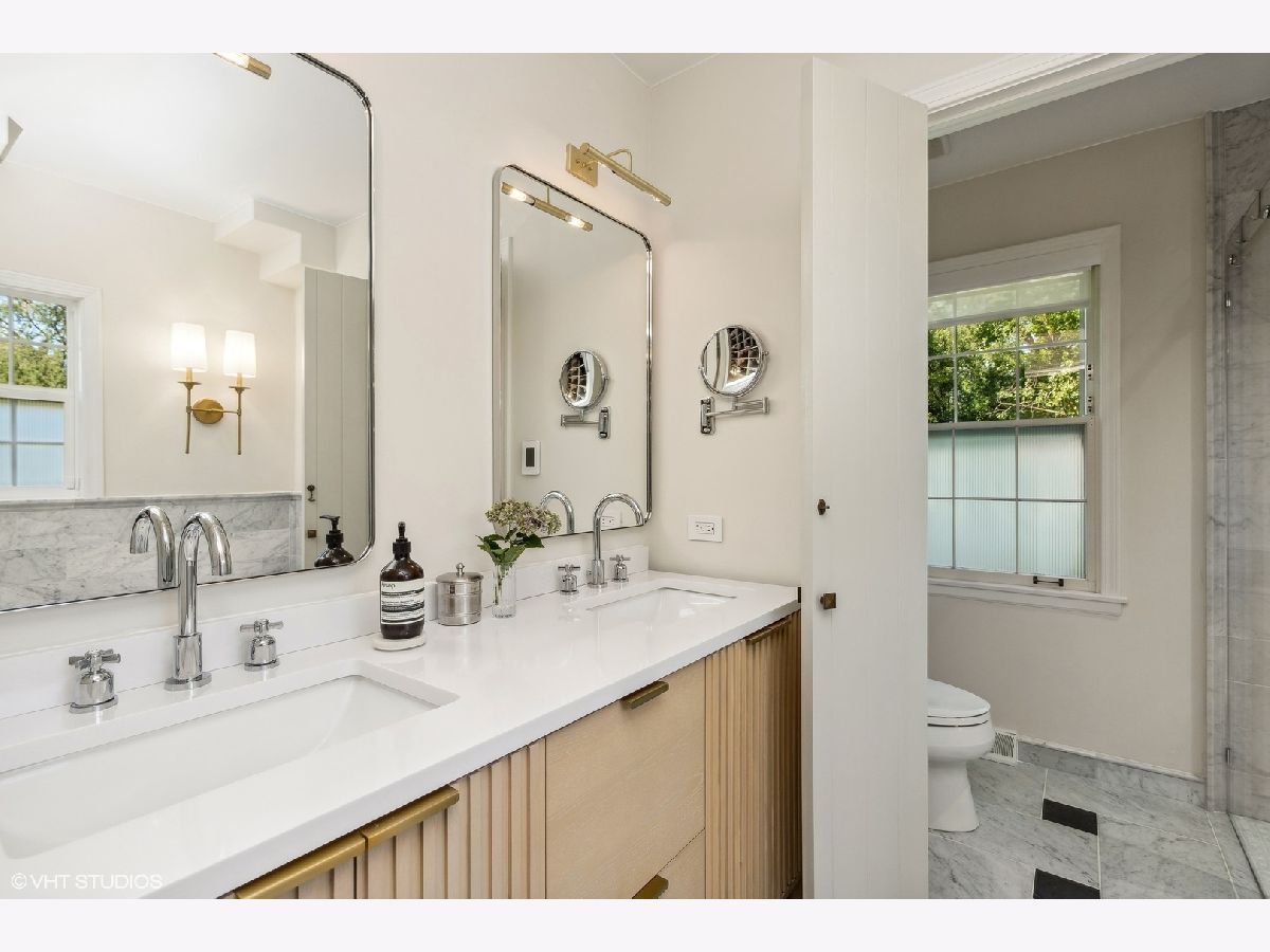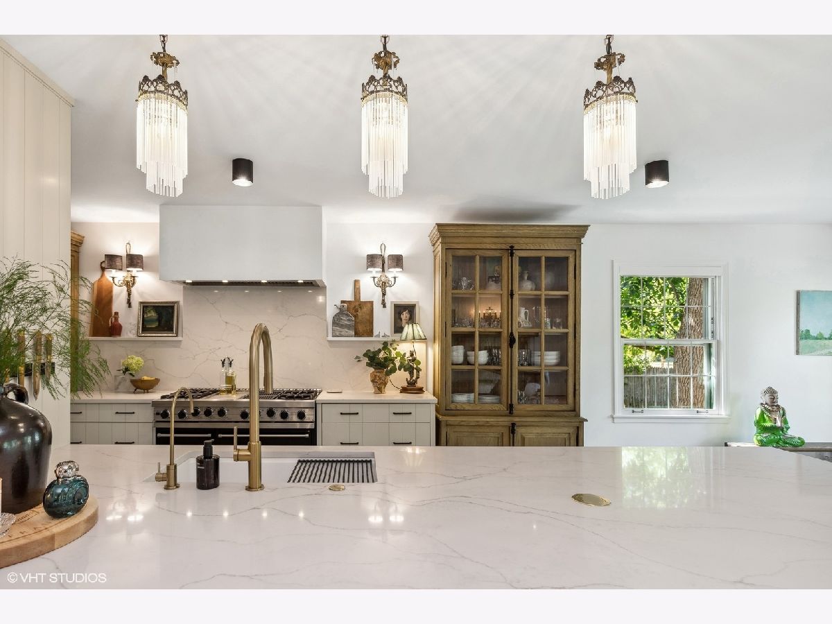 Perfection this incredible only comes along once in a lifetime! This home has been thoughtfully reimagined by the current owners, and each room has been completely transformed to create a harmonious blend of modern luxury and timeless elegance. The setting is idyllic with stunning views from the street of this French cottage style ranch home nestled in the wooded lot. Updated landscaping, limewashed brick exterior, and beautifully painted details greet you as you walk the blue stone pathway towards the front door. As you step inside, you will immediately notice the meticulous attention to detail that has gone into every aspect of this renovation. Living spaces flow together seamlessly creating a warm and inviting atmosphere for both everyday living and entertaining. The interior of the house has been transformed with imported Italian marble, adding an air of sophistication and luxury to every room along with refinished hardwood floors throughout. Upon entering the home, you find yourself in a large foyer with views of the living room, office, and bedroom wing. A stunning home office with wainscoted walls & french doors allows for privacy without completely detaching from the incredible living spaces. The foyer leads to an expansive living room with higher ceilings, views of the fenced in yard, and stone fireplace. Down the stunning marble hall leads to the kitchen, a true chef's dream. It has undergone a complete reconfiguration and gut renovation. It now features top-of-the-line appliances, custom cabinetry, quartz countertops, eat in peninsula, and is open to the family room/dining room with wood burning fireplace. Cooking and hosting dinner parties will be an absolute joy in this culinary masterpiece. New steel doors lead from this open space to the stone patios seamlessly extending the living space outdoors and allowing for easy alfresco dining and relaxation in the beautiful backyard. A renovated mudroom and laundry complete this space, leading to attached 2 car garage with Tesla charger. Entering the bedroom wing partition of this home, the primary suite has also been completely reconfigured with expansive closet built ins, new bathroom with heated floors, double vanity, soaking tub, and separate shower. 3 additional bedrooms with large closets and stunning renovated bathroom complete this space. Even the smallest details have been attended to in this renovation. Each light fixture, electrical outlet, and light switch has been replaced, ensuring a seamless integration of modern technology and design. The entire home has been tastefully painted, providing a fresh canvas for your personal style. Every bathroom in the home has been completely overhauled with modern fixtures, premium materials, and meticulous craftsmanship. You'll find yourself indulging in spa-like experiences in the comfort of your own home. No element has been overlooked, with all interior hardware replaced to match the updated aesthetic of the home. Comprehensive landscaping in both the front and back yards enhances the curb appeal and outdoor living spaces, making this property a true oasis. This home represents the pinnacle of renovation and curated design, with no expense spared in creating a space that is both functional and stunningly beautiful. Don't miss the opportunity to own this once-in-a-lifetime masterpiece!