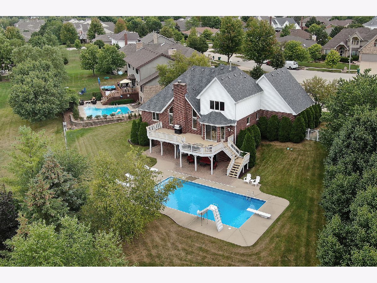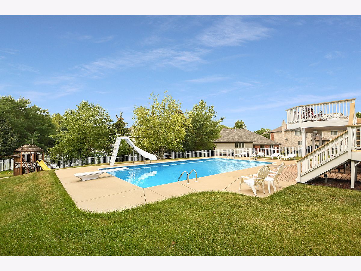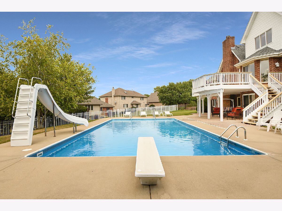 Meticulously maintained 2-story Home in sought after Marley Creek. 4 bedrooms and 2 1/2 baths with the owner's suite conveniently located on the main level. Ignite your culinary passions in the spacious kitchen and breakfast bar which leads to the abundant eating area. Soaring family room with fireplace and overlooking your own backyard oasis including an in-ground pool with diving board and slide, surrounded by concrete and adjacent to covered, paver patio. Still plenty of spacious yard with sprinklers and a deck that spans the entire back of home. Upper level boasts 3 additional grand-sized bedrooms and plenty of closets. Indulge yourself designing the immense walkout basement already equipped with roughed-in plumbing. Roomy finished 3 car garage with shelving. New roof and water heaters. Walk to METRA, shopping, dining (including McDonald's and Starbucks) as well as Marley Creek Park with new basketball court, park, pond, walking paths and large open play area. Close to award winning Orland Park Schools, community amenities including the Grassland's walking paths and Centennial Park and Aquatic Center. Convenient to transportation and expressways.