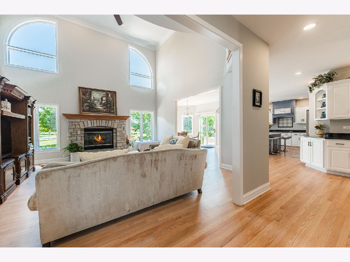 **SOLD BEFORE PROCESSING** Stunning Overstreet-Built Custom Home | Naperville School District 204 - Neuqua Valley HS Located in the desirable Fairways of Augusta subdivision, this exceptional 6-bedroom, 5-bathroom custom home by renowned Overstreet Builders offers timeless craftsmanship, modern updates, and serene pond views-all within the sought-after Neuqua Valley High School attendance area. Set on a prime corner lot with open space and a natural pond behind, this single-owner home welcomes you with soaring ceilings, elegant architectural details, and abundant natural light. The two-story family room features a striking natural stone fireplace, flowing seamlessly into the formal dining room with a statement chandelier in the Foyer and into the open-concept kitchen. The kitchen boasts freshly refinished hardwood floors, quartzite countertops, custom cabinetry, stainless steel appliances, and newly updated KitchenAid refrigerator and dishwasher (2024). A sunroom and breakfast area overlook the professionally landscaped backyard with a low-maintenance koi pond-your private outdoor oasis. The main level includes a versatile bedroom or office with an adjacent full bath-perfect for guests or multi-generational living. Upstairs, you'll find four spacious bedrooms with vaulted ceilings, ceiling fans, and walk-in closets. The luxurious master suite offers extended sitting space with tranquil views, a spa-like bath with a steam shower, soaking tub, dual vanities, a separate toilet room, and a large organized walk-in closet. The junior suite has its own full bath, while the remaining 2 bedrooms share a Jack-and-Jill bath. An additional and convenient second-floor laundry adds everyday ease. The newly finished basement (2024) extends your living space with a large recreation area, fireplace, bedroom, full bath, fitness space, and plenty of storage. Recent updates include fresh paint throughout (2024), new carpet (2024), refinished wood floors (2024), and a whole-home humidifier (2024). Additional features include a 3-car garage, high ceilings throughout, and easy access to I-55, downtown Naperville, downtown Plainfield, and several local golf courses. This move-in-ready home combines elegance, functionality, and unbeatable location-an exceptional find in Naperville District 204. Square Footage Comments: 3678 sqft first and second floor with an additional 1400 sqft of approx finished basement space providing over of 5000 sqft of living space.