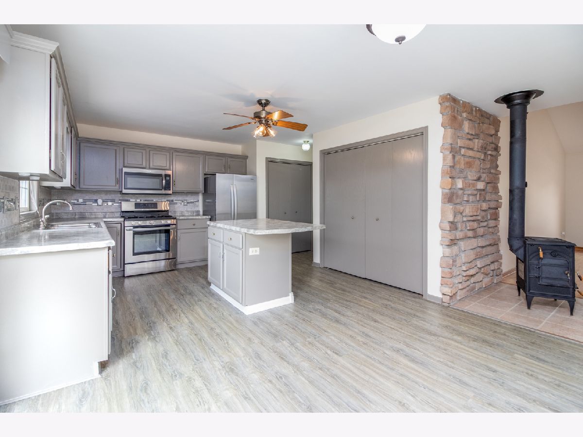 First Home or Downsizing? This Home is a Must See! Large Corner Lot w/Loads of Perennials! Open Floor Plan Welcomes You! Living Room Boasts Cathedral Ceiling, Hardwood Floors, & Wood Burning Stove Accented w/ Stone Wall! Newly Updated Kitchen will Make the Chef in Your Family Smile! Note: Island, High-Resolution Counter-tops, Glass Tile Back-splash, Pantry Closet, Full Package of Stainless Steel Appliances & Updated Luxury Vinyl Plank Flooring! Master Bedroom w/ Tray Ceiling, Walk-In Closet & Luxury, Vinyl, Plank Flooring & Master Bath w/ Ceramic Tile. 2nd Bedroom & Full, Hall Bath Complete the Main Level! Finished Basement Offers Large Area, For Expanded Living, Featuring: 3rd Bedroom, 3rd Full Bath & Kitchenette! Water Softener Has Always Been By-passed, never used. 2 Car Garage has been Modified to Include a Large "Work Room" w/ Electric & Gas! First Floor Laundry! Entire First Floor Freshly Painted! New Roof in 2017, on Both Sides of Duplex. Home Is in Estate, Being Sold As-Is However, it has always been lovingly maintained! $$2000 Flooring Credit to Buyer$$