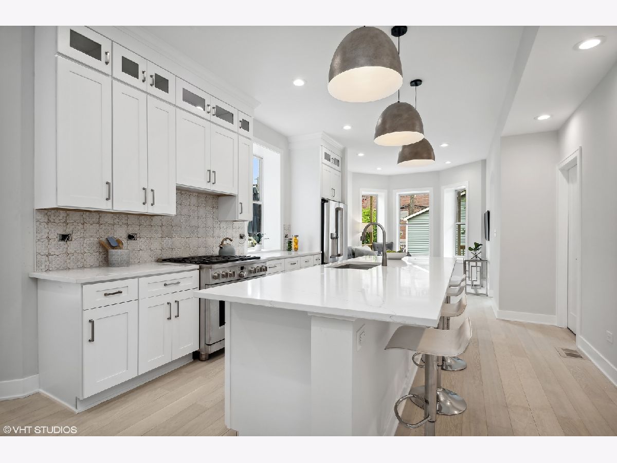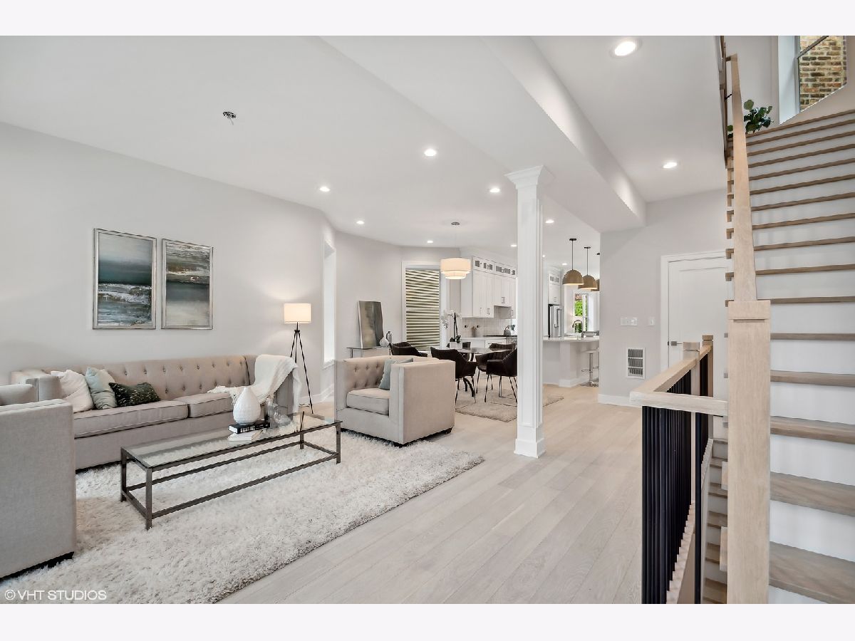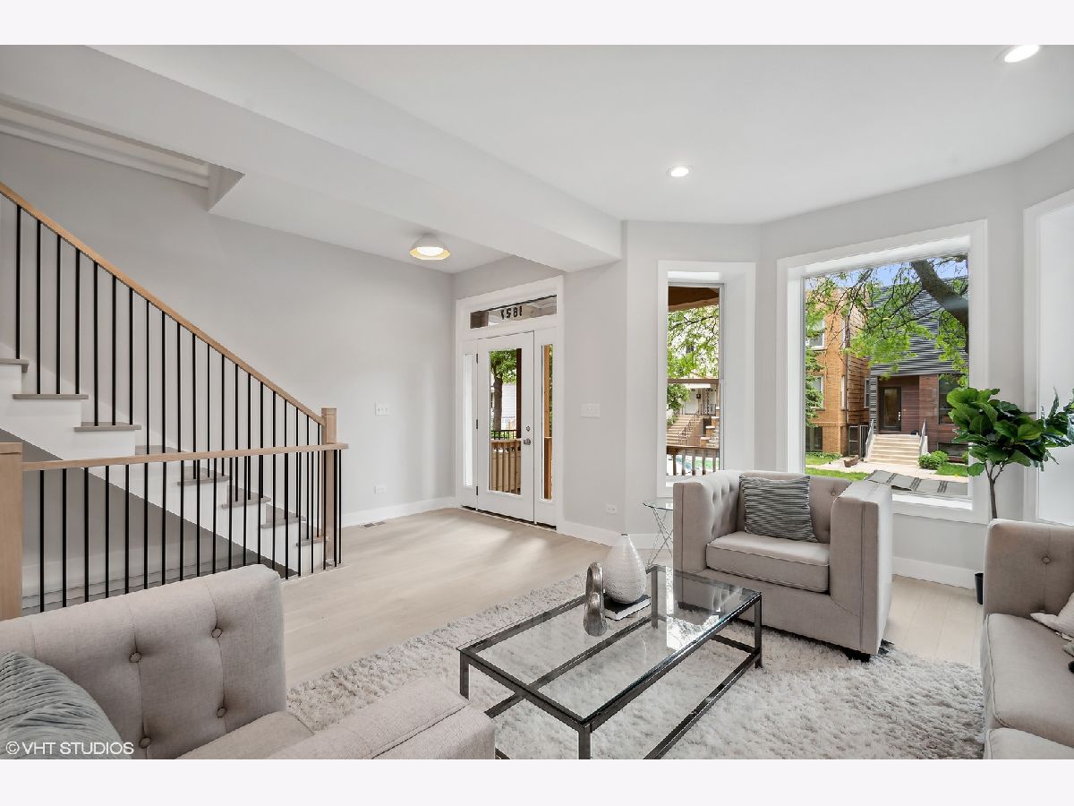 Be the first homeowner to live in this top quality single-family deconversion located in the heart of North Center and within Coonley School district. This beautifully rehabbed property consists of 5 beds, (4 on upper level!), 3.5 baths and custom features throughout. Main level hosts an open concept living room and dining room with new hardwood flooring and custom trim work. The kitchen features stainless steel GE Cafe appliances, island, quartz countertops, and self-close cabinets. The kitchen opens to an additional den area off the back and a custom mud room and closet. Custom millwork stairs lead to the upper level that consist of 4 bedrooms, and 2 baths. Primary bedroom boasts an oversized ensuite, 60 sq ft walk-in closet, and private deck. Finished lower level includes an open and bright recreation/family room, large bedroom, large full bath and service room with all brand new mechanicals. Exterior consists of Marvin windows, new front porch, back deck, and 2nd story private deck, new privacy fence, oversized garage, updated tuck pointing, new parapet wall, and coping stone. Coonley School District, short walk to North Center Town Square, Starbucks and much more! Listing agent has ownership in the property.