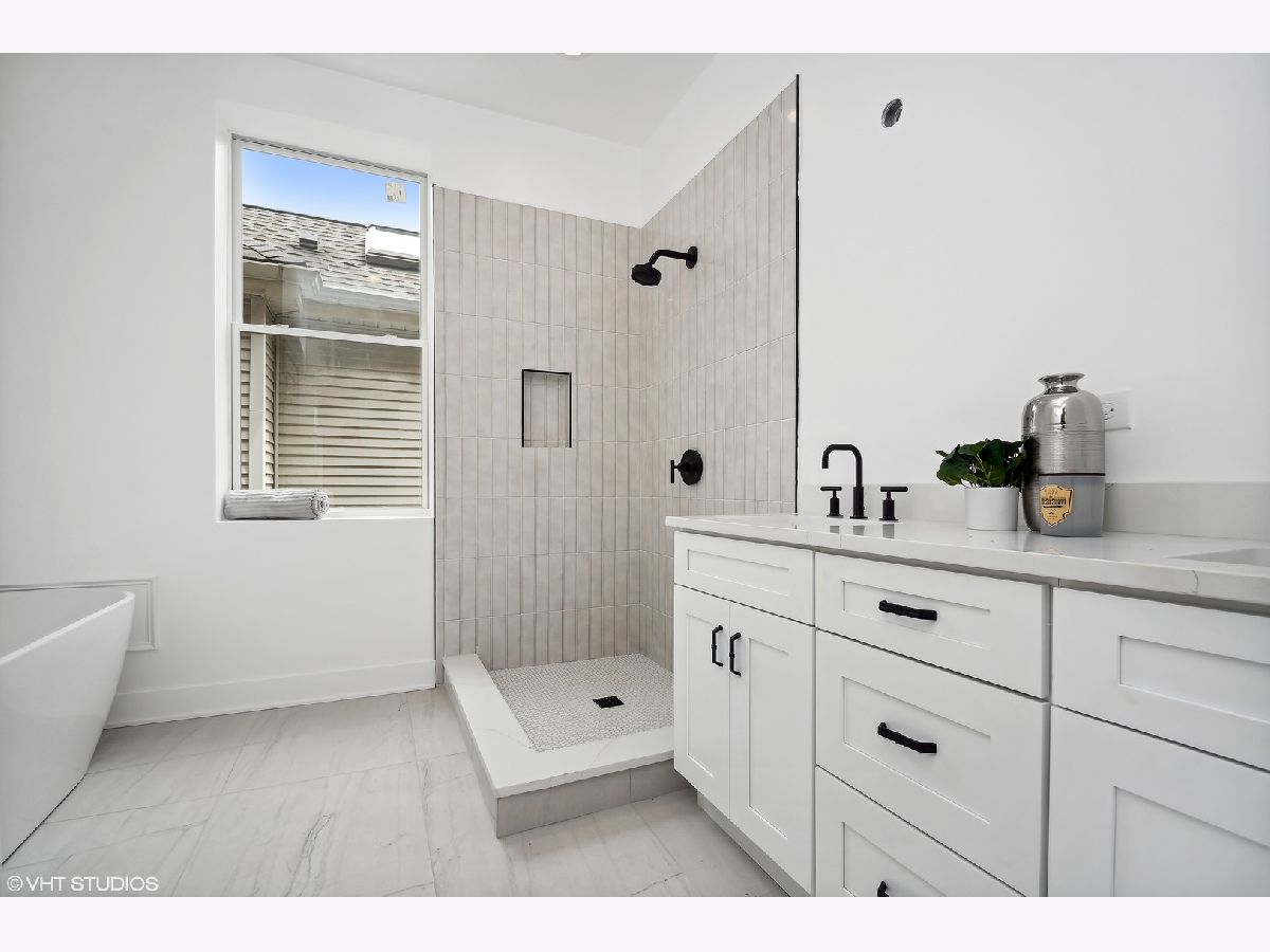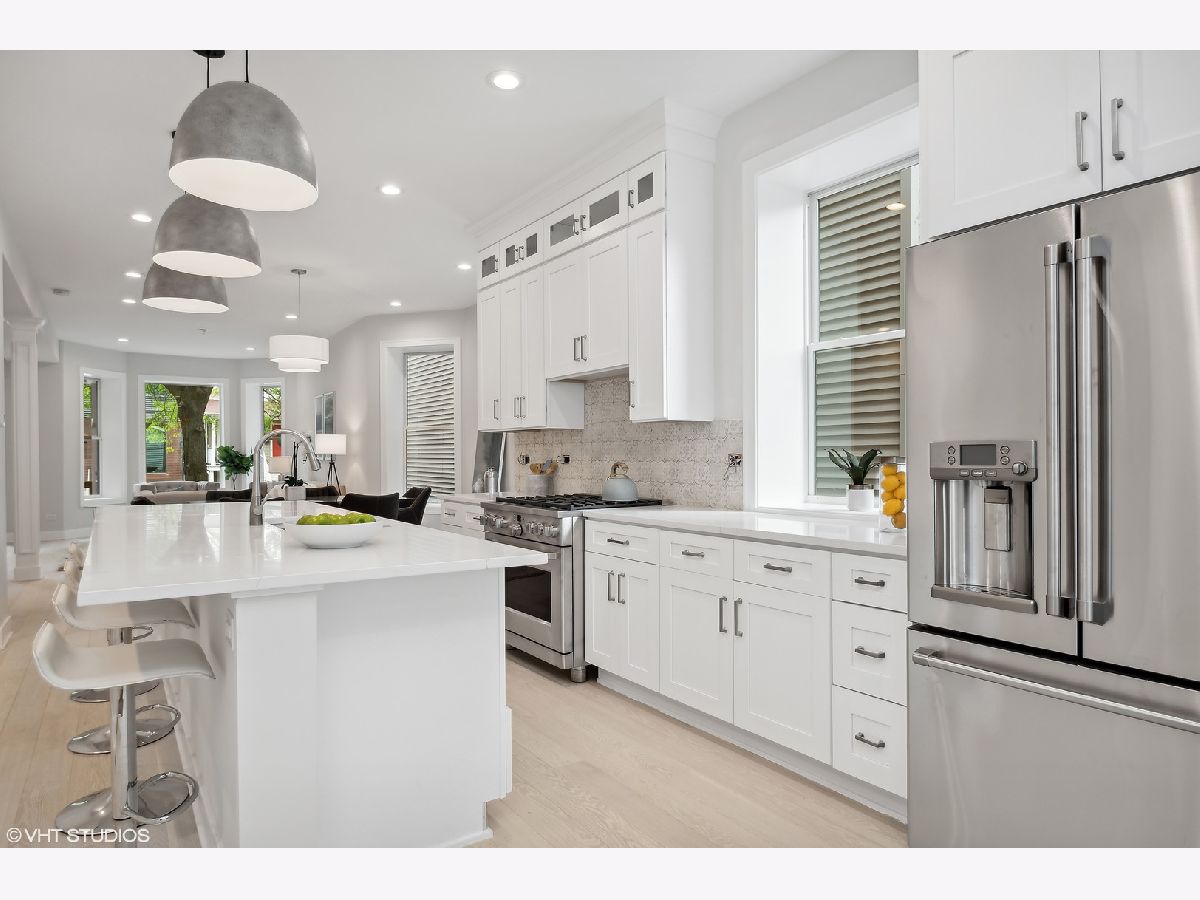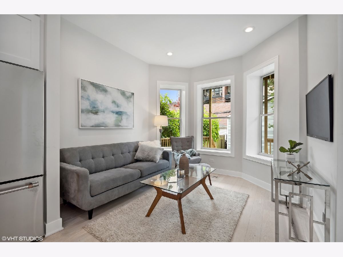 Be the first homeowner to live in this top quality single-family deconversion located in the heart of North Center and within Coonley School district. This beautifully rehabbed property consists of 5 beds, (4 on upper level!), 3.5 baths and custom features throughout. Main level hosts an open concept living room and dining room with new hardwood flooring and custom trim work. The kitchen features stainless steel GE Cafe appliances, island, quartz countertops, and self-close cabinets. The kitchen opens to an additional den area off the back and a custom mud room and closet. Custom millwork stairs lead to the upper level that consist of 4 bedrooms, and 2 baths. Primary bedroom boasts an oversized ensuite, 60 sq ft walk-in closet, and private deck. Finished lower level includes an open and bright recreation/family room, large bedroom, large full bath and service room with all brand new mechanicals. Exterior consists of Marvin windows, new front porch, back deck, and 2nd story private deck, new privacy fence, oversized garage, updated tuck pointing, new parapet wall, and coping stone. Coonley School District, short walk to North Center Town Square, Starbucks and much more! Listing agent has ownership in the property.