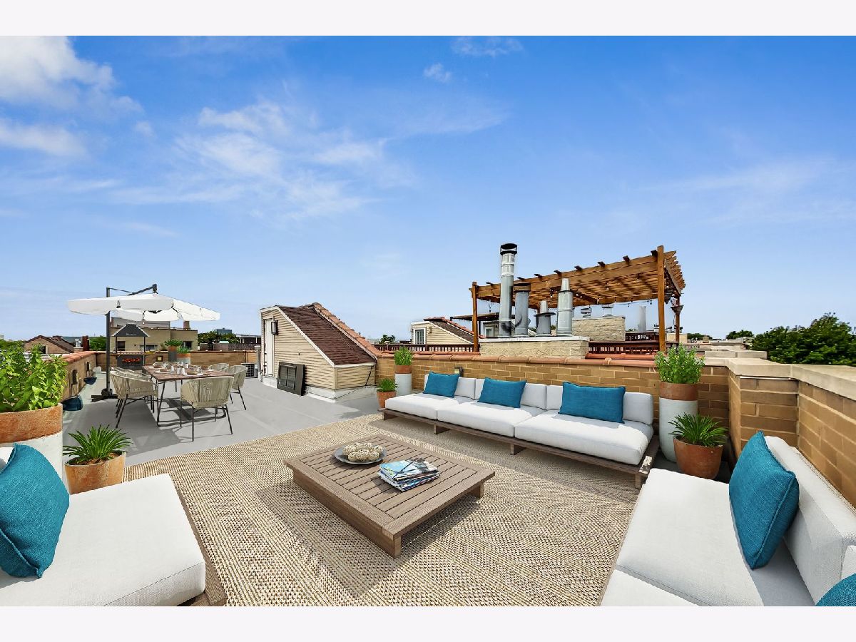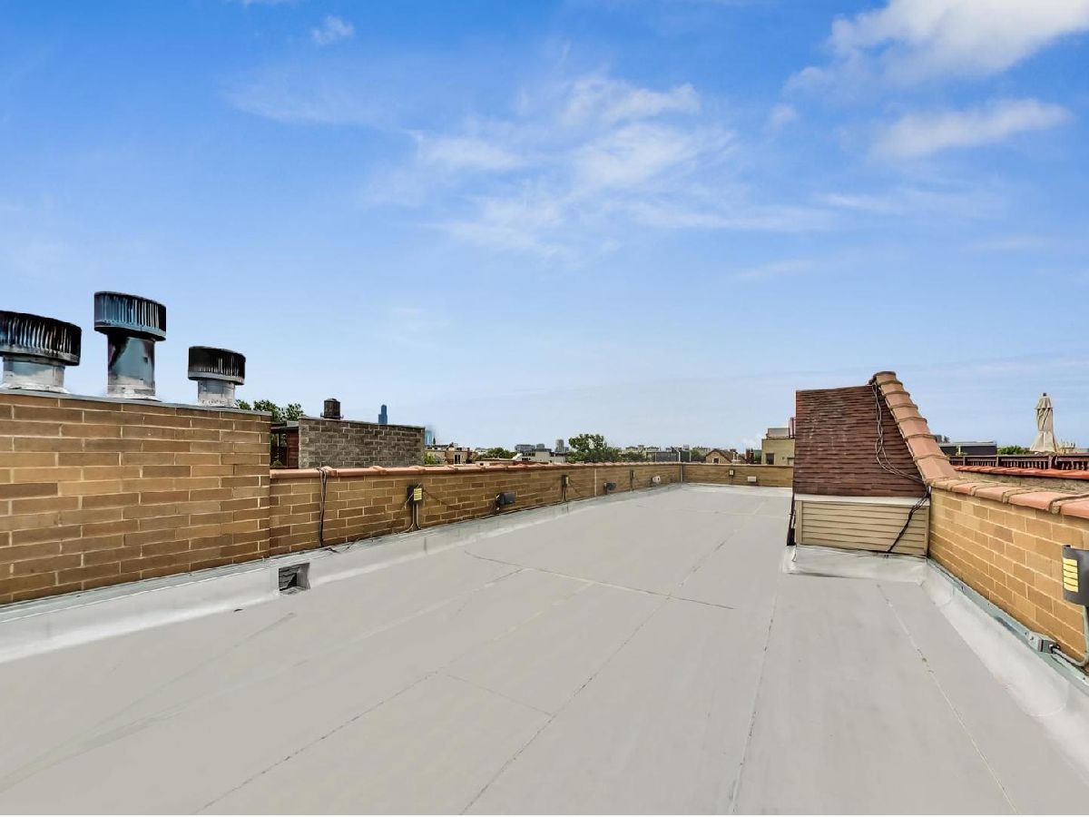 Spacious, light filled 2 bedroom/2 bath penthouse condo on coveted quiet tree-lined East Village block. Gated entry with intercom and in-unit access control. Wide open floor plan, oversized living room with ample space for formal dining and living areas. Two large outdoor spaces - floating stairs lead to a private rooftop with unobstructed views of Chicago skyline, large patio with access from the main bedroom and hallway. 11-foot ceilings, custom cabinetry, hardwood floors, stainless steel appliances, wine fridge, wood-burning fireplace. Large main bedroom suite with walk-in closet, full bath with double vanity, Jacuzzi and separate full body shower. In-unit washer/dryer. Speakers in living room and main bedroom. Garage parking space, additional storage. Modern finishes, freshly painted. New roof - 2020, new back patio - 2020, new water heater - 2019. Recent tuckpointing. Self-managed, well maintained all brick condo building with solid reserves. Near dining, shopping and entertainment, public transportation and more.