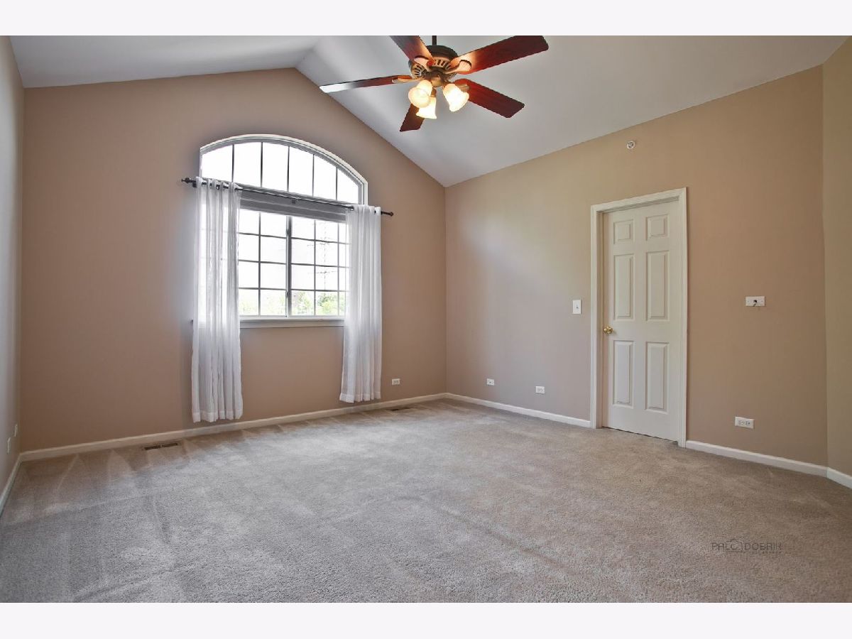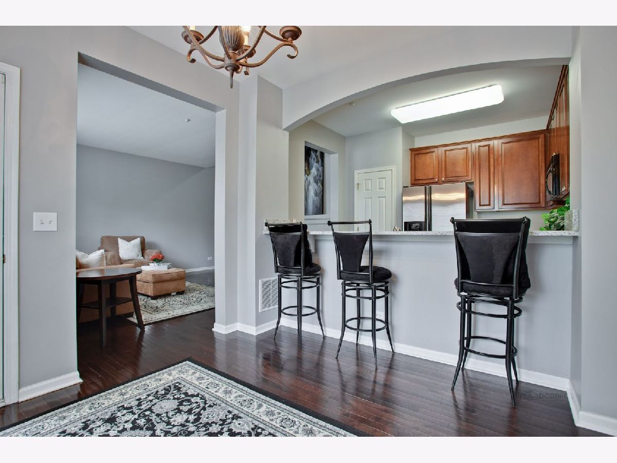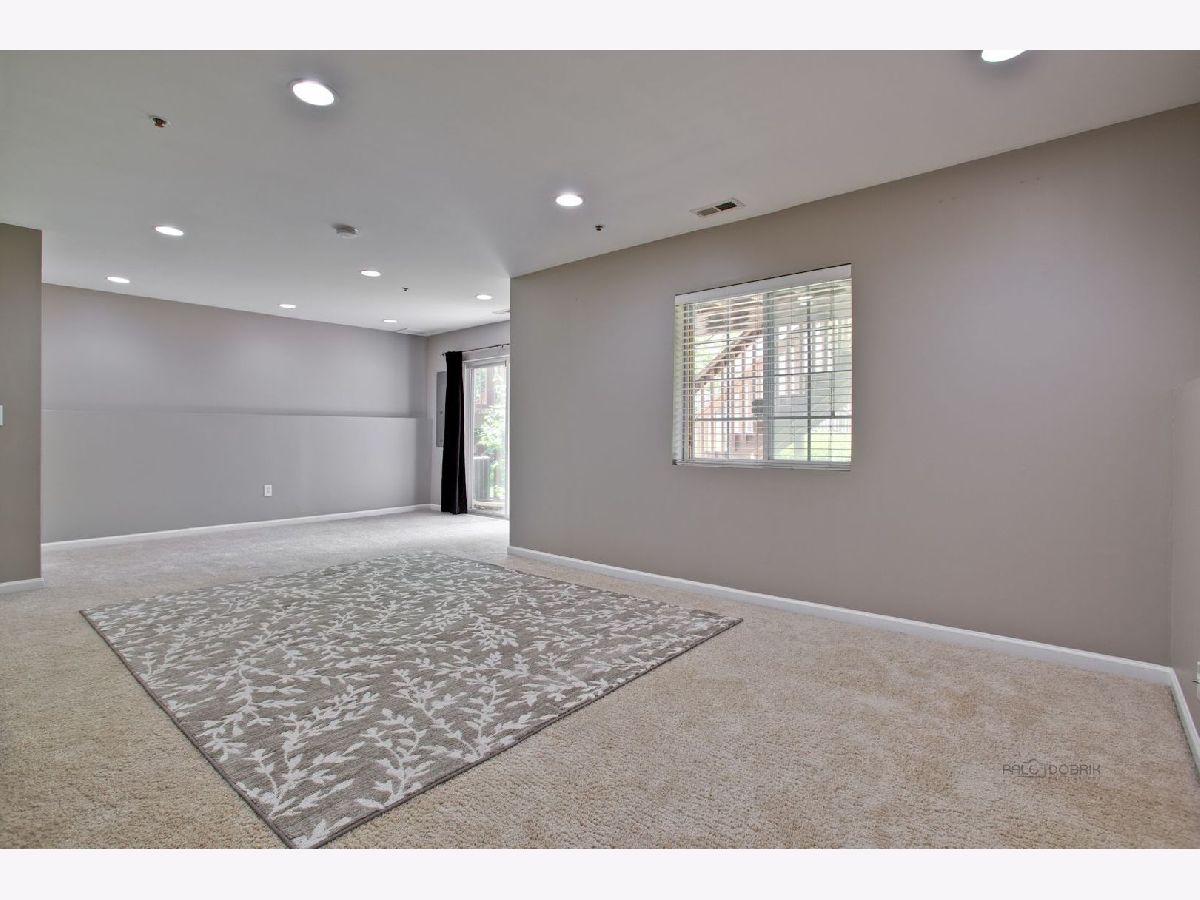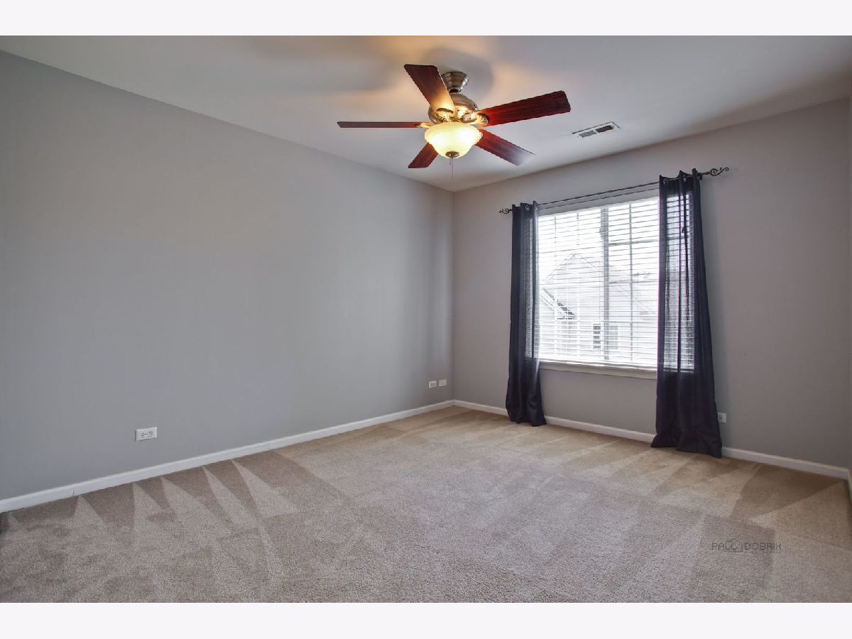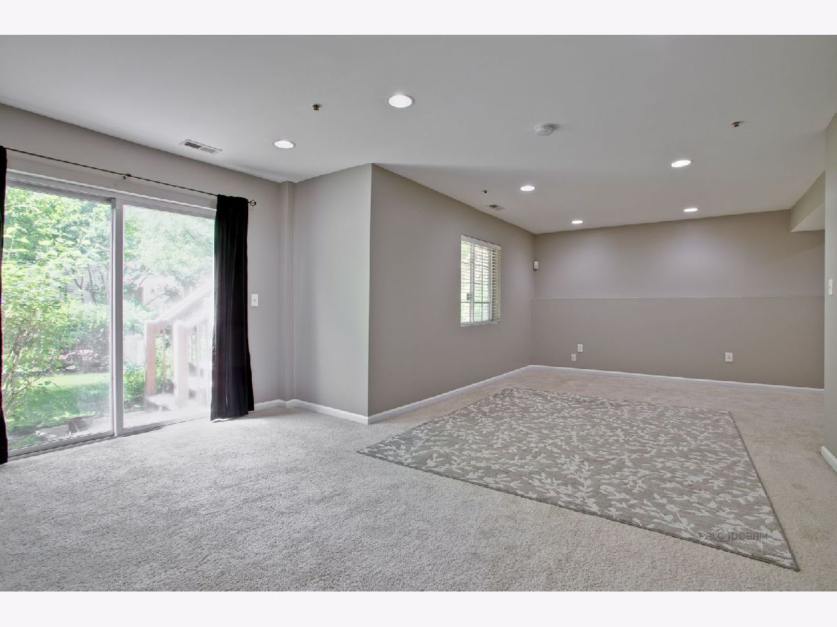 Move in condition unit with finished walk-out basement. Freshly painted interior 2020. Open floor plan with hardwood floors and fireplace. Kitchen with cherry style cabinets, NEW granite countertops and stainless steel sink, breakfast bar. Dining area with French door to extra large deck. Master bedroom with vaulted ceiling and generous walk-in closet, bath with double sink vanity, shower and soaker tub. 2nd bedroom with wall closet and large loft can be converted to 3rd bedroom. Easy access to I-90, shopping, and Metra. Playground and ball field in subdivision. Humidifier as is.