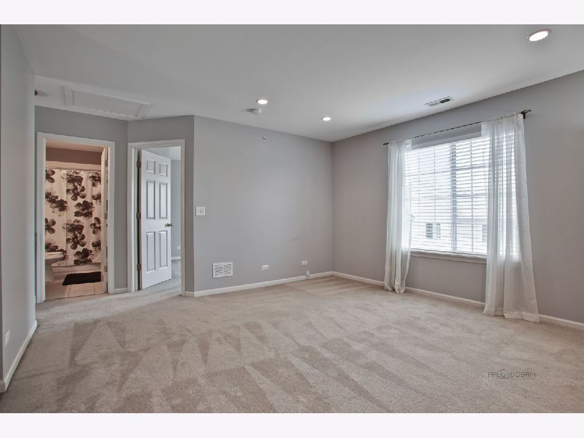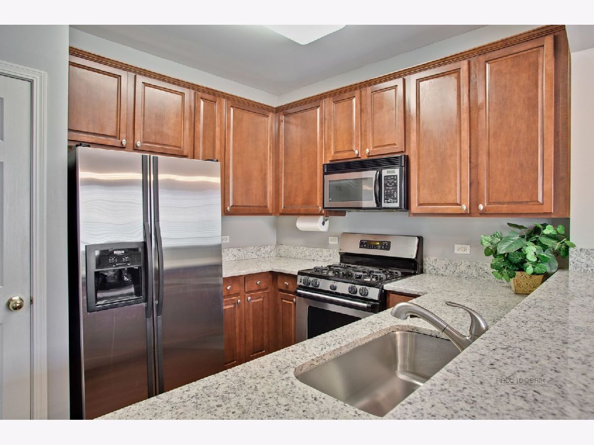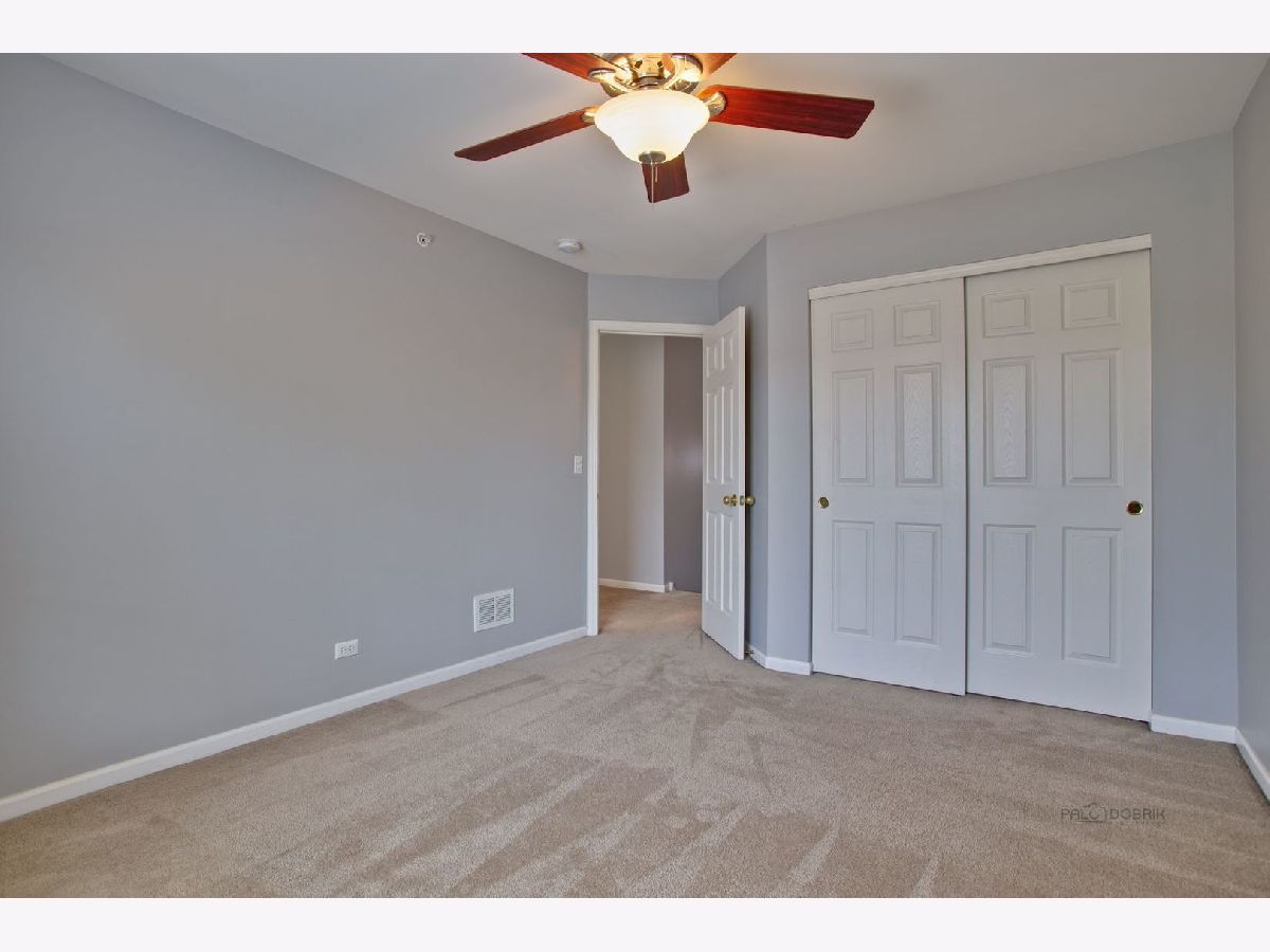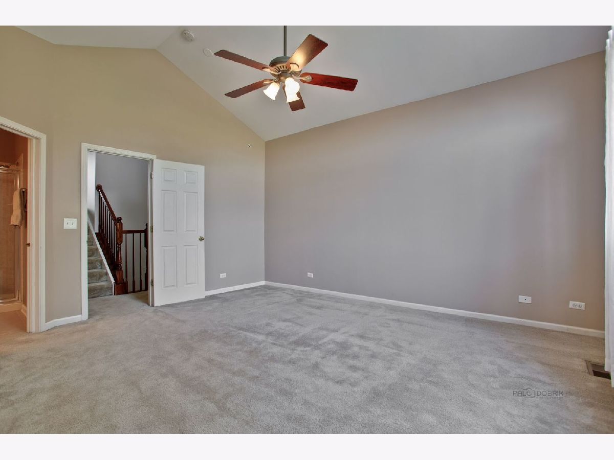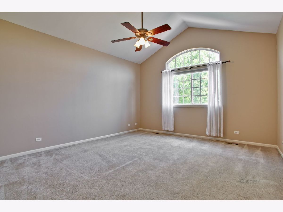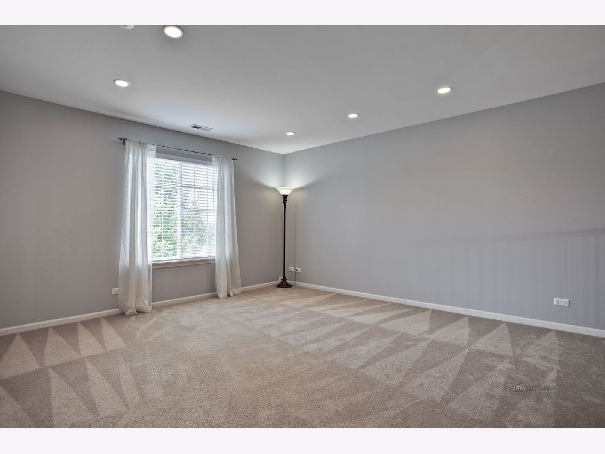 Move in condition unit with finished walk-out basement. Freshly painted interior 2020. Open floor plan with hardwood floors and fireplace. Kitchen with cherry style cabinets, NEW granite countertops and stainless steel sink, breakfast bar. Dining area with French door to extra large deck. Master bedroom with vaulted ceiling and generous walk-in closet, bath with double sink vanity, shower and soaker tub. 2nd bedroom with wall closet and large loft can be converted to 3rd bedroom. Easy access to I-90, shopping, and Metra. Playground and ball field in subdivision. Humidifier as is.