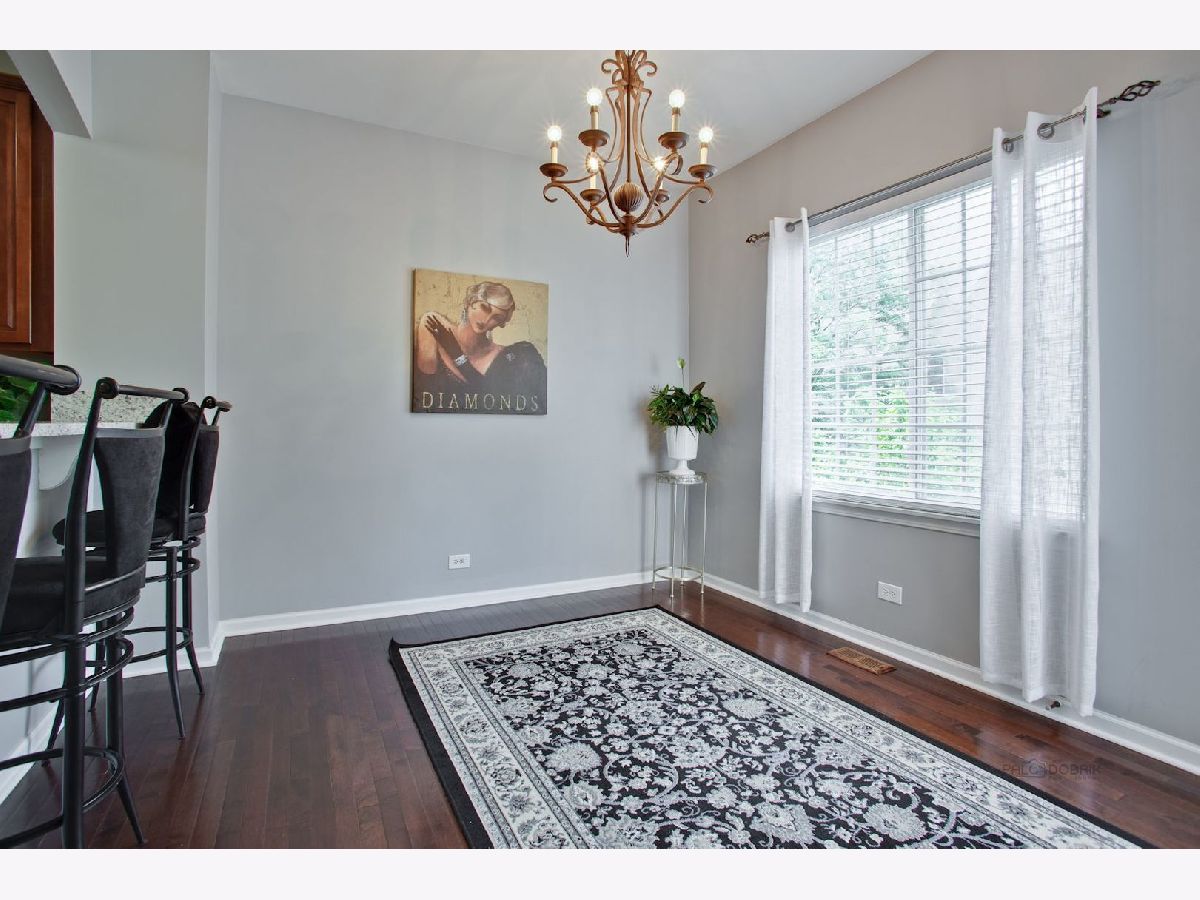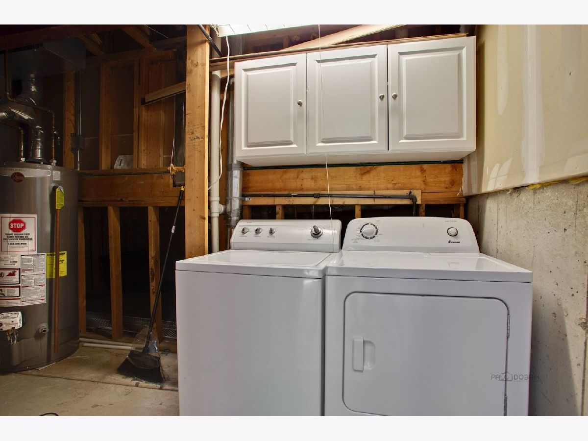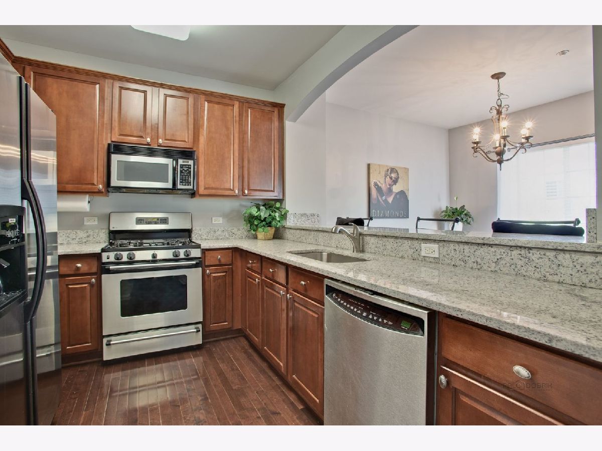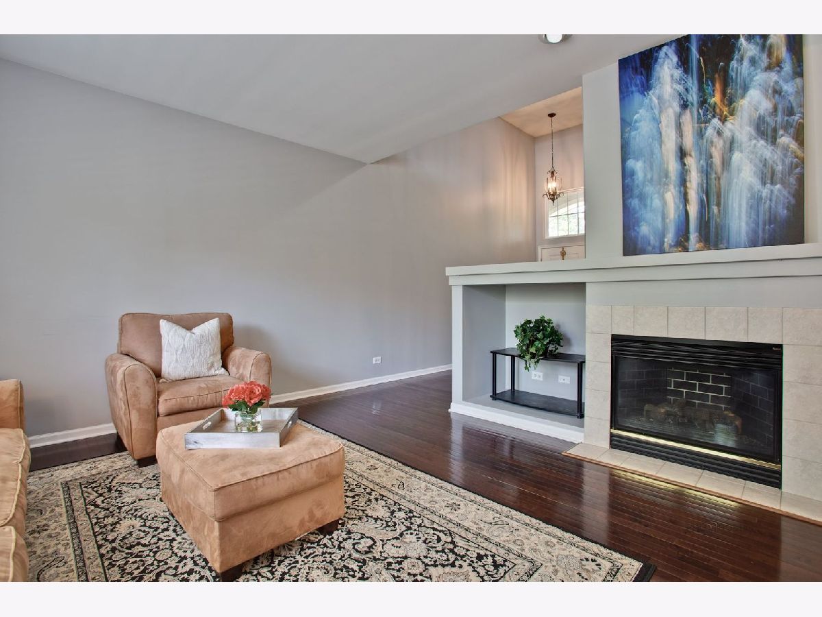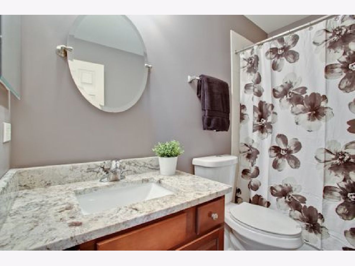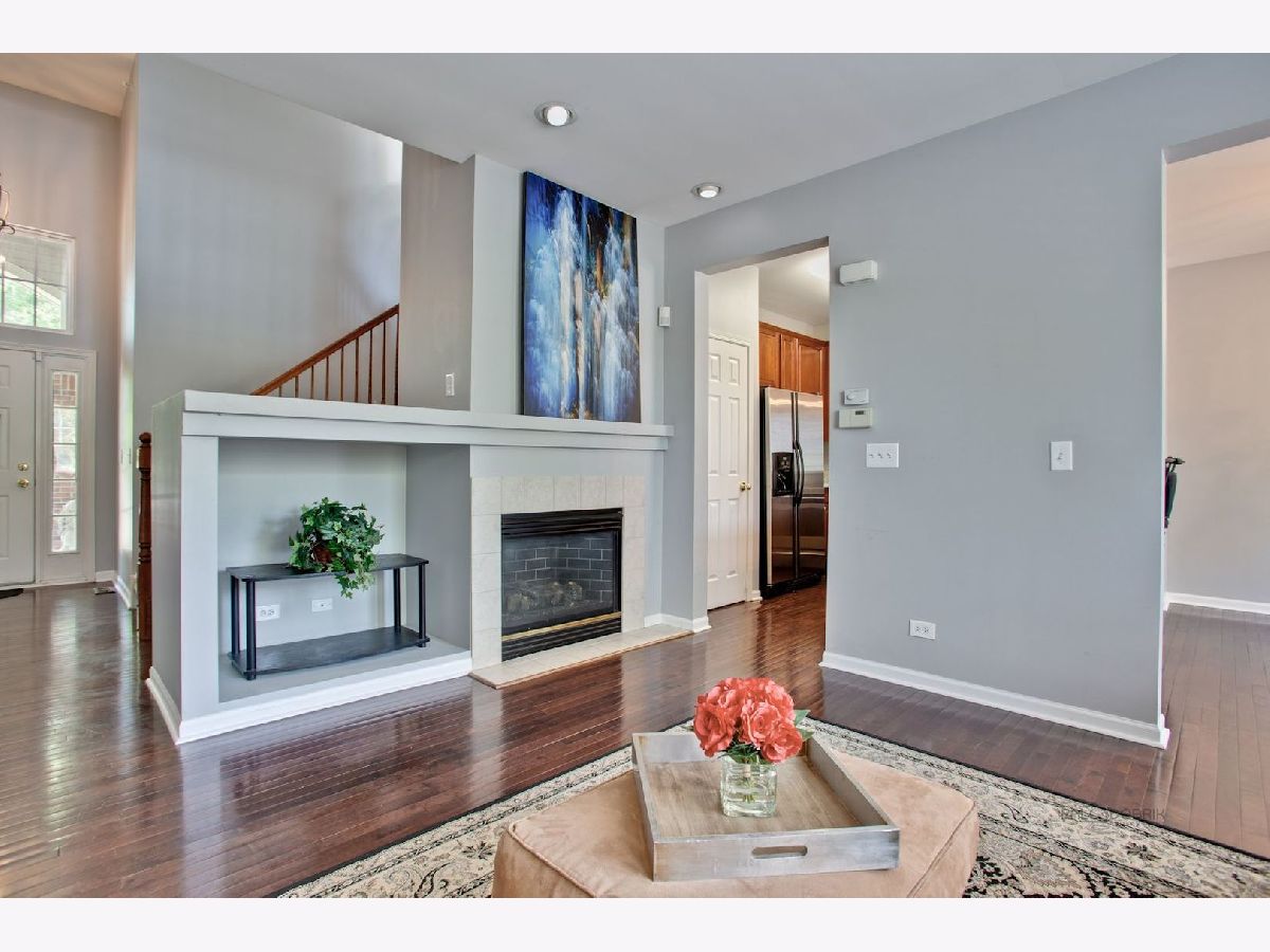 Move in condition unit with finished walk-out basement. Freshly painted interior 2020. Open floor plan with hardwood floors and fireplace. Kitchen with cherry style cabinets, NEW granite countertops and stainless steel sink, breakfast bar. Dining area with French door to extra large deck. Master bedroom with vaulted ceiling and generous walk-in closet, bath with double sink vanity, shower and soaker tub. 2nd bedroom with wall closet and large loft can be converted to 3rd bedroom. Easy access to I-90, shopping, and Metra. Playground and ball field in subdivision. Humidifier as is.