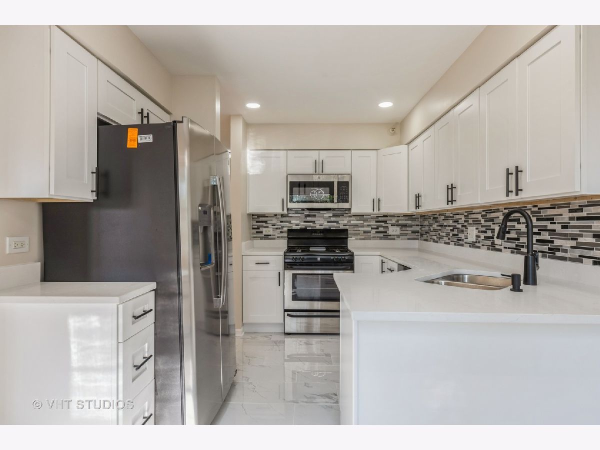 Welcome to Lakewood Village-where comfort meets convenience! Step into this beautifully updated upper-level ranch-style condo featuring 2 spacious bedrooms, 2 full baths, and an attached 1-car garage. You'll love the spacious bright and airy family room. Brand New Kitchen Cabinets (2025), New Tiles flooring entry foyer/Kitchen (2025), New toilets/New Tiles/New Vanity both bathrooms(2025), Brand New Quartz countertop (2025), New Backsplash (2025), New Paint throughout (2025) New light fixtures (2025), Recess lights (2025) New Refrigerator (2025) New Microwave (2025) Located just minutes from the Metra, top-rated parks, great restaurants, shopping, and grocery stores-everything you need is right around the corner. Pet friendly and investors-this one's for you! Don't miss your chance to make this move-in-ready gem yours. Easy to show!