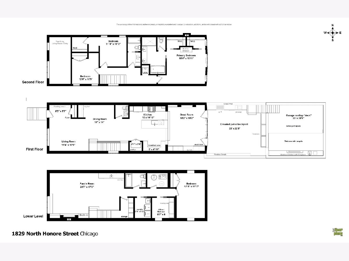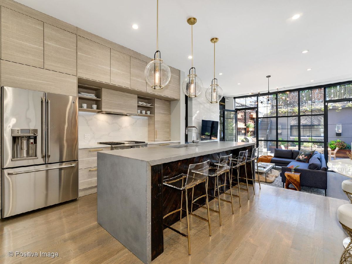 Welcome to 1829 N Honore, a unique home completely gut rehabbed & customized w/ high-end luxury finishes throughout, yet designed for everyday practical use both inside and out. Lovingly remodeled down to studs to be a "dream home", this better-than-new construction home is ready for immediate enjoyment. Upon entry, you will notice the soaring 25+ foot ceilings, custom floor to ceiling windows, abundance of natural light throughout the home & architectural details like no other home. Each room features multiple custom design features, like the dining room's stunning lacquered paint, RH lighting and custom built-in bar with flat-front Italian cabinetry & antique glass storage. The kitchen is the perfect combination of form & function w/ designer details from top to bottom. Highlights include: 10+ foot custom waterfall island w/ concrete countertops, Italian to-the-ceiling cabinetry & an added walk-in pantry for additional storage & charging stations for small appliances. For casual dining, find built-in banquette seating w/ custom leather cushions & Phillip Jefferies wallcovering. The dramatic first floor family room boasts 11+ foot ceilings, room for a large sectional, a full wall of Italian cabinetry & storage with a built-in mudroom area complete w/ bench & home office integrated charging/WiFi/AV area, plus an oversized fireplace w/ custom brass floating mantle & floor to ceiling tile work. Plus, enjoy indoor/outdoor living with a wall of floor-to-ceiling windows & oversized doors that lead directly to the deck/backyard (with no step down!). Retreat in the primary suite w/ cathedral ceilings, exposed beams, views of the landscaped backyard, and an on-suite bath. The spa-like primary bath offers heated tile floors, free-standing jetted tub w/ TV wiring and wood tile accent wall, and a huge steam shower complete with 2 rain shower heads, quartz bench and designer tile to the ceiling. The upstairs secondary bedrooms both have cathedral ceilings, exposed beams, large professionally organized closets and a bonus "nook" for toys, vanity, desk, or extra seating. The lower level is the perfect flexible space with something for everyone. You will be wowed by the wet bar's custom brass shelving, antique mirror backsplash, integrated ice maker, dishwasher & beverage coolers and a custom European chandelier. And don't miss the thoughtfully-designed solid wood queen murphy bed/desk in one of the two additional lower level bedrooms. The outdoor space for this home is just as incredible as the interior. In the front, find an incredible yard featuring custom ipe planter boxes with irrigation, new turf, professionally landscaped parkway w/ irrigated planters & up lighting to highlight every detail. The back yard is over 400 sf and boasts multiple custom ipe/metal planters including a fountain/river water feature, as well as a green wall to grow vegetables and spices. The extensive grill station includes a built-in Lynx Grill, wifi controlled smoker, beverage cooler and storage. For even more outdoor space flexibility, head up to the roof deck with custom waterfall design pergola, large gas fireplace, Turf grass and 20x20 stone tile flooring, and custom planters with irrigation & uplighting. The outdoor kitchen comes fully equipped with sink, beverage cooler and ice maker-you never have to leave! Head down to the brand new fully insulated garage built lot line to lot line w/ heating & AC, oversized w/ 2-car parking plus perfect for practicing your golf swing, or for added workout/schooling/studio space! Other updates not to miss include new commercial-grade anti-break windows, smart home features throughout including electric window shades and all new mechanicals. All of this on the best block in Bucktown: highly acclaimed Burr school district, yet across street from Drummond school featuring a new park & running track, short distance to the 606, Damen Ave shops & dining, blue line, metra, highway, multiple parks & green spaces!