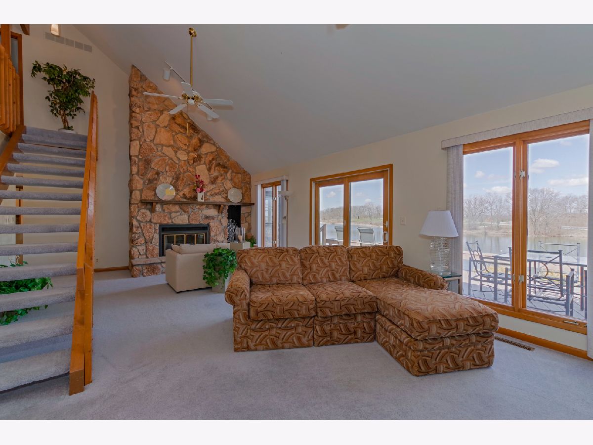 Enjoy a pristine location right on Lake Bloomington! Beautiful views plus an impeccable home! This home has everything a lake home should have from rooms flooded with sunlight to its spectacular views of the lake. Plenty of space with a large family room and master bedroom. Family room has a vaulted ceiling with large windows to enjoy those views and a stone surround fireplace with gas logs. Master bedroom has two large closets and features skylights. Hardwood floors line the kitchen, dining room and main entry. Kitchen has open dining area and terrific outside vistas. Kitchen features newer sink & faucet, and newer appliances. Very nice, updated bathrooms with newer granite countertops. Many updated light fixtures. Clean basement just painted. Other improvements: newer paint throughout (2014), most ceilings are new, R30 insulation in attic (2014), AC updated (2014), furnace updated (2000), encapsulated crawl space & sump pump (2015). Lakefront improvements: enormous deck overlooking water was redone in '15 ($23,500), newer TREK dock in '10 ($12,886). 100 ft of seawall. Deck provides beautiful view of July 4th fireworks right from your home! Stamped walkway to home. All located on a lot and a 1/2, including the blacktop parking area in front of the home. This property is move-in ready! Offering basic home warranty.